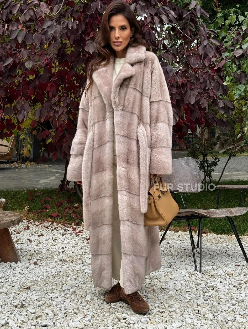 Длинная норковая шуба с поясом доступна для покупки в нашем шоуруме Furs Studio в Москве. У нас так же есть доставка во все города России. Добавьте немного роскоши в свой гардероб с этой шубой, которая будет служить вам многие годы.