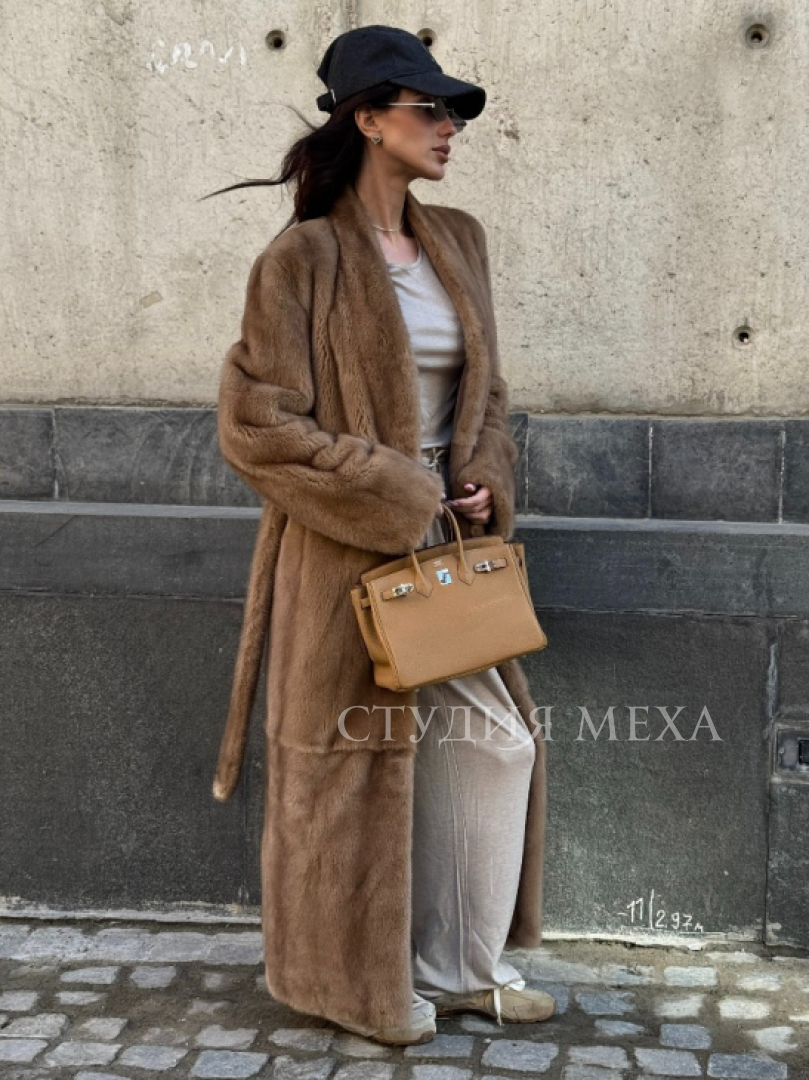 Длинная норковая шуба в цвете пастель с V-образным воротником доступна для покупки в нашем шоуруме Furs Studio в Москве. У нас так же есть доставка во все города России. Добавьте немного роскоши в свой гардероб с этой шубой, которая будет служить вам многие годы.