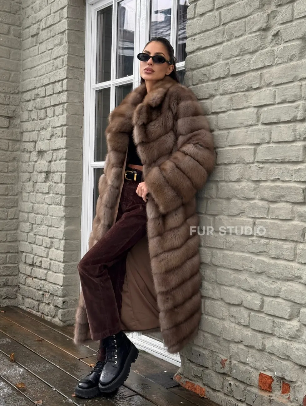Длинная шуба из меха куницы доступна для покупки в нашем шоуруме Furs Studio в Москве. У нас так же есть доставка во все города России. Добавьте немного роскоши в свой гардероб с этой шубой, которая будет служить вам многие годы.