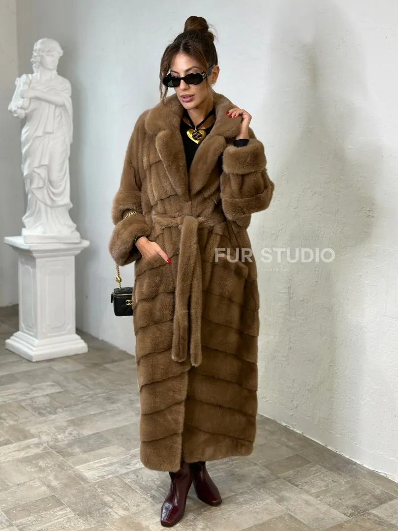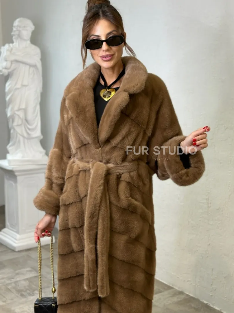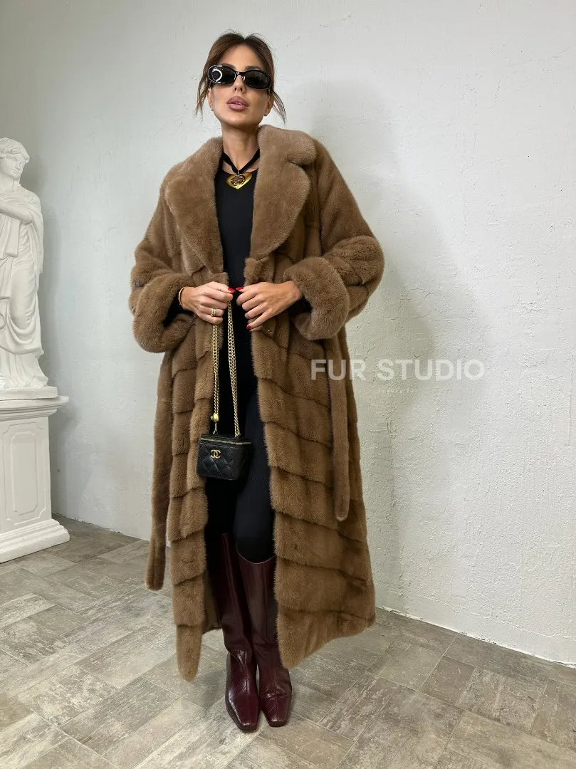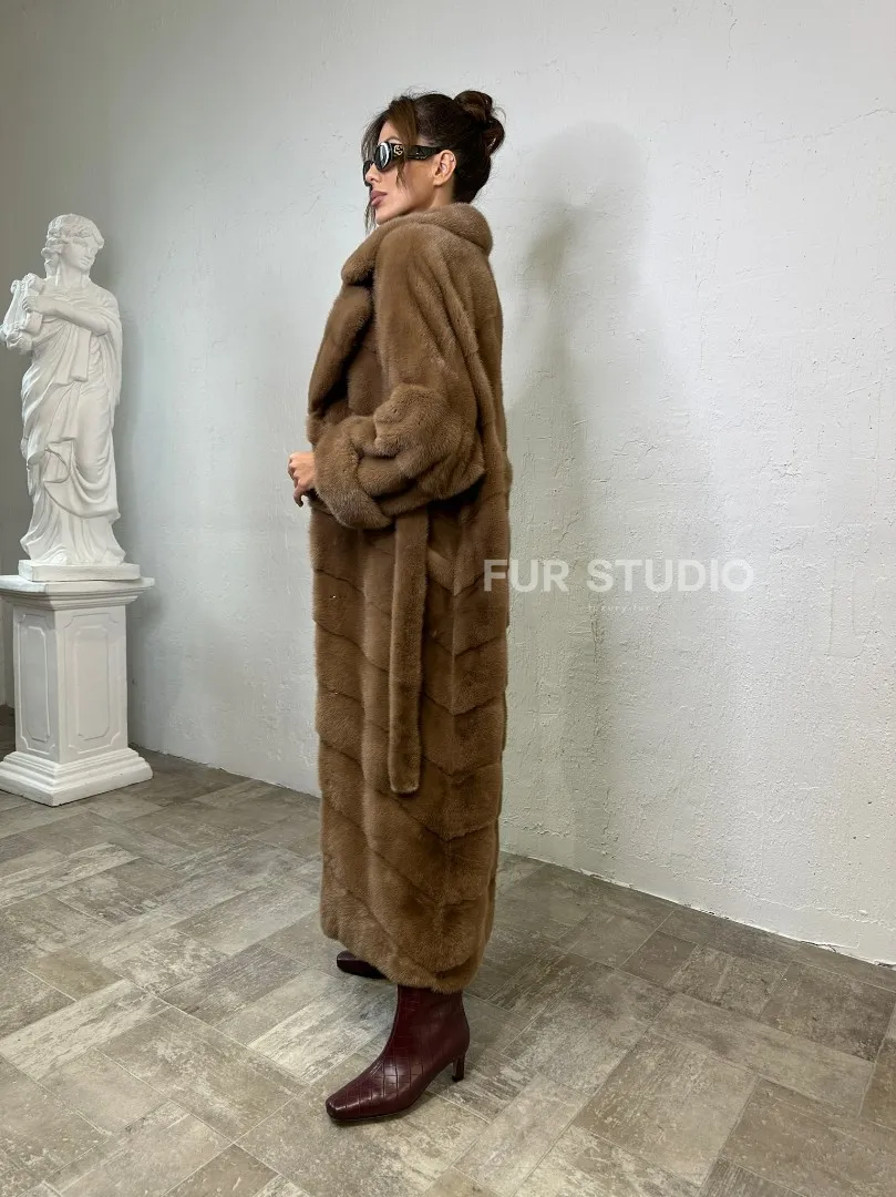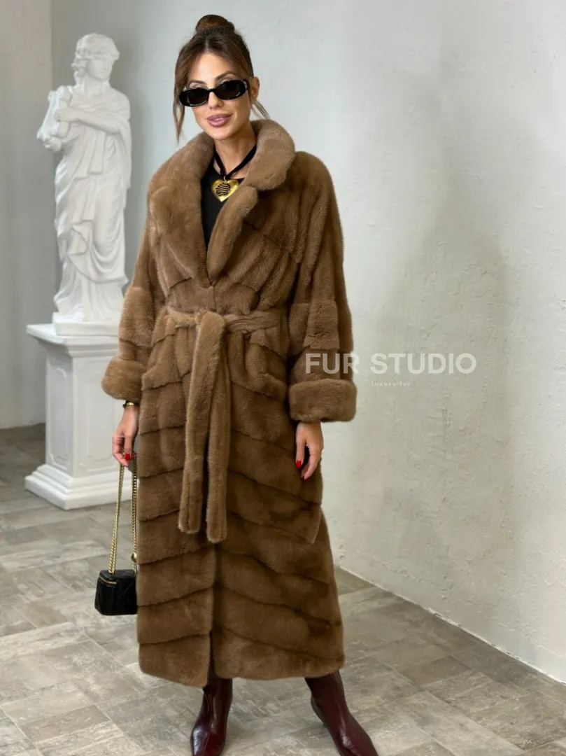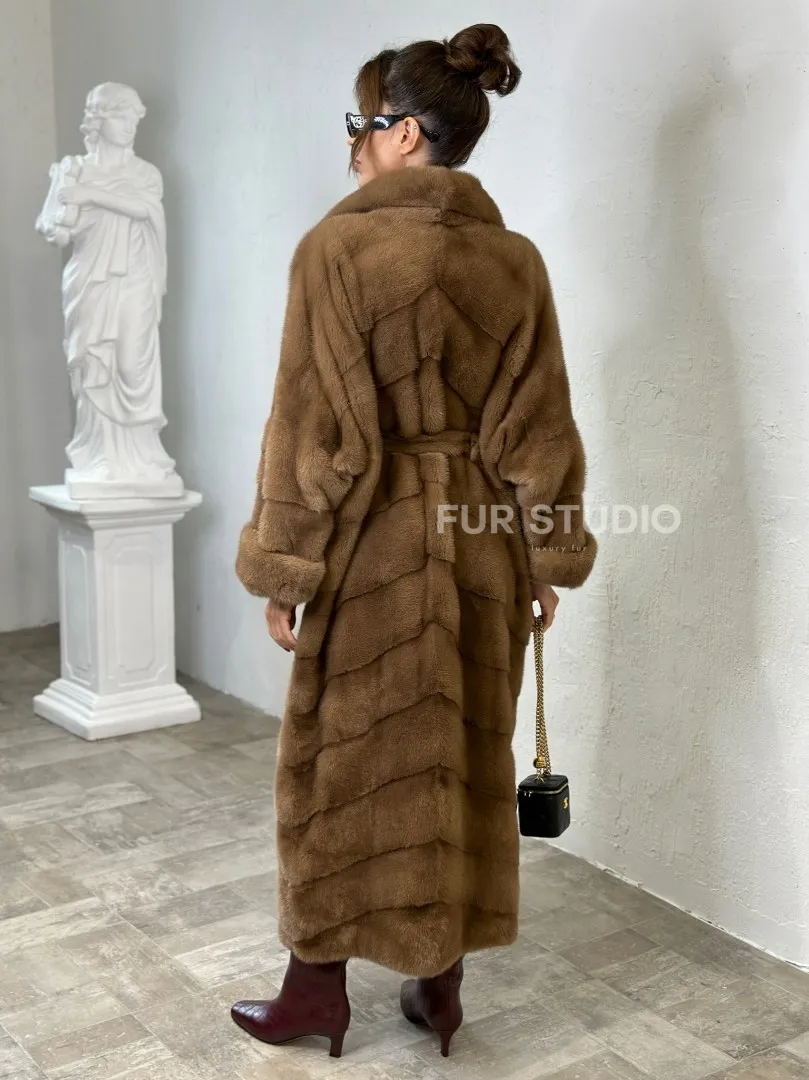 Длинная шуба карамель кимоно мех NAFA доступна для покупки в нашем шоуруме Furs Studio в Москве. У нас так же есть доставка во все города России. Добавьте немного роскоши в свой гардероб с этой шубой, которая будет служить вам многие годы.