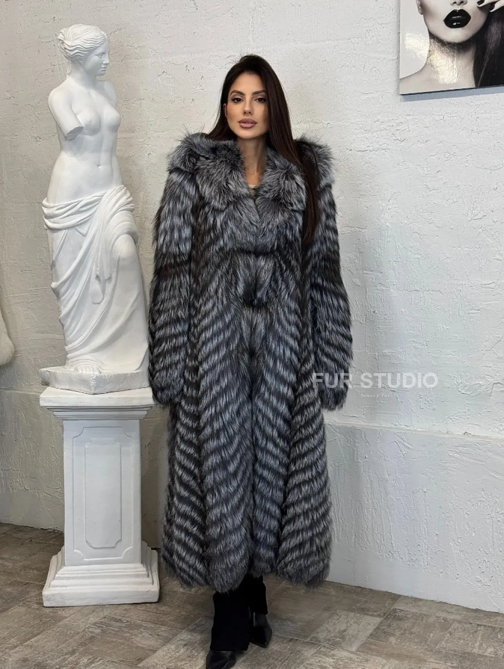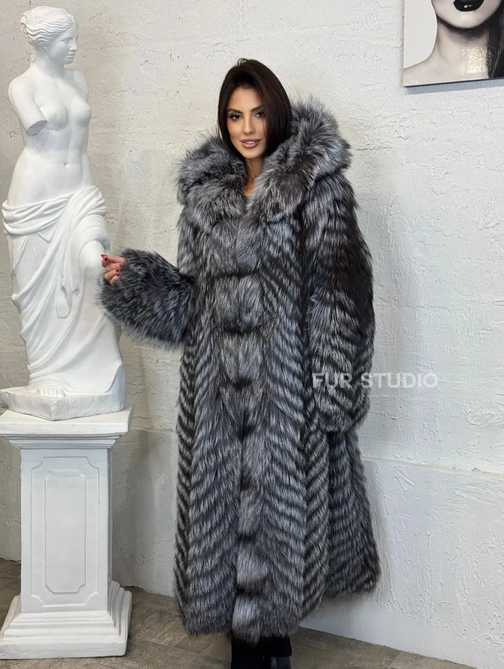 Длинная шуба с капюшоном из натуральной лисы Silver Fox Fur в росшив доступна для покупки в нашем шоуруме Furs Studio в Москве. У нас так же есть доставка во все города России. Добавьте немного роскоши в свой гардероб с этой шубой, которая будет служить вам многие годы.