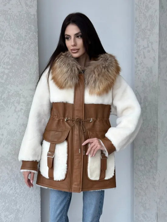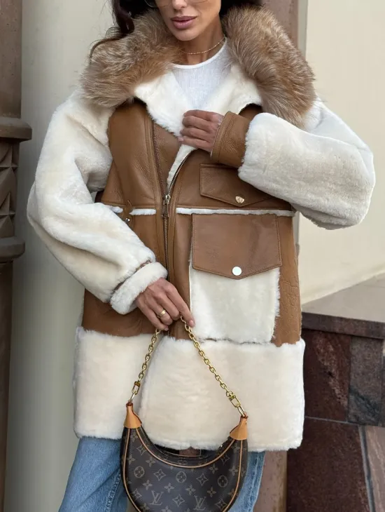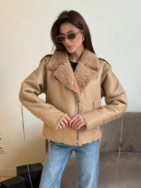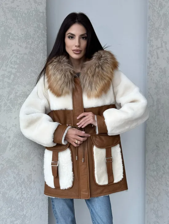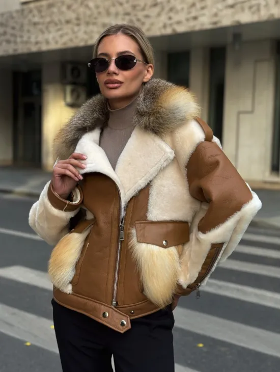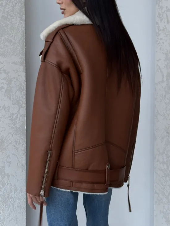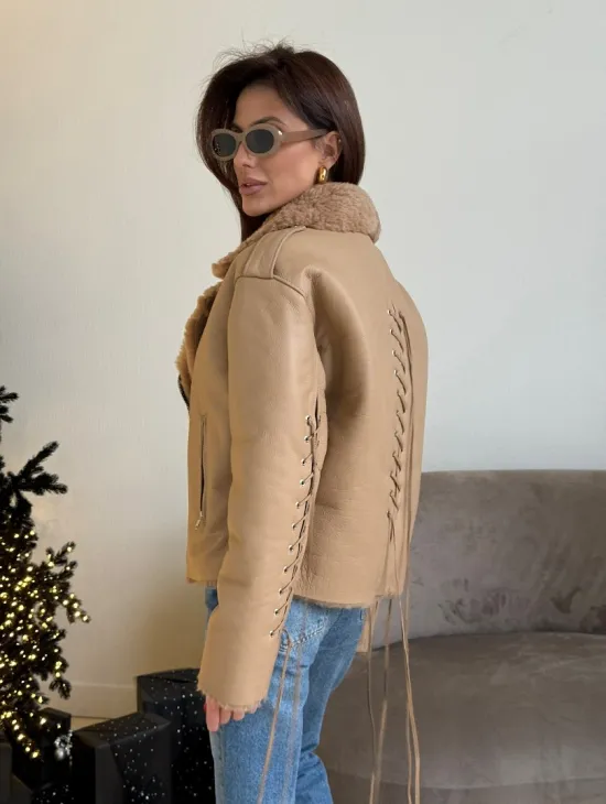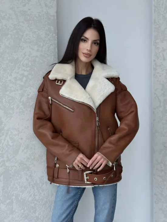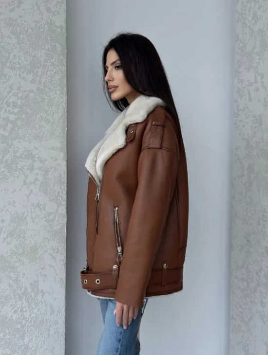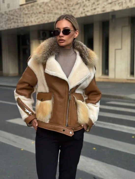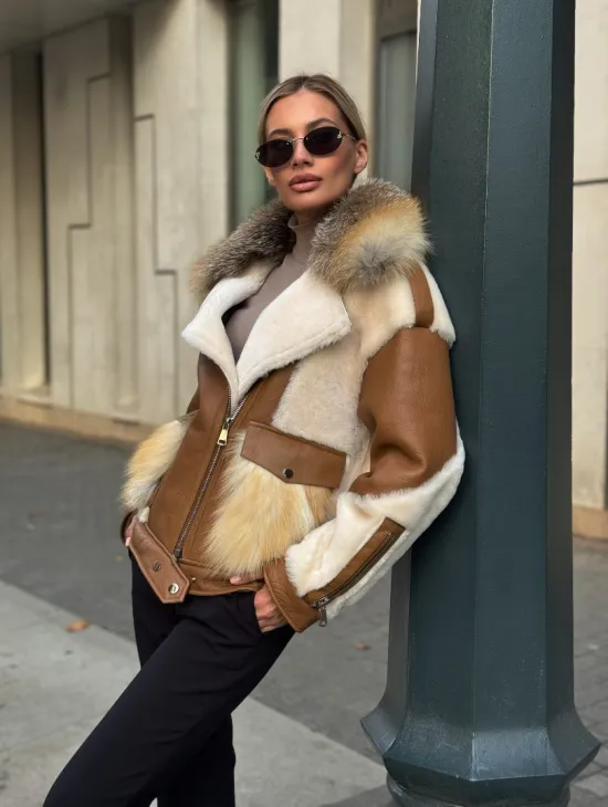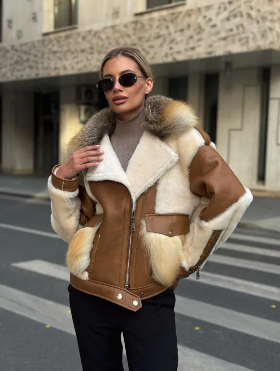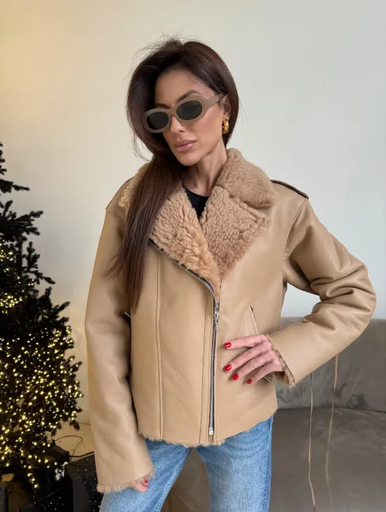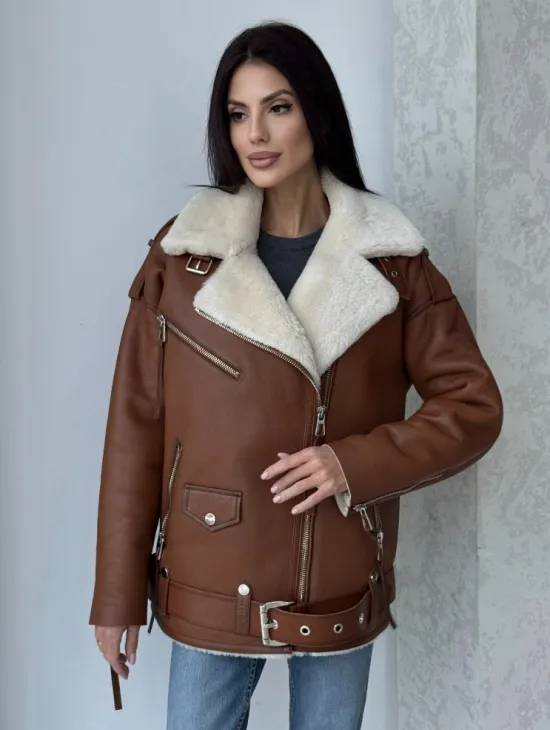 Удобный воротник позаботится о комфортной температуре шеи и подчеркнет ее изгибы. Благородная расцветка выгодно оттенит цвет глаз и волос владелицы. Оригинальный рюкзак и грубая, но стильная обувь будут гармонично сочетаться с образом. Купить дубленку – бомбер со спущенным плечом из натуральной овчины могут молодые девушки, которые хотят выглядеть стильно вне зависимости от времени года.
