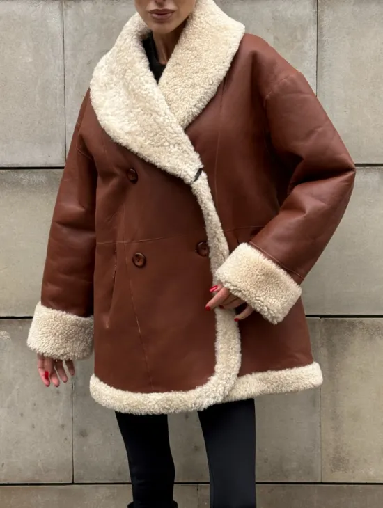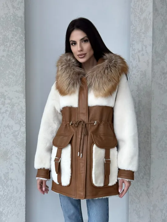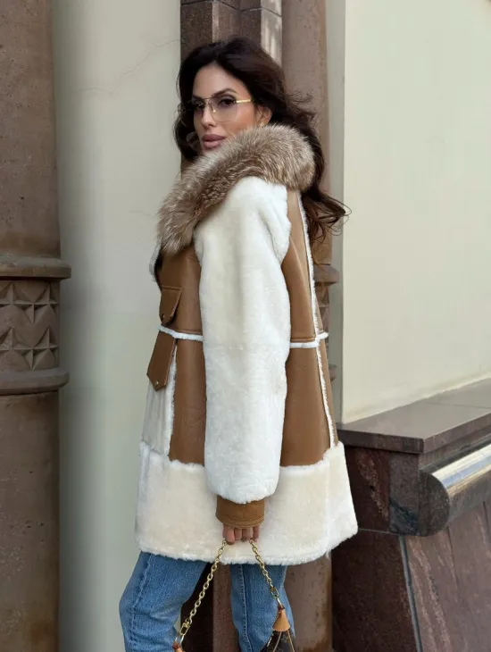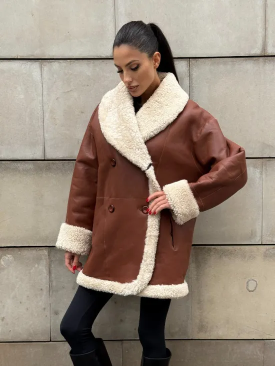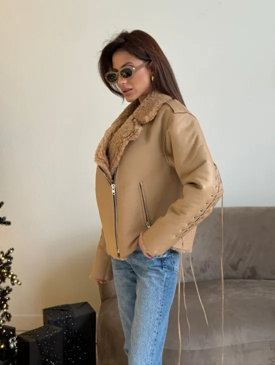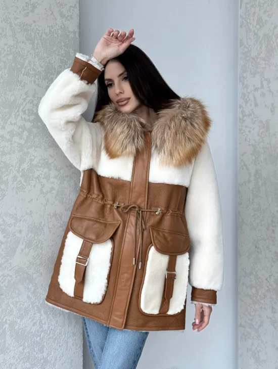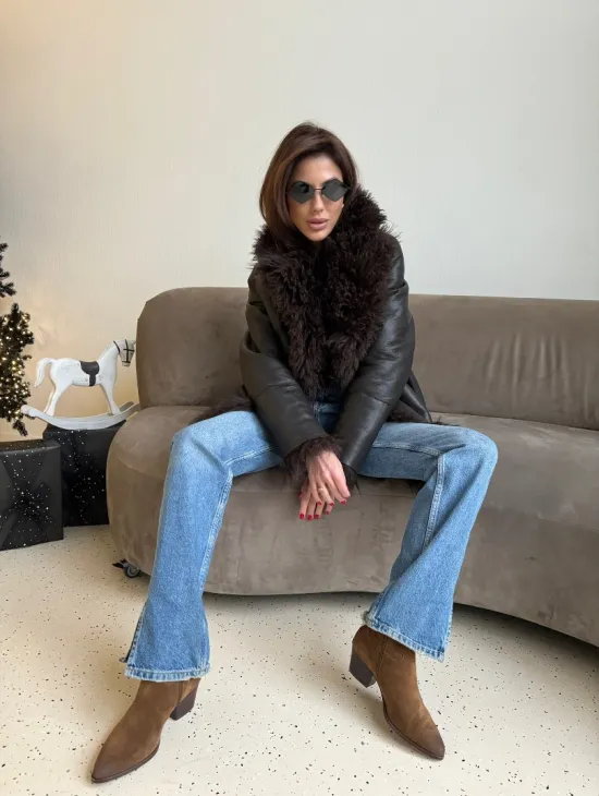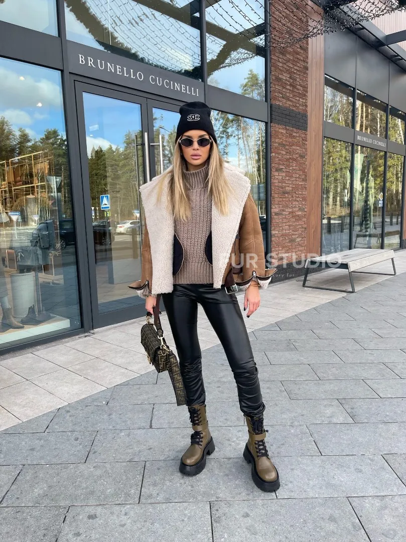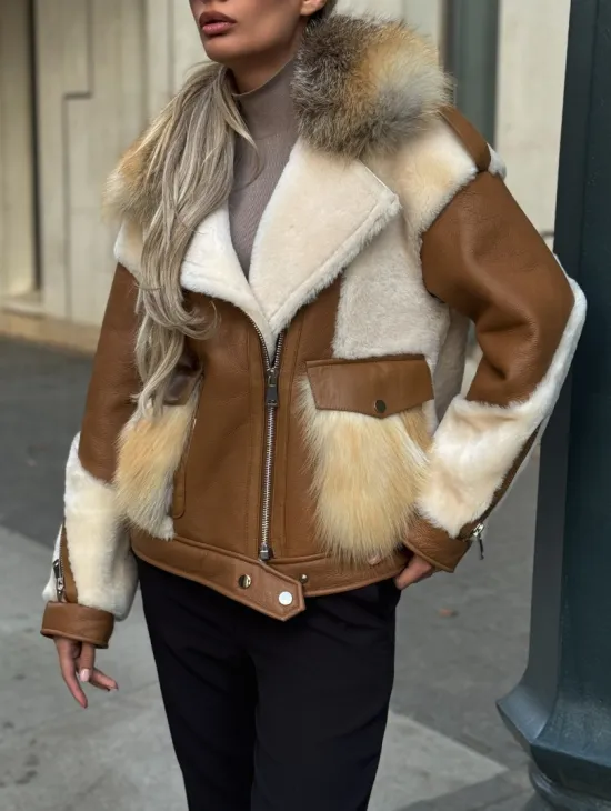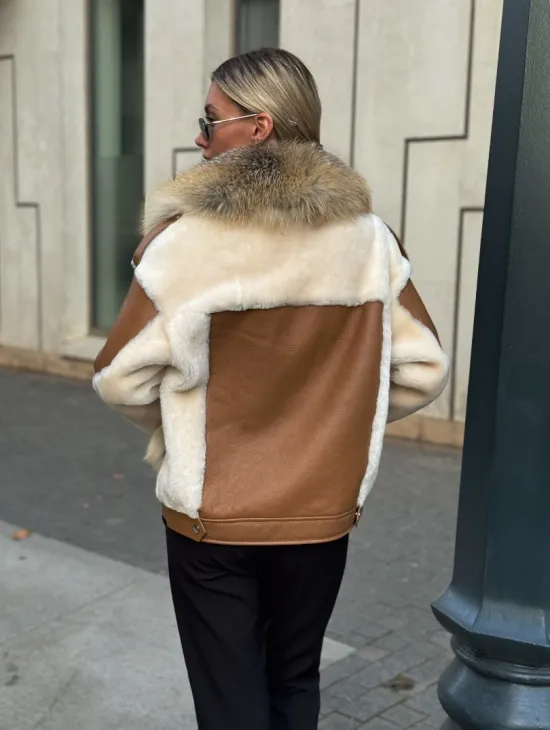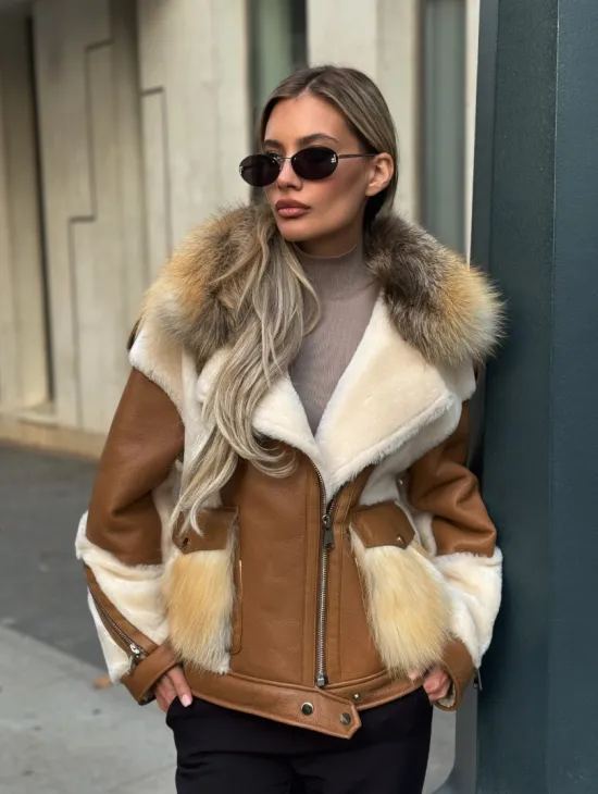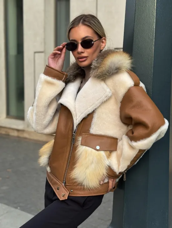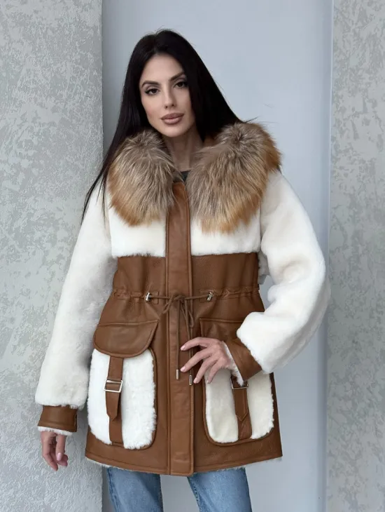 Удобный воротник позаботится о комфортной температуре шеи и подчеркнет ее изгибы. Благородная расцветка выгодно оттенит цвет глаз и волос владелицы. Оригинальный рюкзак и грубая, но стильная обувь будут гармонично сочетаться с образом. Купить дубленку – бомбер со спущенным плечом из натуральной овчины могут молодые девушки, которые хотят выглядеть стильно вне зависимости от времени года.