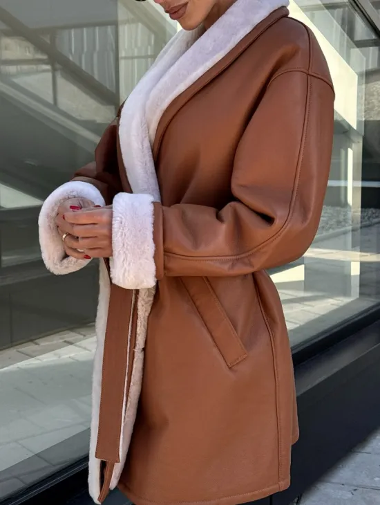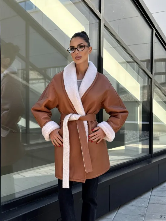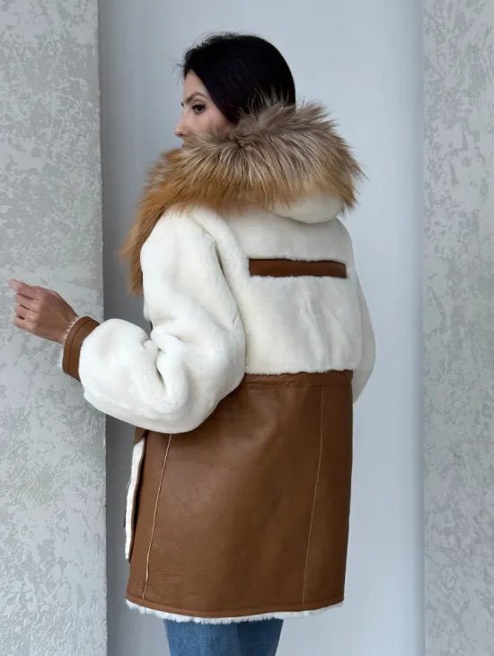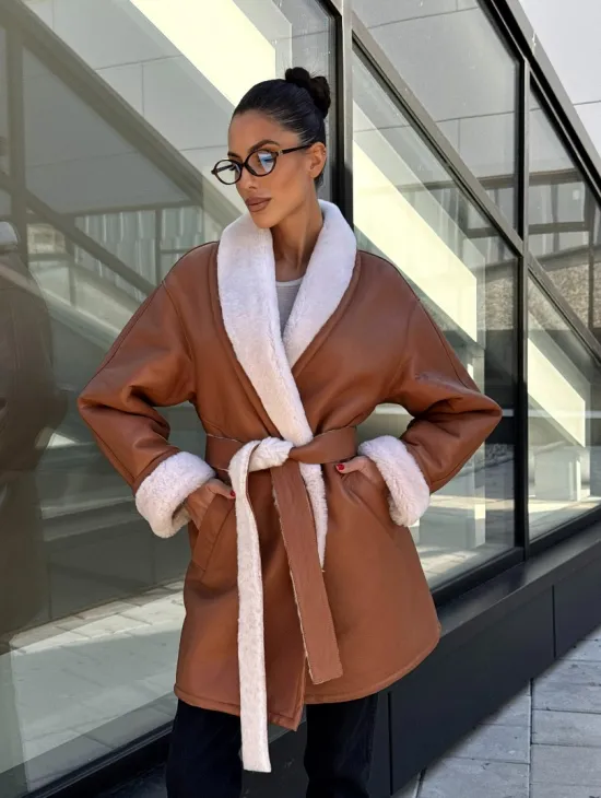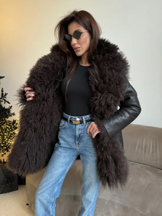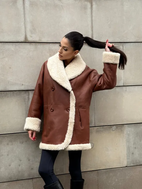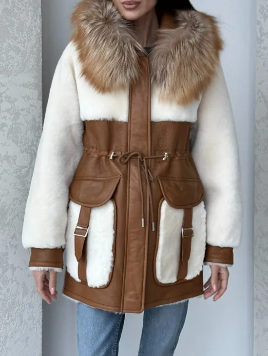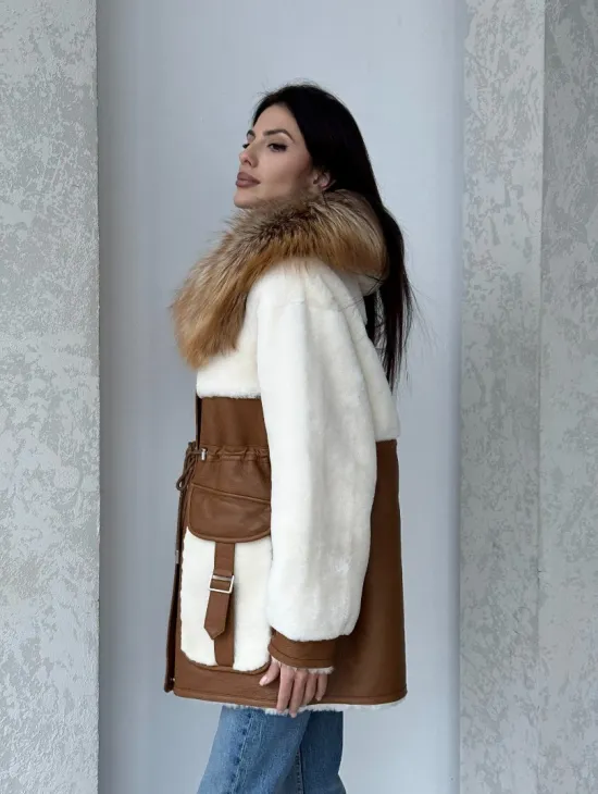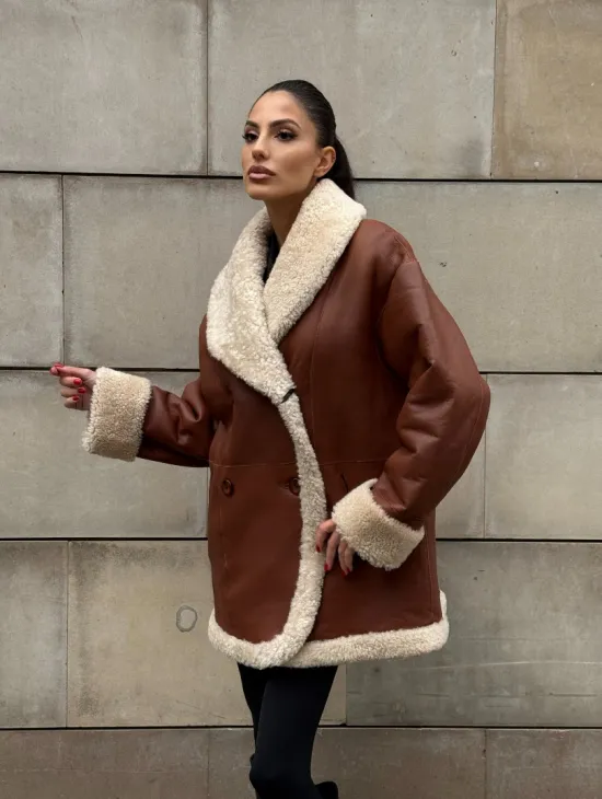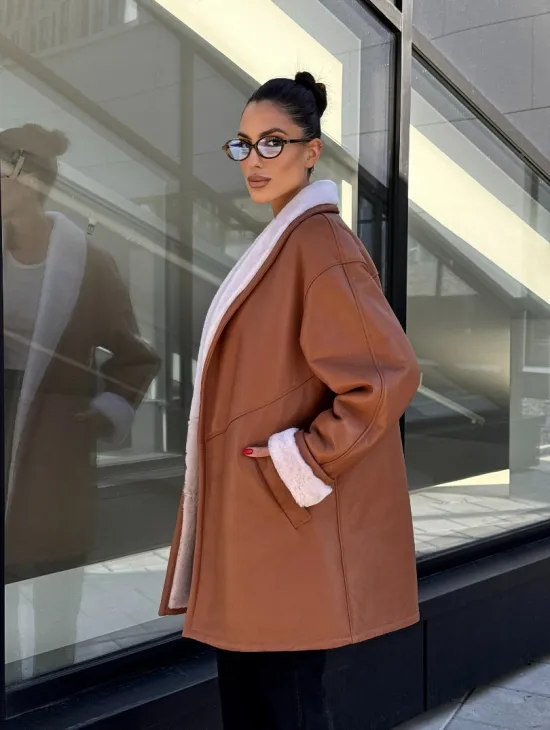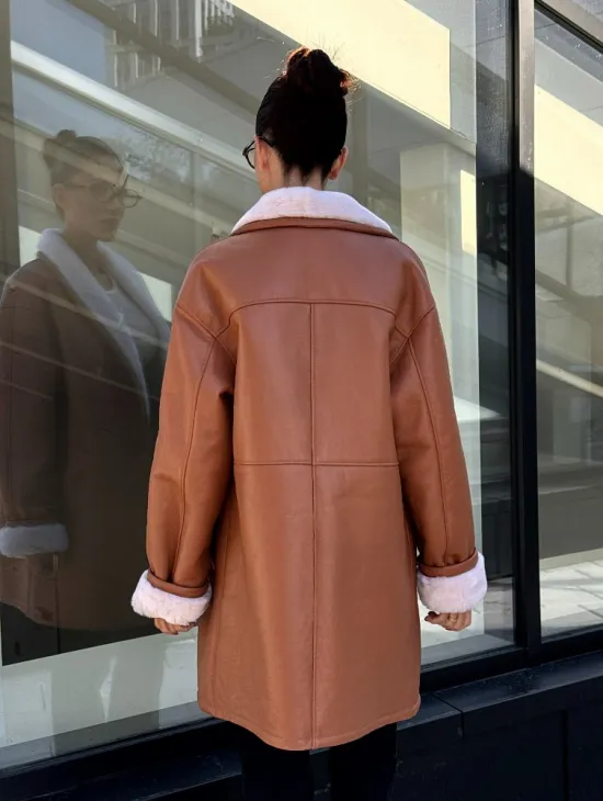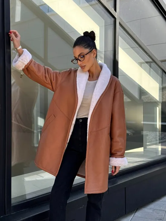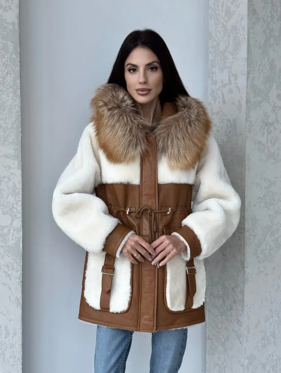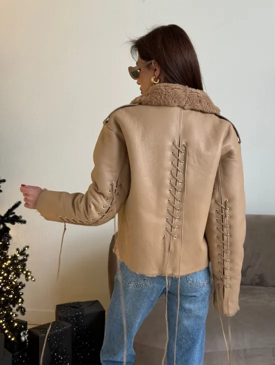 Удобный воротник позаботится о комфортной температуре шеи и подчеркнет ее изгибы. Благородная расцветка выгодно оттенит цвет глаз и волос владелицы. Оригинальный рюкзак и грубая, но стильная обувь будут гармонично сочетаться с образом. Купить дубленку – бомбер со спущенным плечом из натуральной овчины могут молодые девушки, которые хотят выглядеть стильно вне зависимости от времени года.