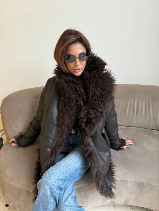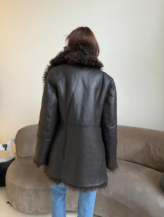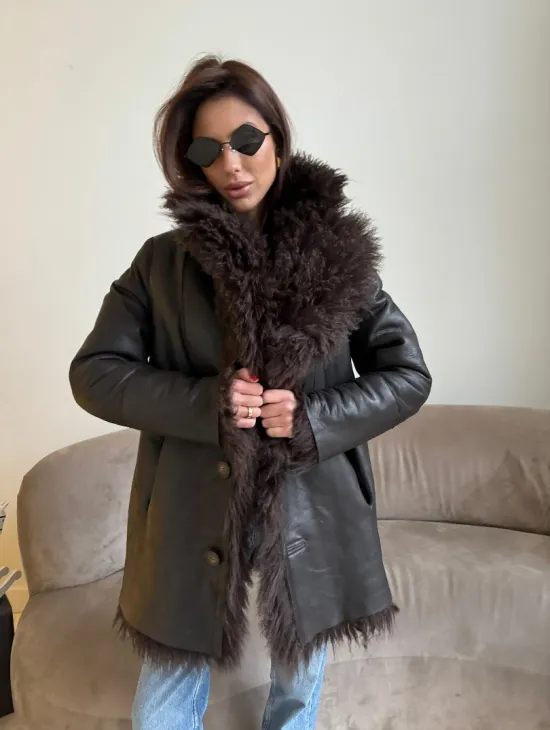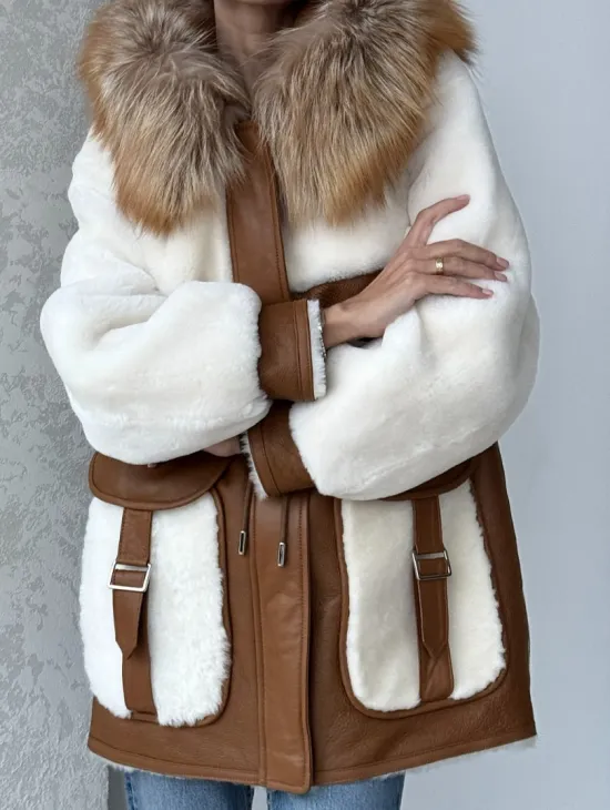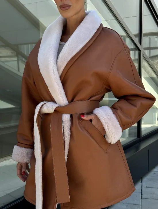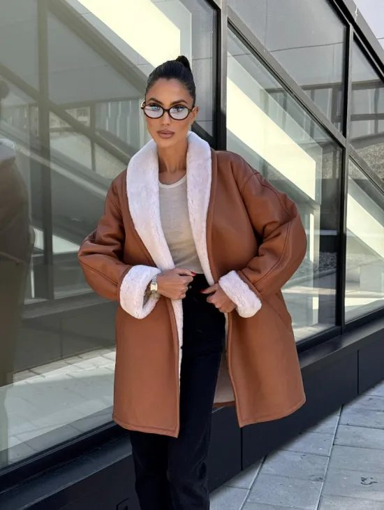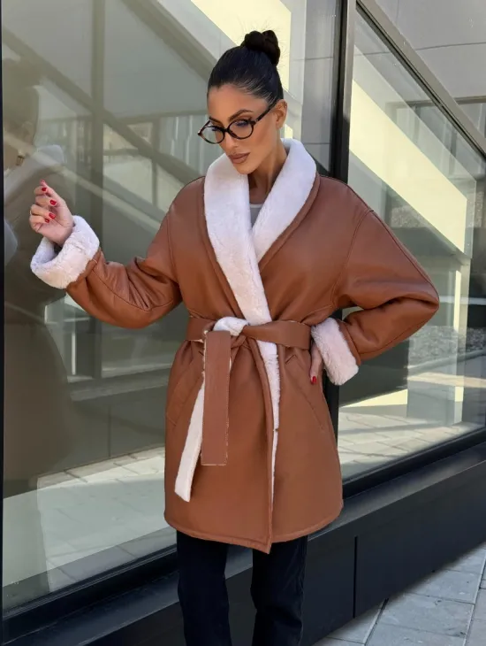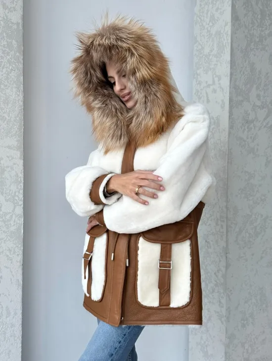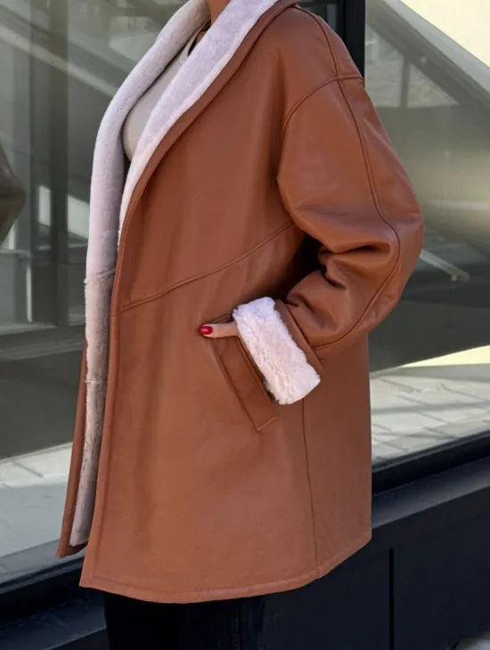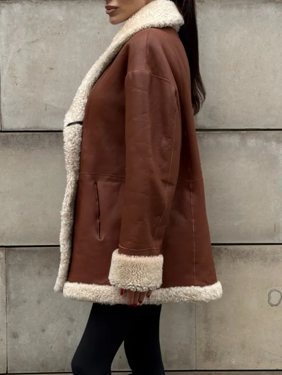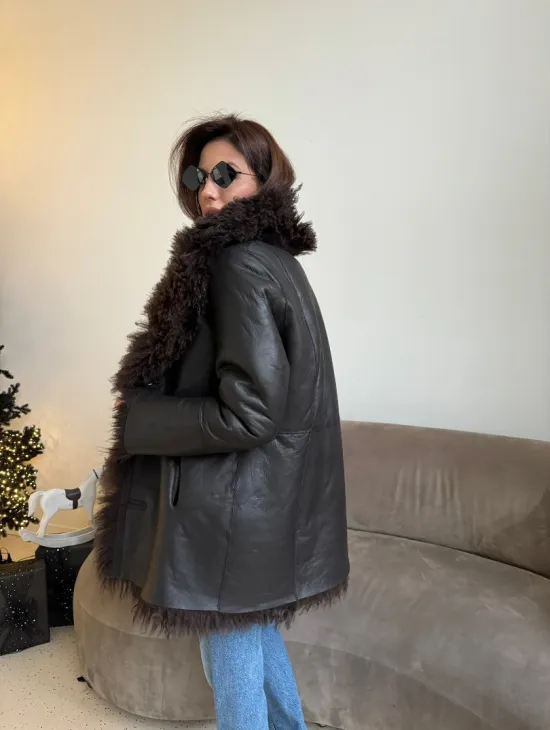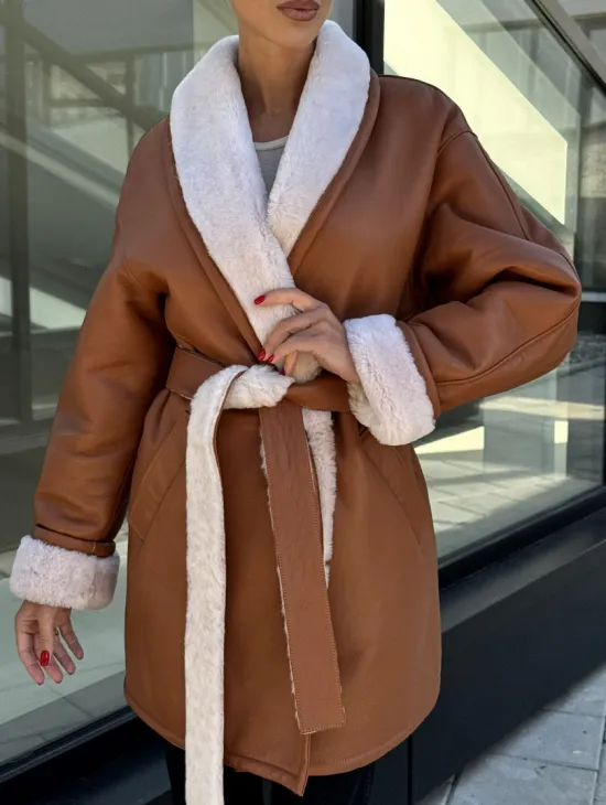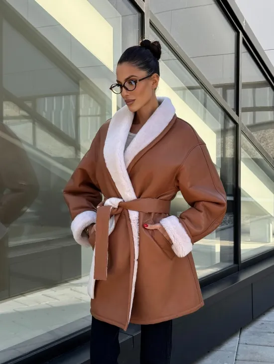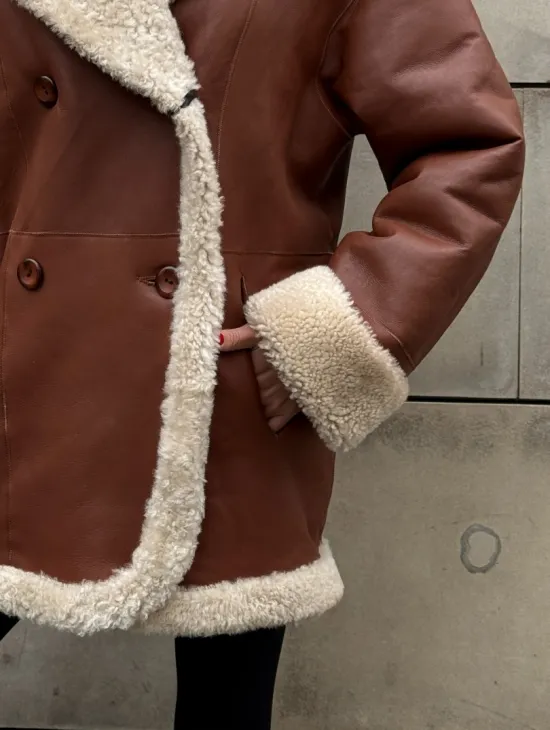 Удобный воротник позаботится о комфортной температуре шеи и подчеркнет ее изгибы. Благородная расцветка выгодно оттенит цвет глаз и волос владелицы. Оригинальный рюкзак и грубая, но стильная обувь будут гармонично сочетаться с образом. Купить дубленку – бомбер со спущенным плечом из натуральной овчины могут молодые девушки, которые хотят выглядеть стильно вне зависимости от времени года.