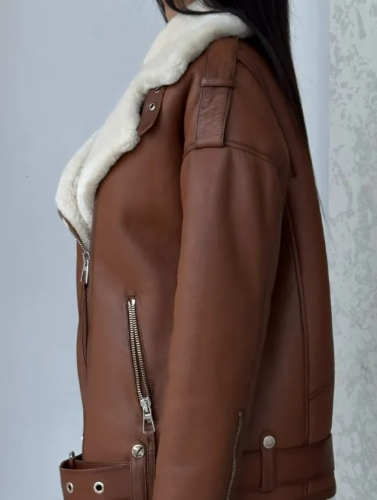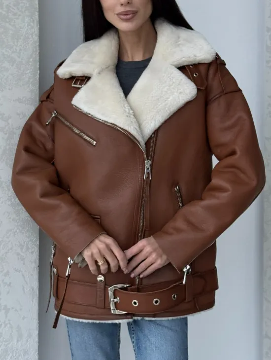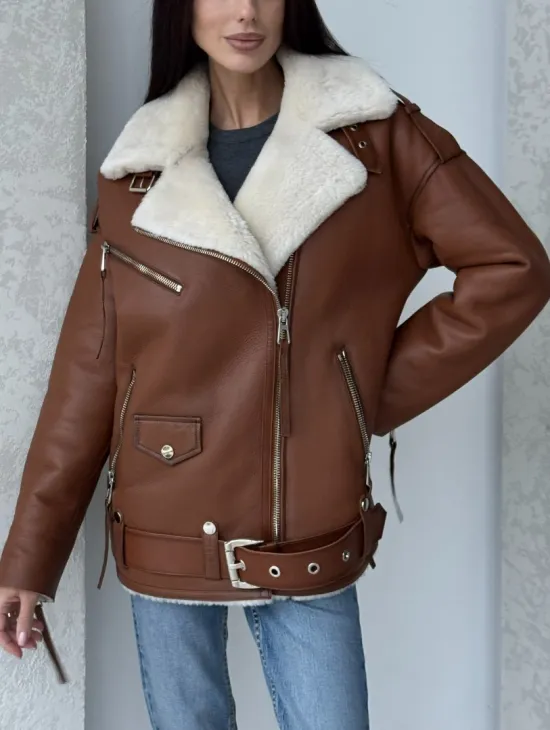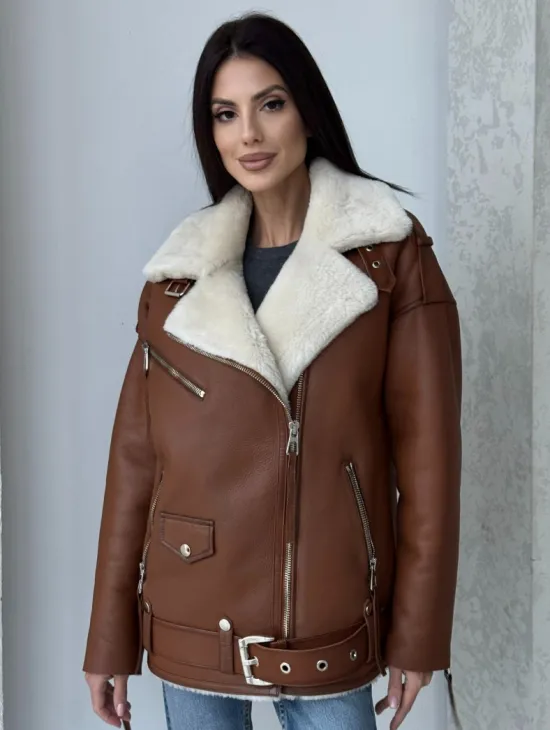 Дубленка – бомбер со спущенным плечом из натуральной овчины – выбор современных девушек, которые любят свободу. Модель отлично подходит для юных леди, которые хотят выглядеть стильно. Натуральная овчина согреет владелицу в непогоду. Оптимальная длина удобна в носке и не сковывает движения. Изделие сочетается с базовым гардеробом, подойдет под спортивный look.
