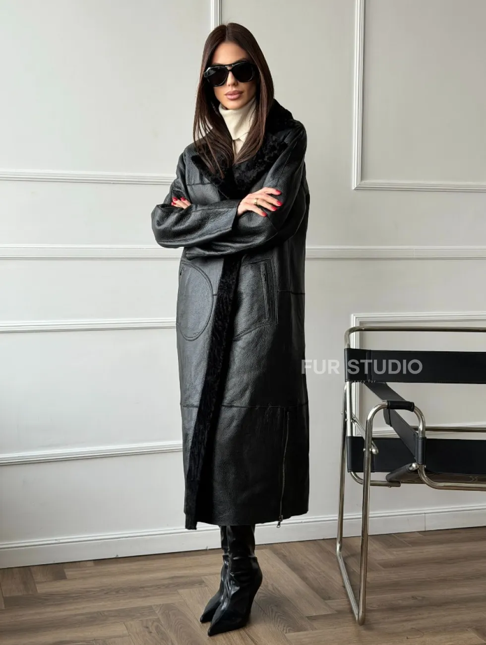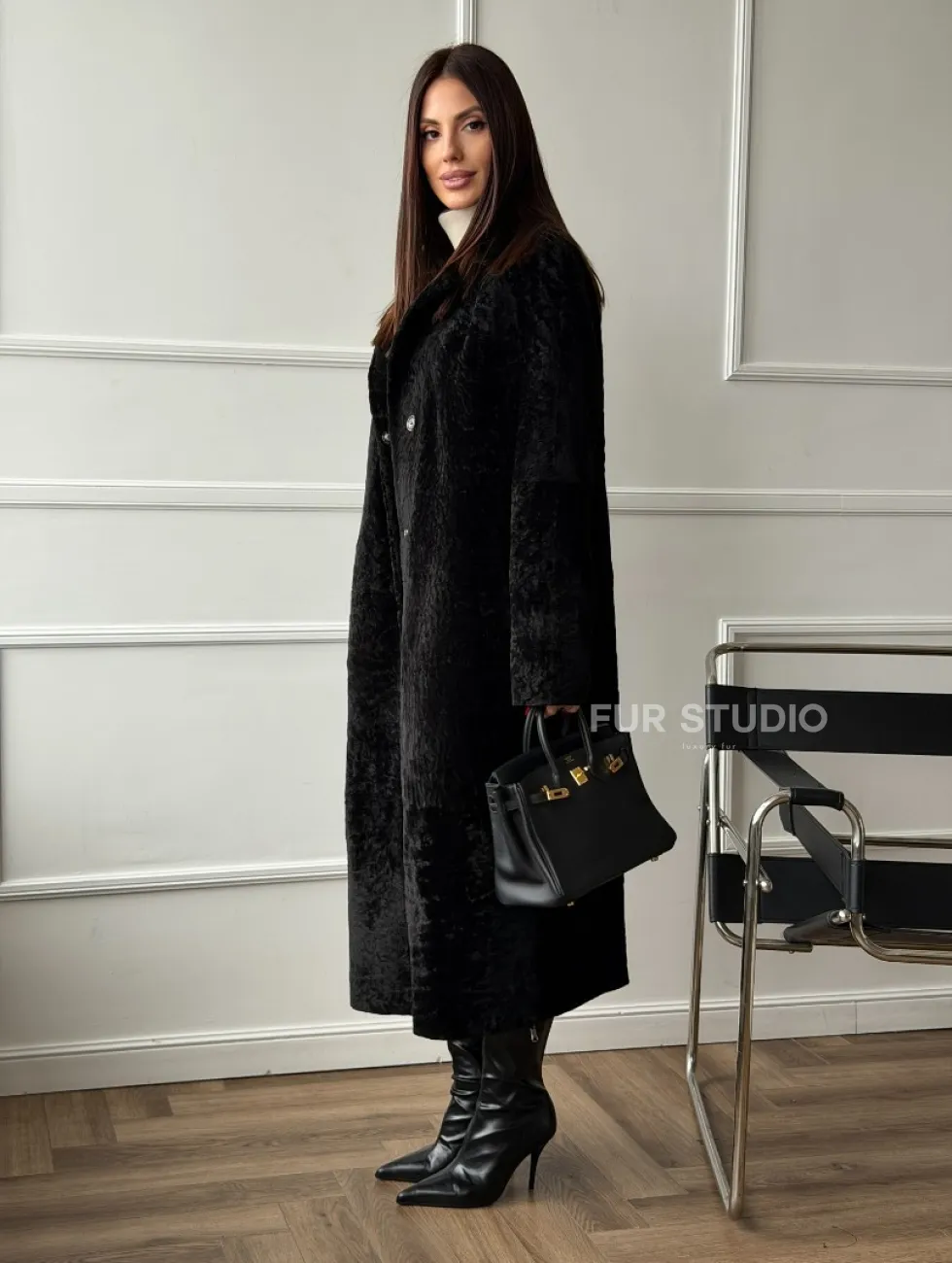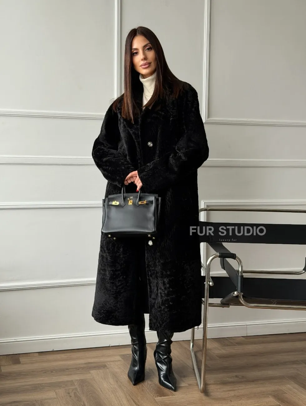 Дубленка из натуральной овчины астраган. Модель предлагается в размерах от 42 до 48. Оптимальная длина моделей 115-120 см подчеркивает линии вашей фигуры. Эта дубленка станет неотъемлемой частью гардероба для тех, кто предпочитает роскошь и утонченность натуральной кожи.
