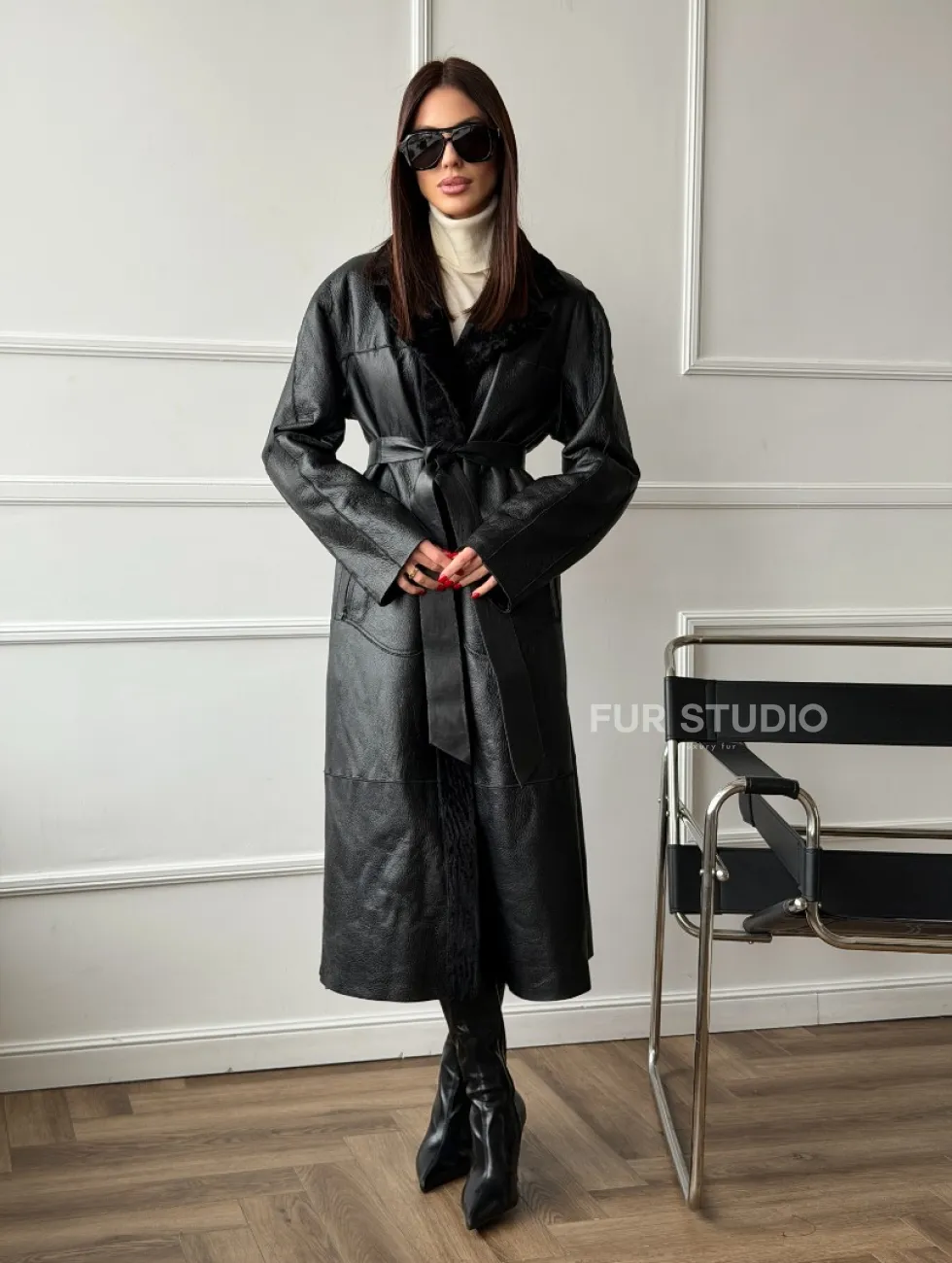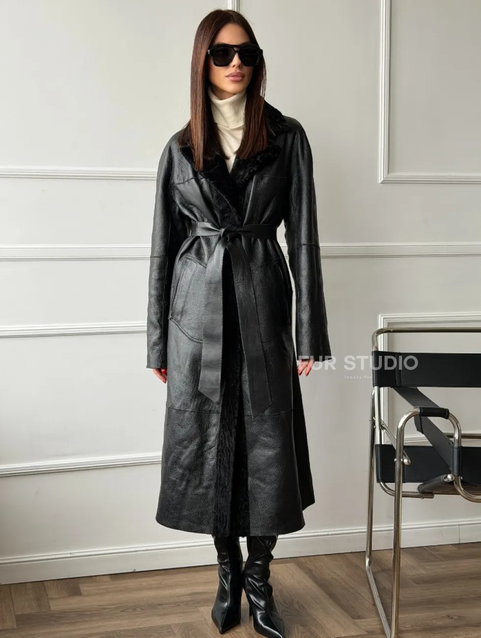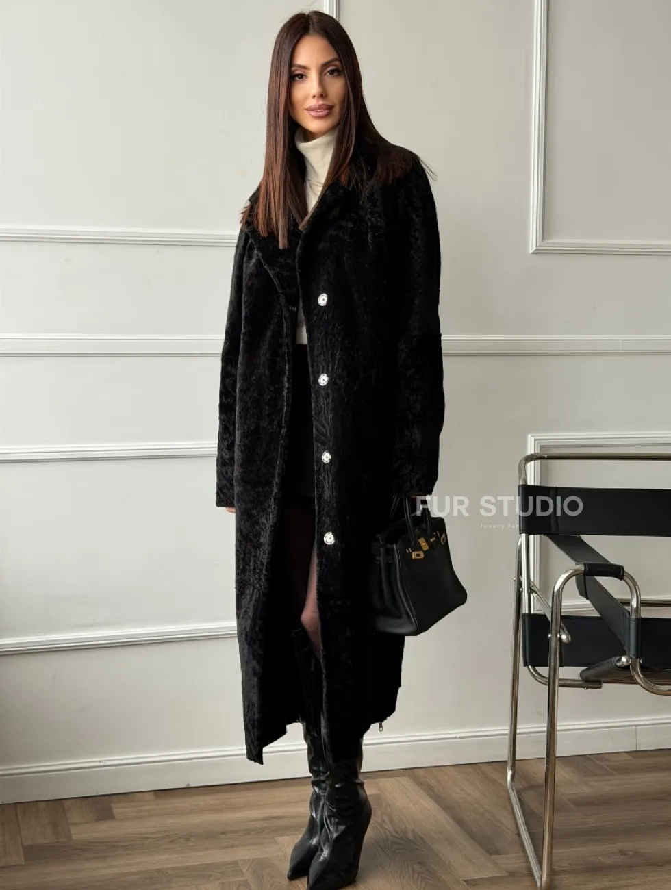 Дубленка из натуральной овчины астраган. Модель предлагается в размерах от 42 до 48. Оптимальная длина моделей 115-120 см подчеркивает линии вашей фигуры. Эта дубленка станет неотъемлемой частью гардероба для тех, кто предпочитает роскошь и утонченность натуральной кожи.