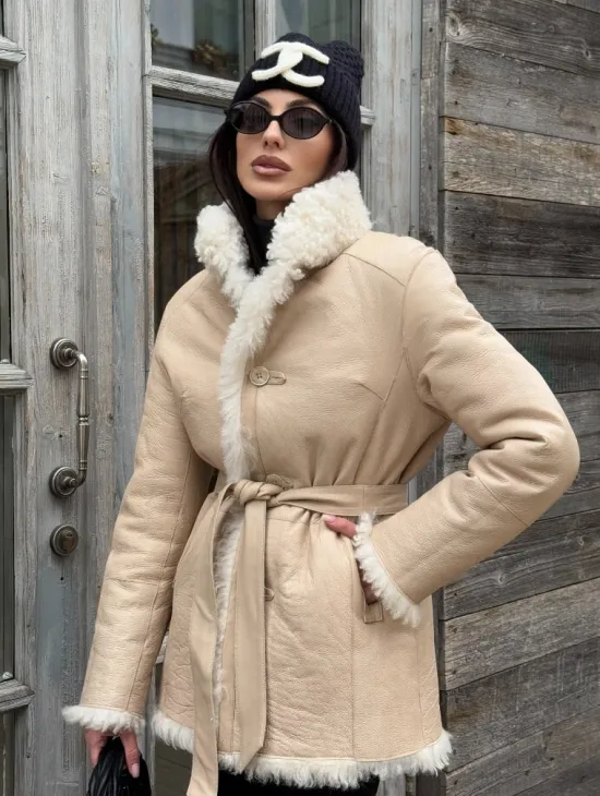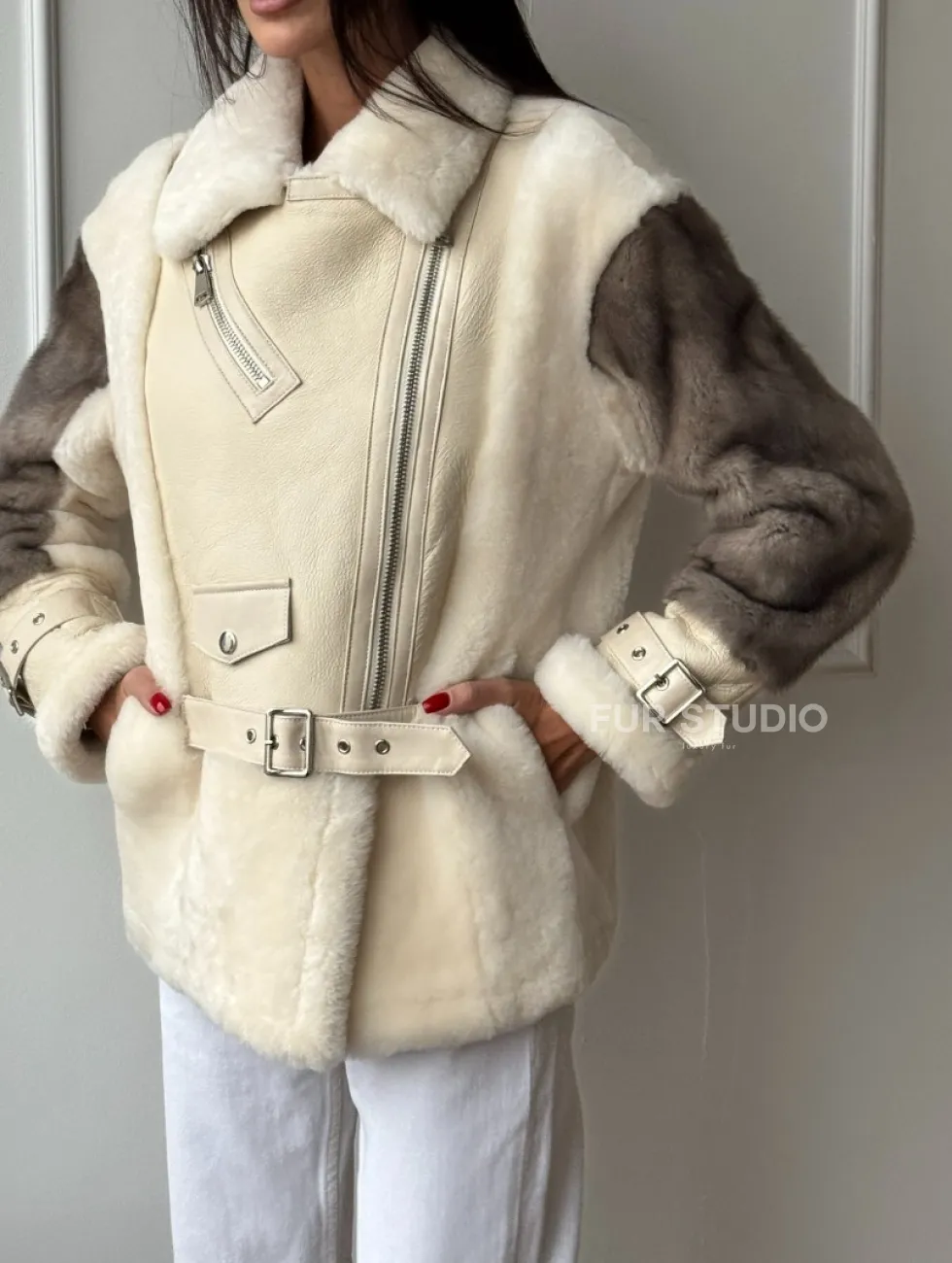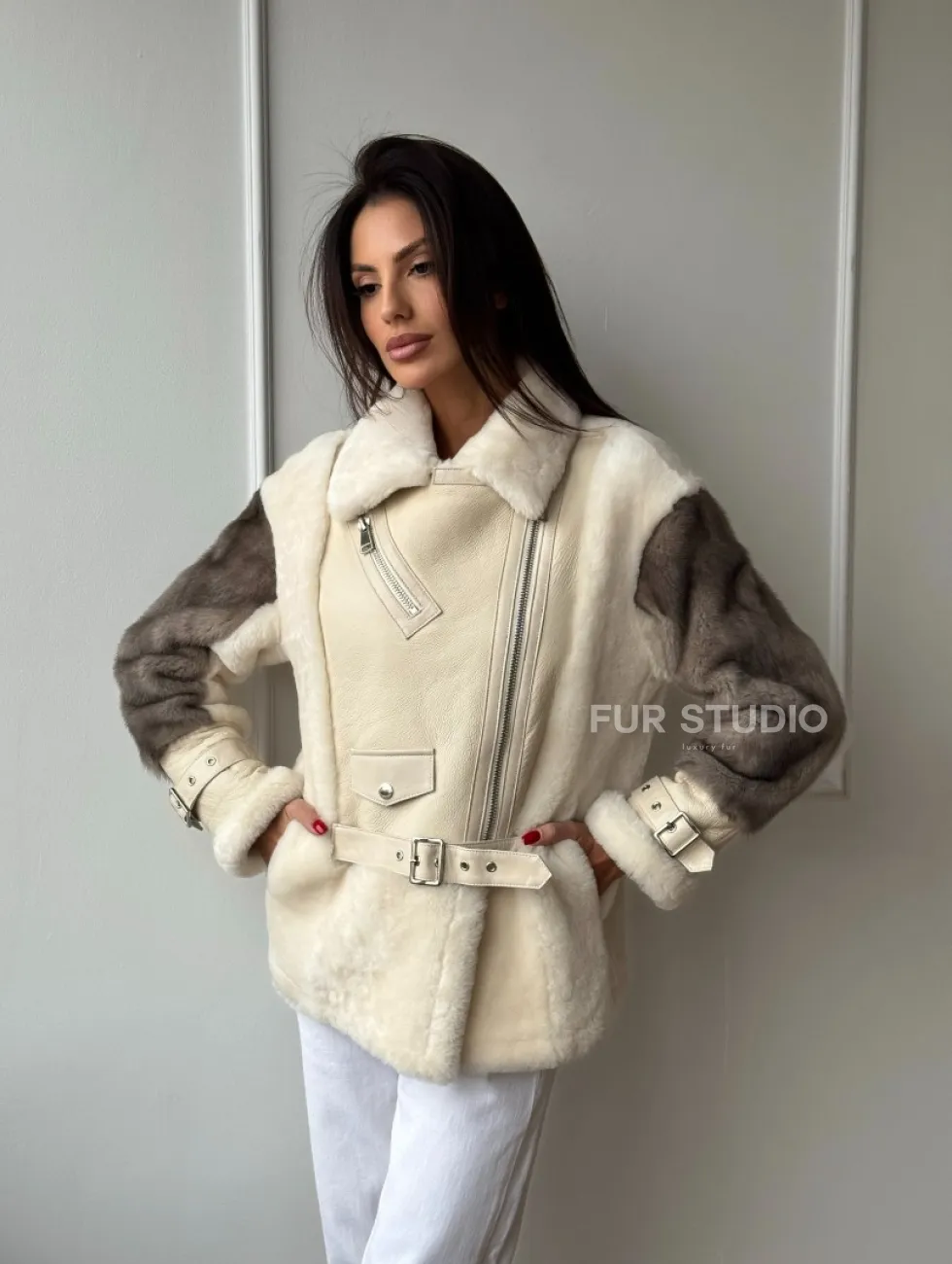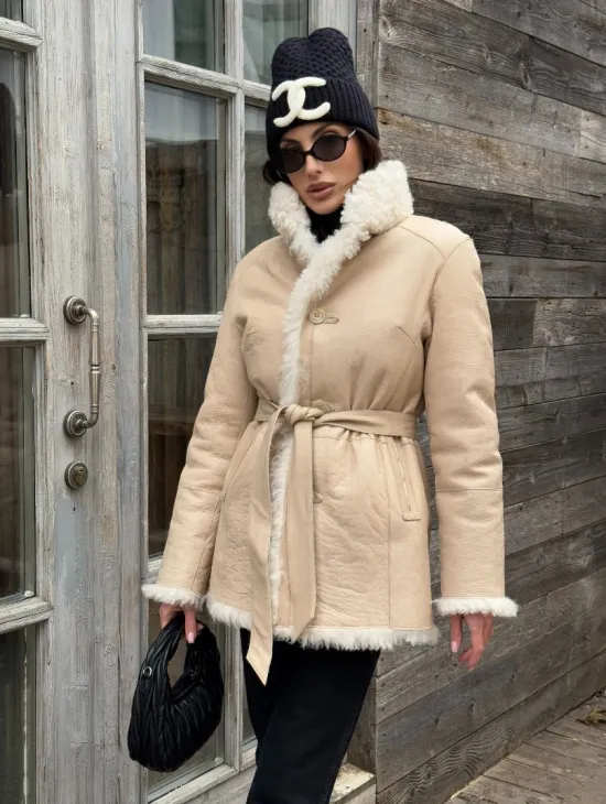 Дубленка из натуральной овчины с рукавами из меха норки - выбор девушек, которые любят быть неотразимыми в любое время года. Сочетание кожи и меха норки смотрится необычно, делает модель уникальной. Светлый цвет создает образ Снежной Королевы и выглядит благородно. Овчина согреет, даже если на улице будет очень холодно.