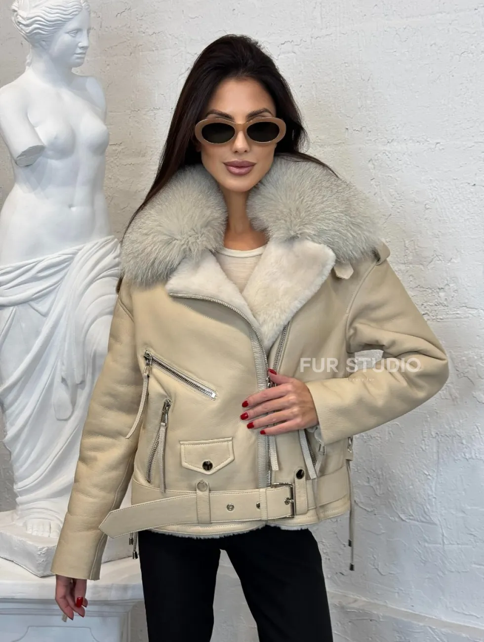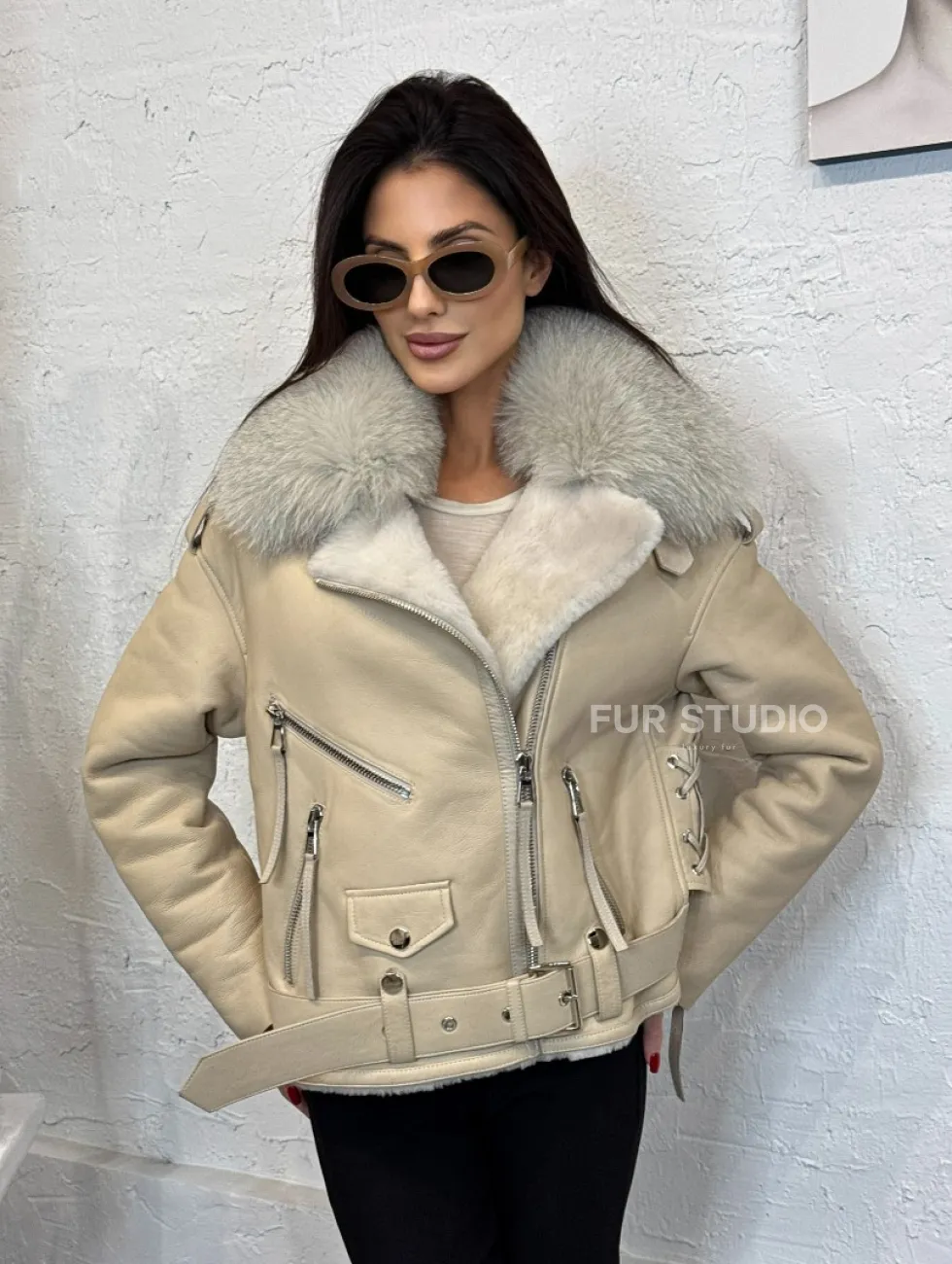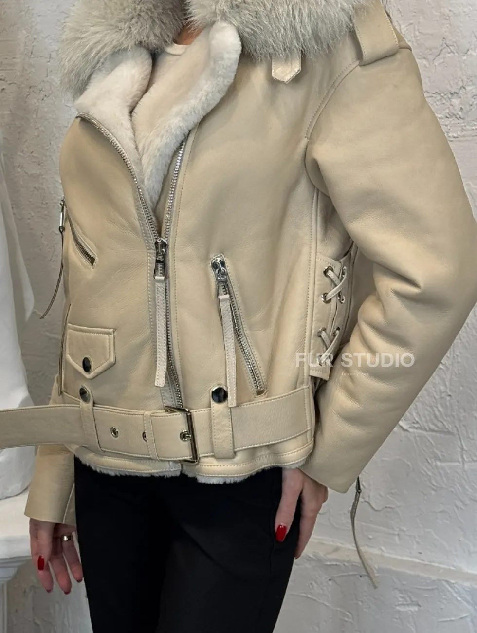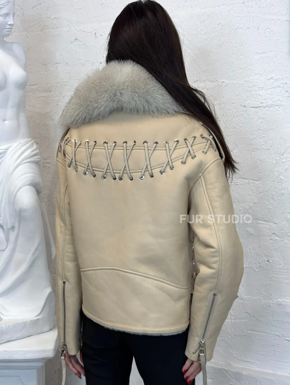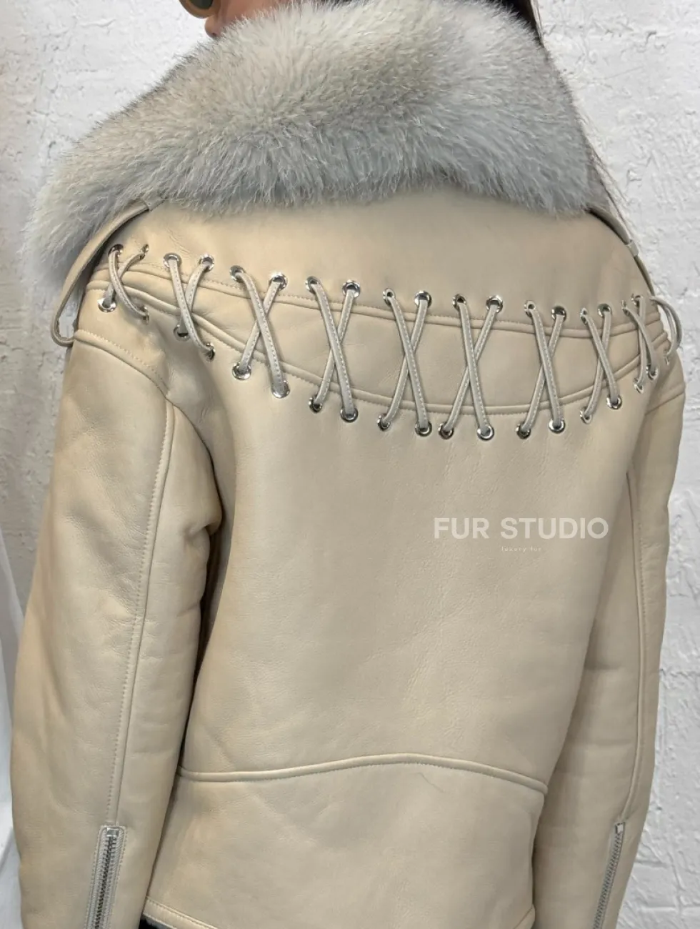 Дубленка из натуральной овчины со шнуровкой на спине и воротником из меха песца доступна для покупки в нашем шоуруме Furs Studio в Москве, а также предлагается удобная доставка во все города России. Обогатите свой гардероб этой дубленкой, которая прослужит вам многие годы, добавив немного роскоши в ваш повседневный образ.
