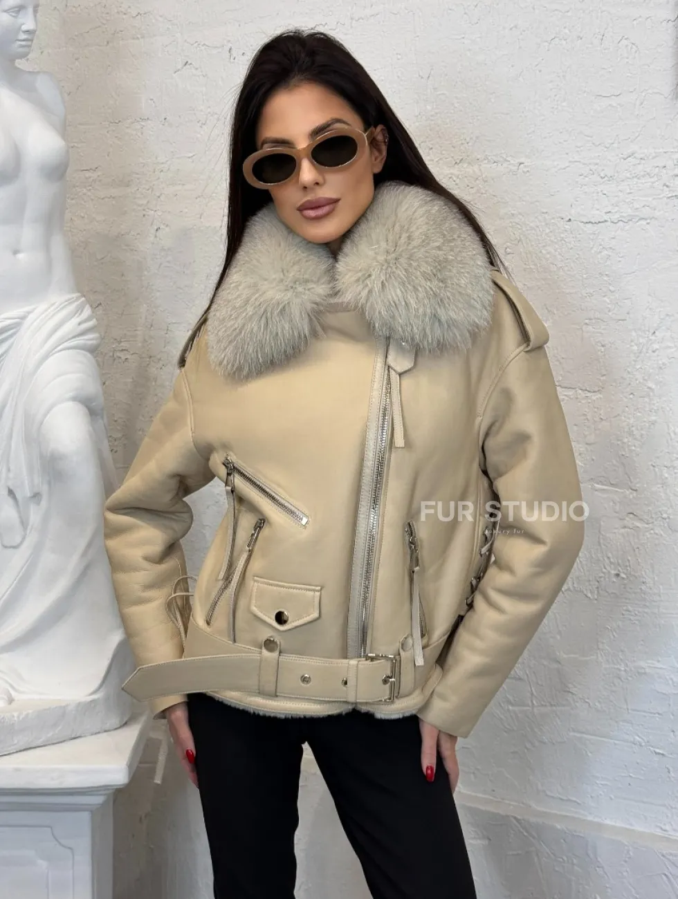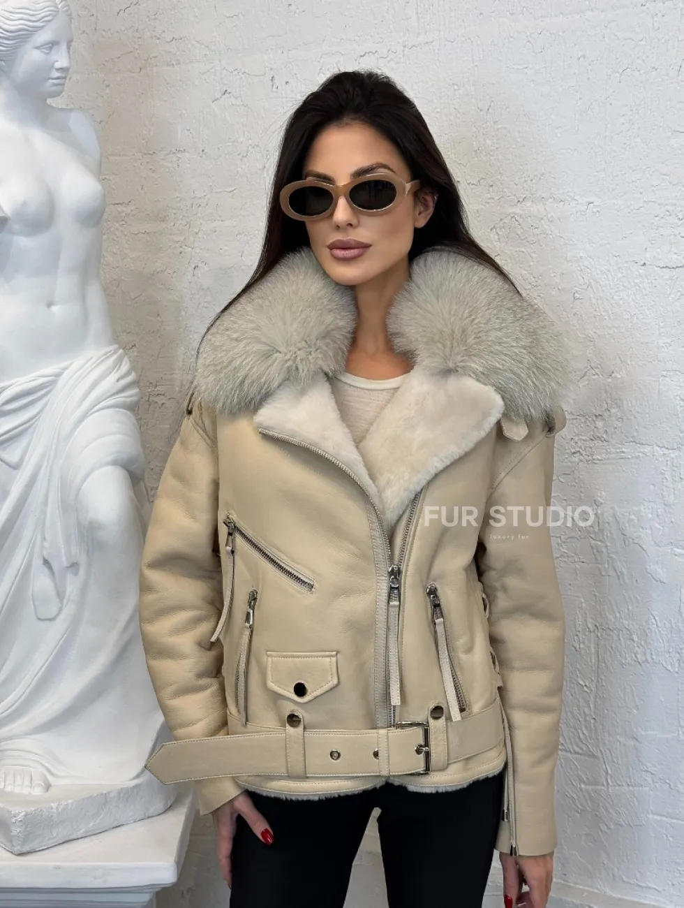Дубленка из натуральной овчины со шнуровкой на спине и воротником из меха песца. Модель предлагается в размерах от 42 до 48. Оптимальная длина моделей 50-55 см подчеркивает линии вашей фигуры. Эта дубленка станет неотъемлемой частью гардероба для тех, кто предпочитает роскошь и утонченность натуральной кожи.