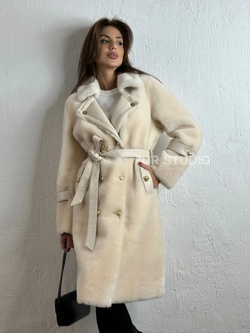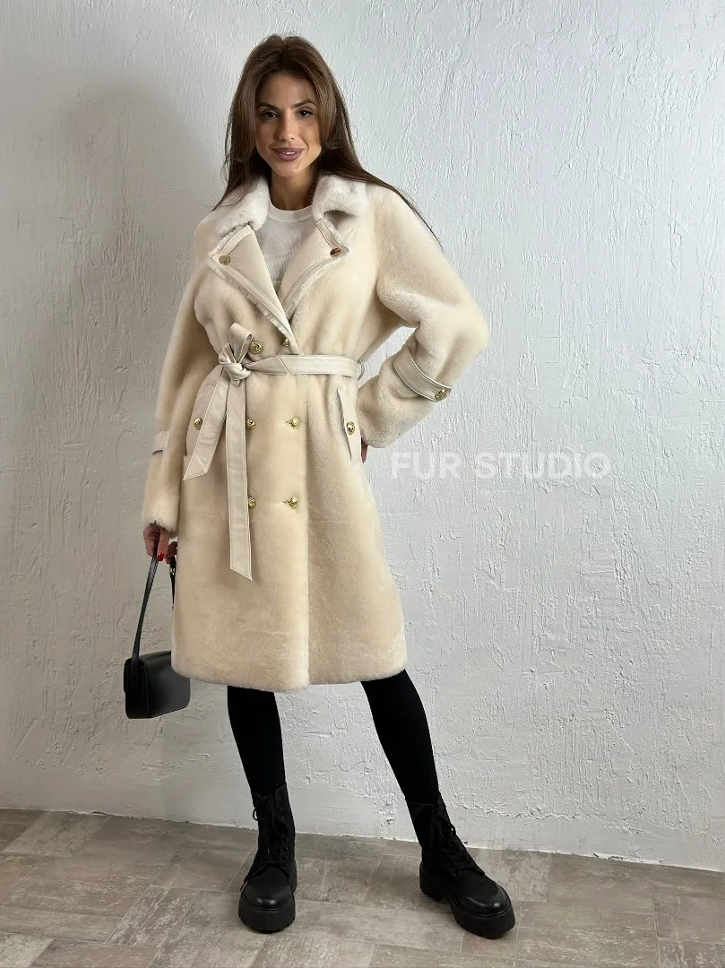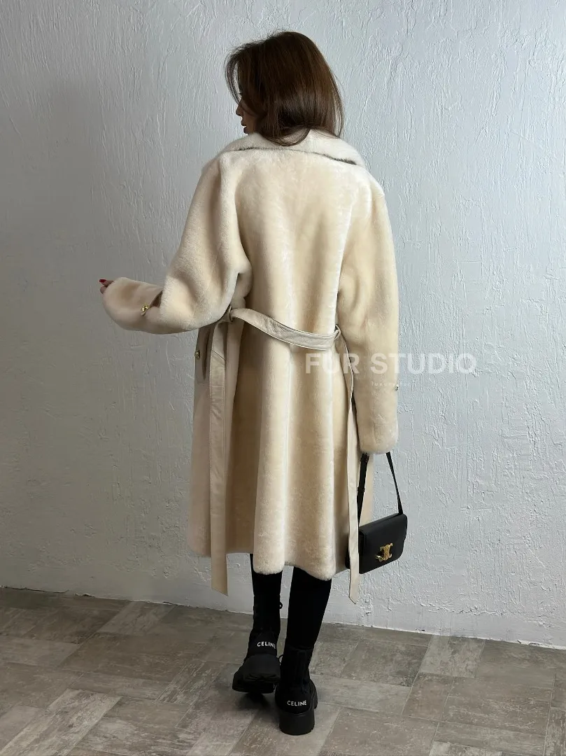 Дубленка из овчины с мехом норки - цвет молочный доступна для покупки в нашем шоуруме Furs Studio в Москве, а также предлагается удобная доставка во все города России. Обогатите свой гардероб этой дубленкой, которая прослужит вам многие годы, добавив немного роскоши в ваш повседневный образ.