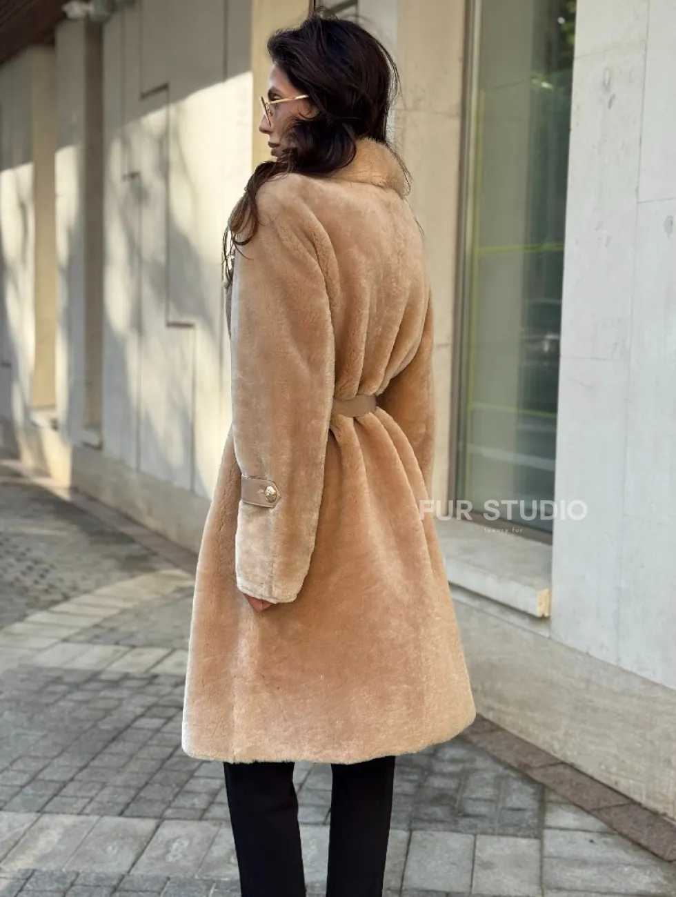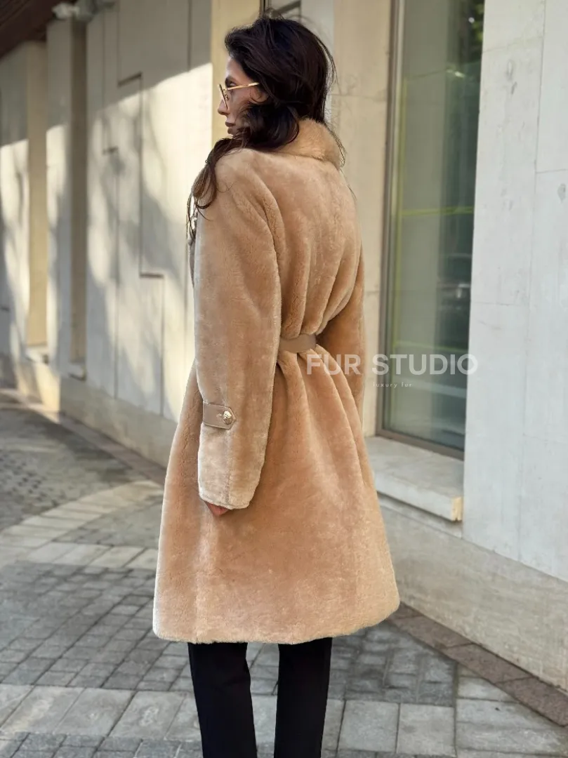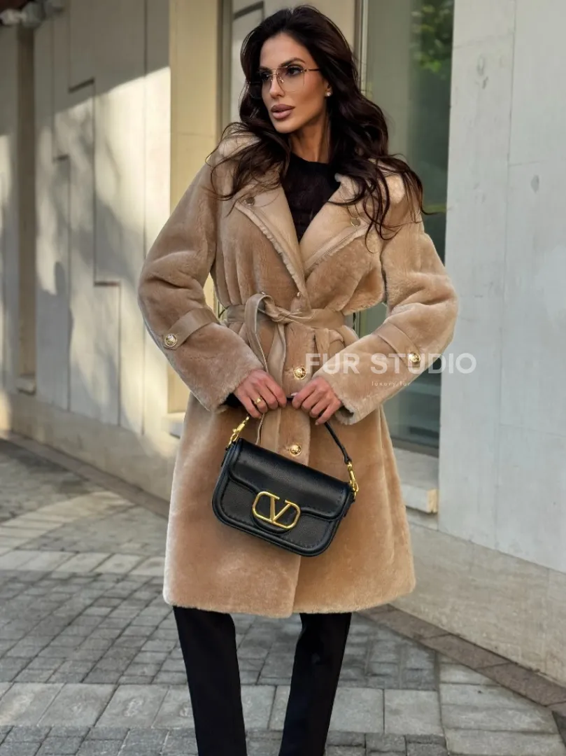 Дубленка из овчины с норковым воротником - цвет бежевый доступна для покупки в нашем шоуруме Furs Studio в Москве, а также предлагается удобная доставка во все города России. Обогатите свой гардероб этой дубленкой, которая прослужит вам многие годы, добавив немного роскоши в ваш повседневный образ.