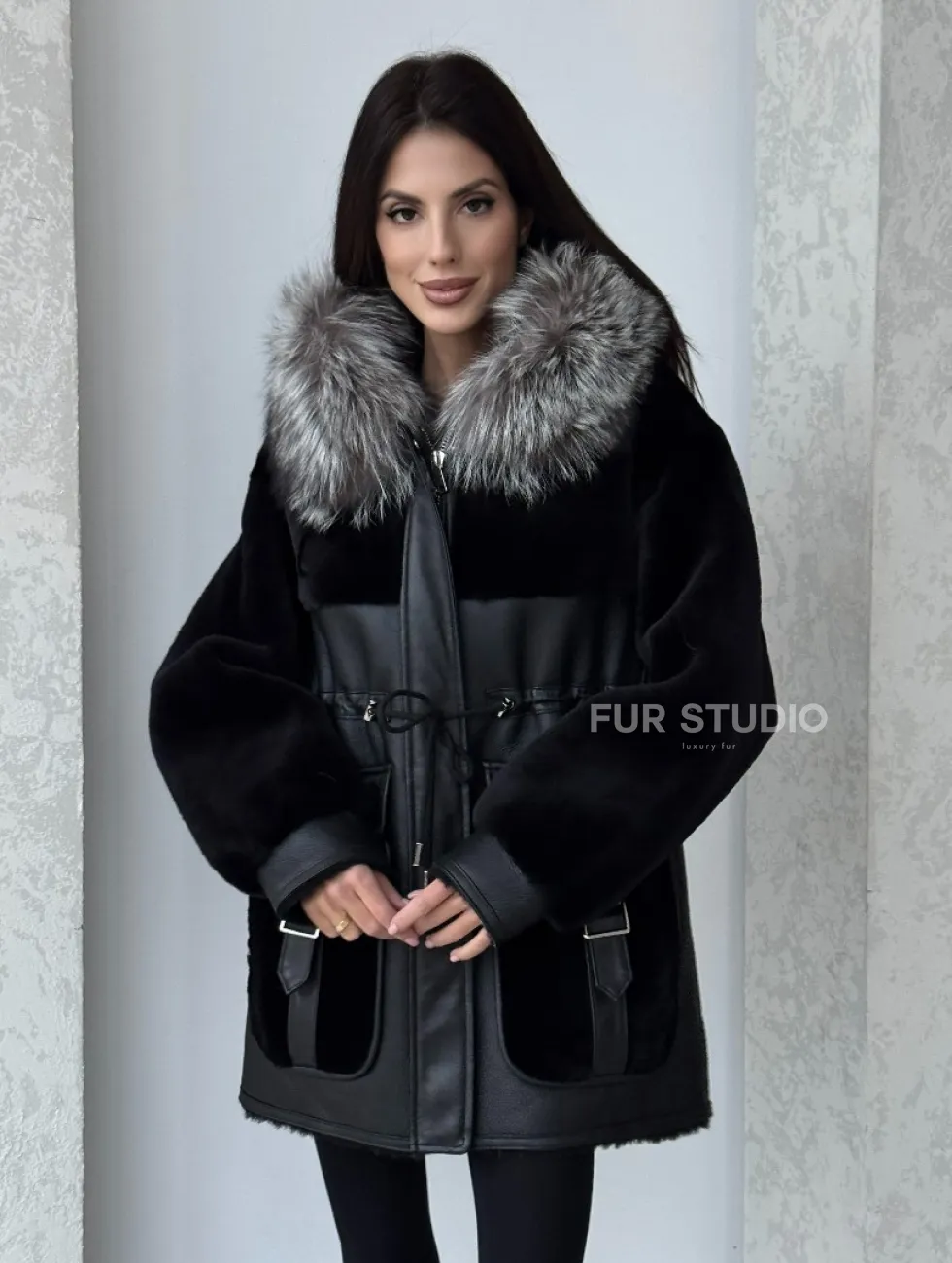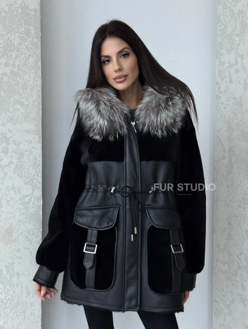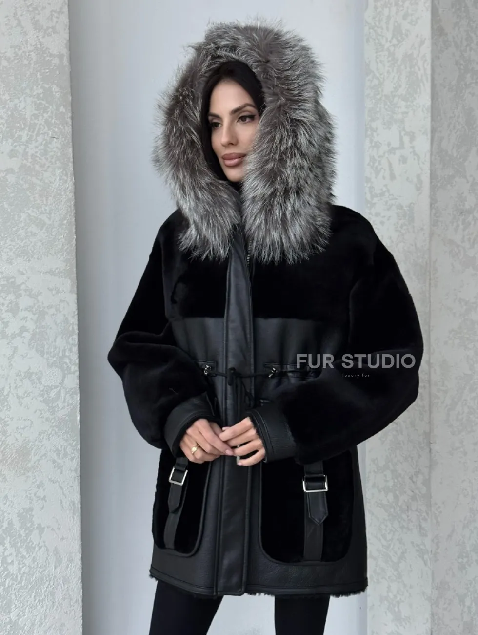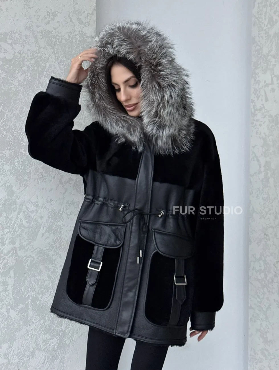 Дубленка женская из овчины на кулиске, капюшон - отделка из чернобурки доступна для покупки в нашем шоуруме Furs Studio в Москве, а также предлагается удобная доставка во все города России. Обогатите свой гардероб этой дубленкой, которая прослужит вам многие годы, добавив немного роскоши в ваш повседневный образ.