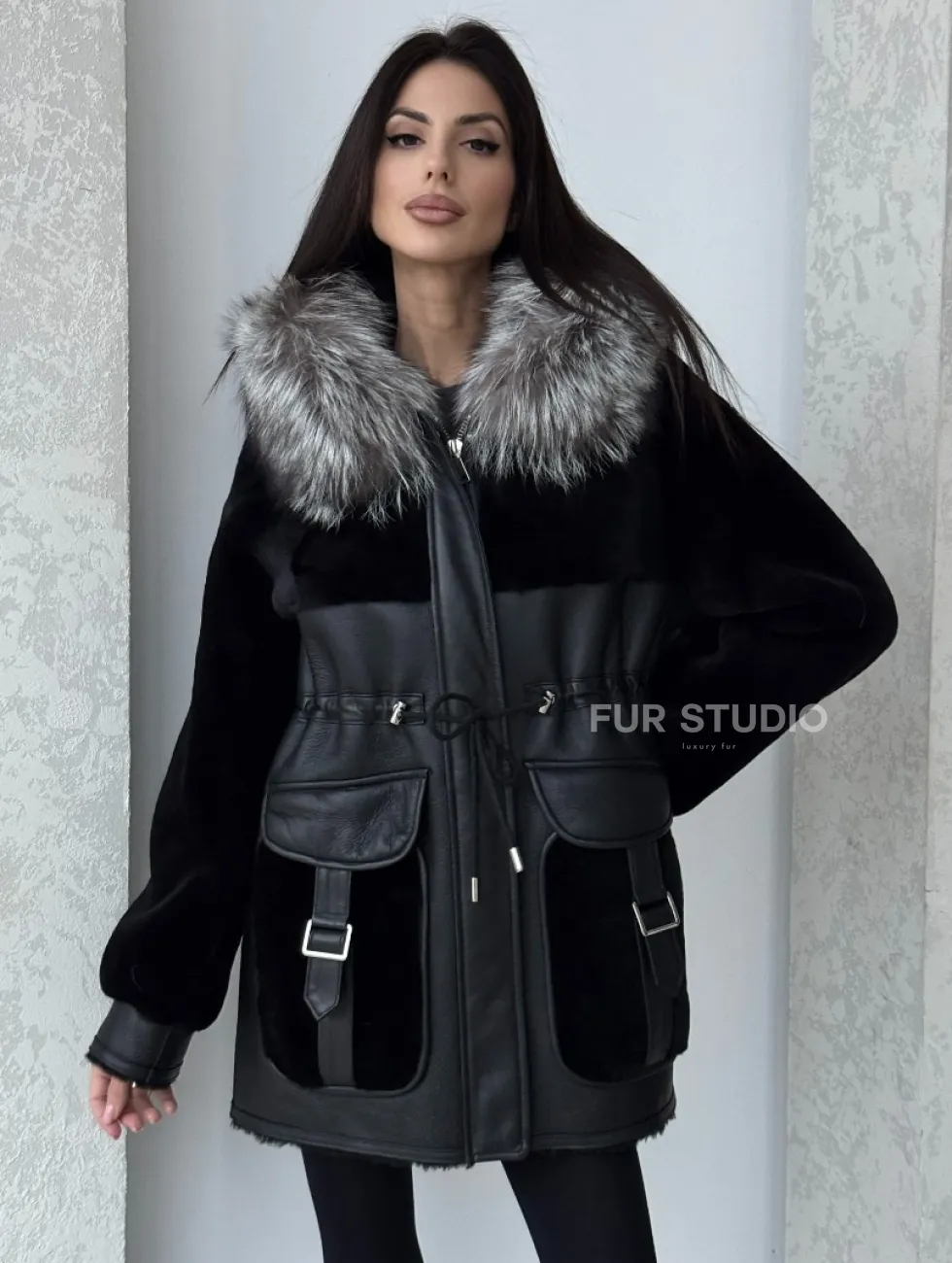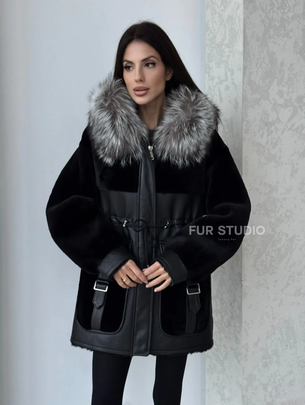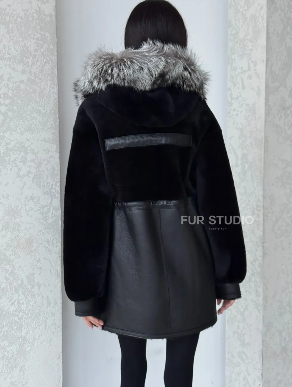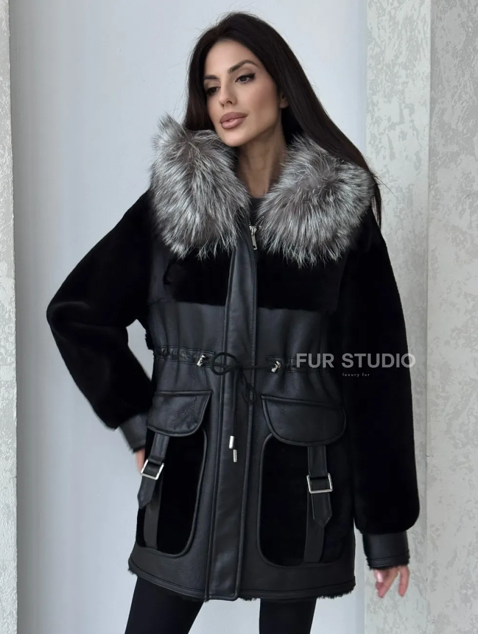 Дубленка женская из овчины на кулиске, капюшон - отделка из чернобурки доступна для покупки в нашем шоуруме Furs Studio в Москве, а также предлагается удобная доставка во все города России. Обогатите свой гардероб этой дубленкой, которая прослужит вам многие годы, добавив немного роскоши в ваш повседневный образ.