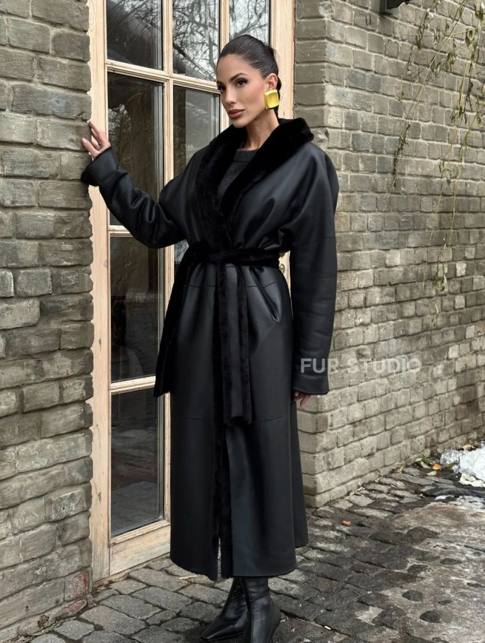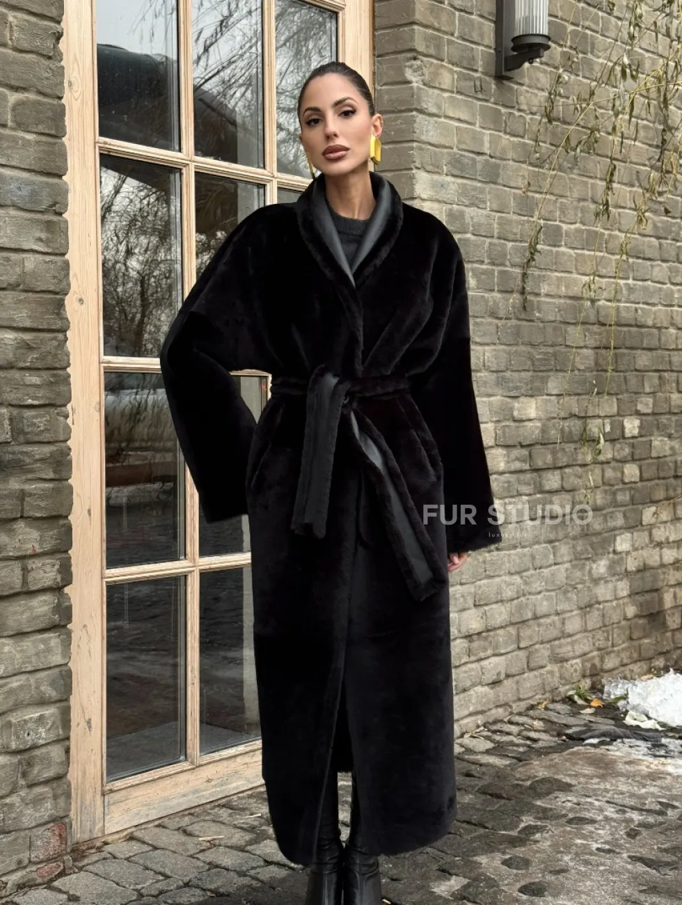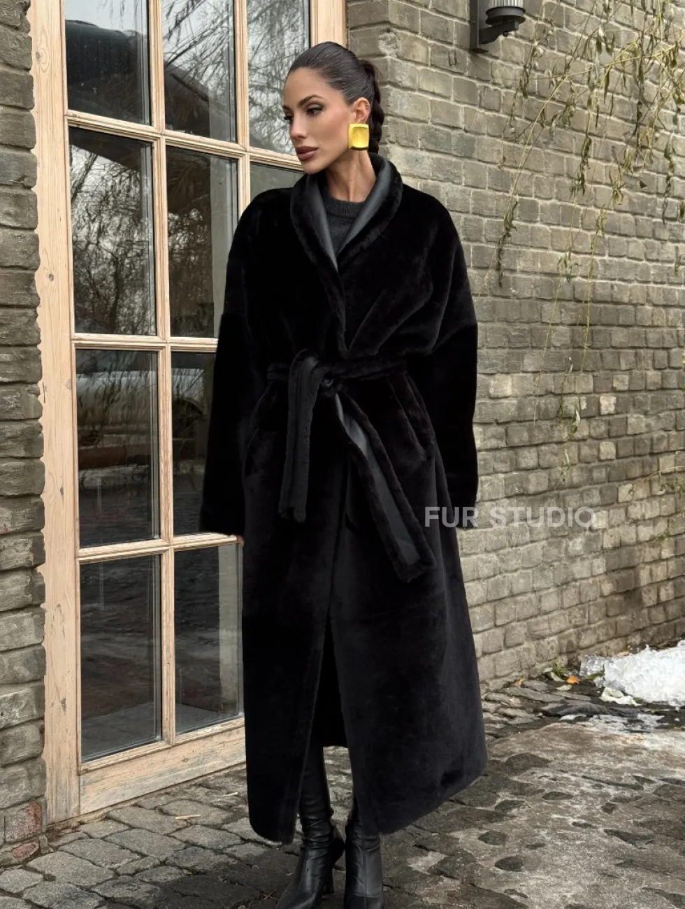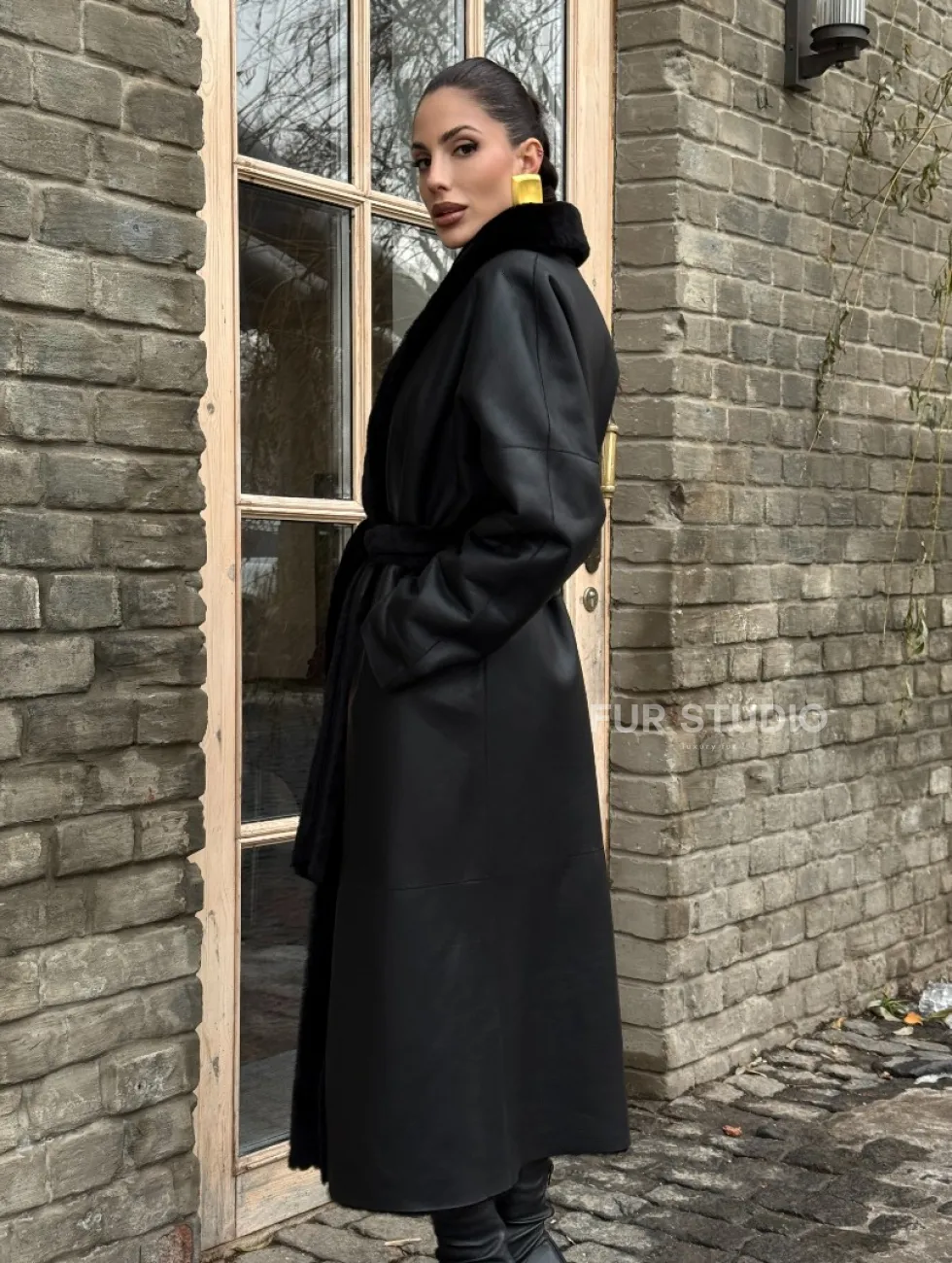 Двусторонняя модная дублёнка на запах из меха мериноса. Модель предлагается в размерах от 42 до 50. Оптимальная длина моделей 125-130 см подчеркивает линии вашей фигуры. Эта дубленка станет неотъемлемой частью гардероба для тех, кто предпочитает роскошь и утонченность натуральной кожи.
