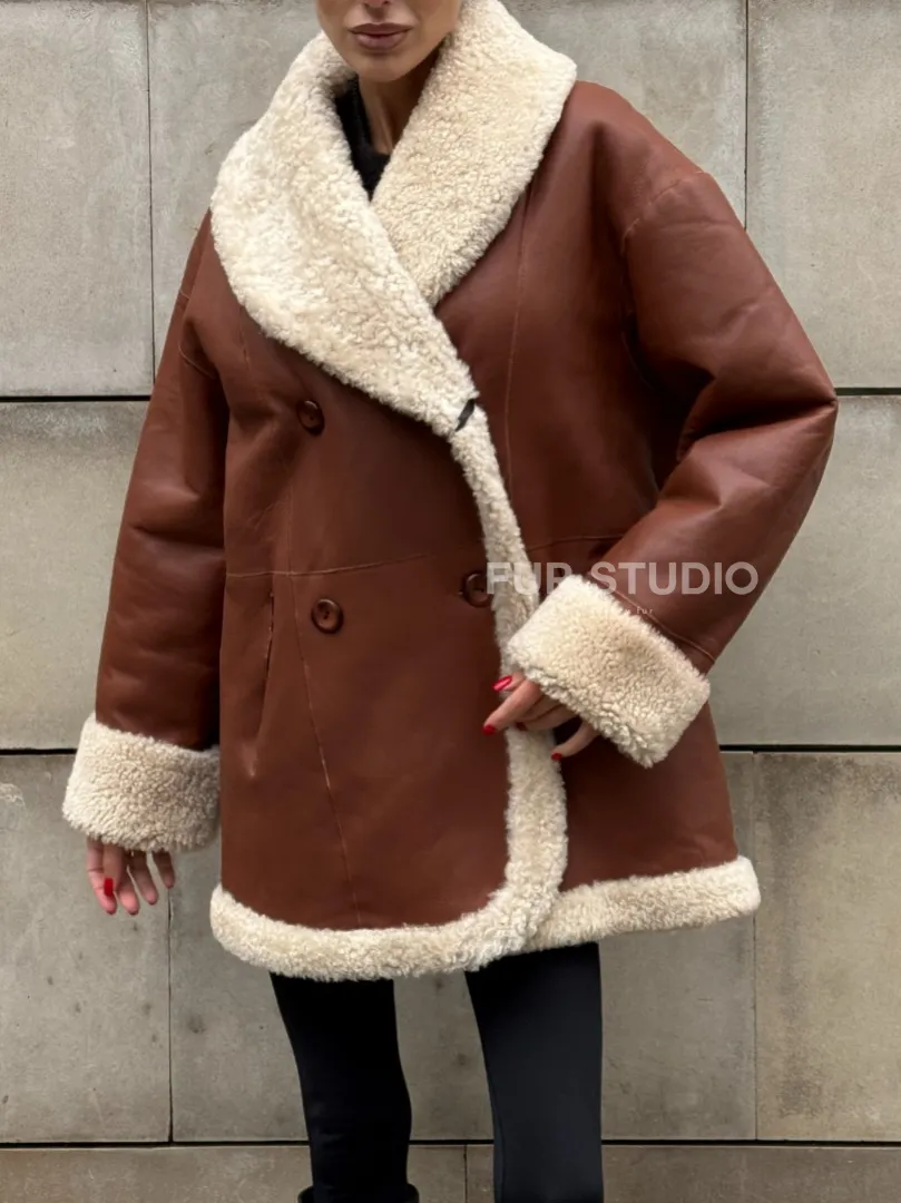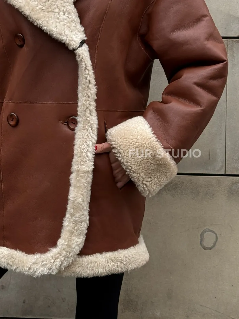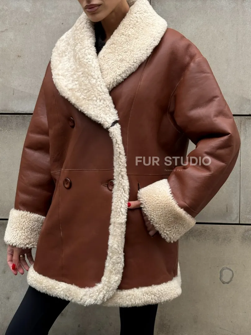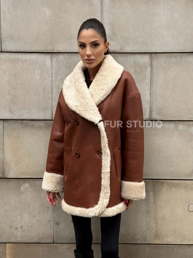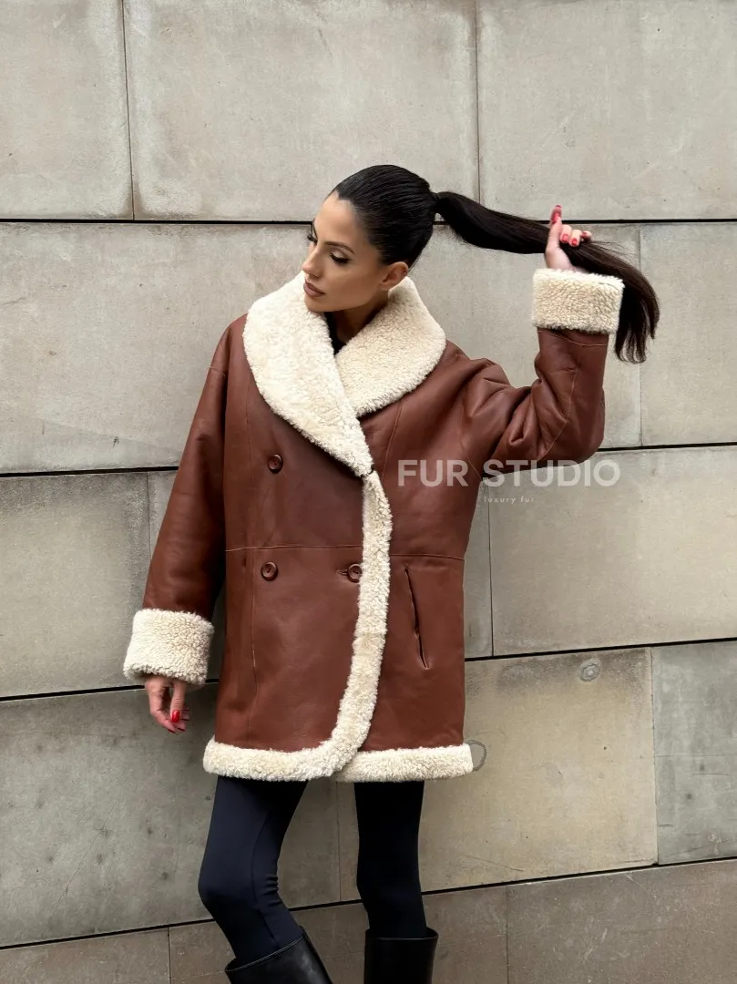 Двусторонняя женская дубленка из натуральной кожи с воротником шаль, на пуговицах доступна для покупки в нашем шоуруме Furs Studio в Москве, а также предлагается удобная доставка во все города России. Обогатите свой гардероб этой дубленкой, которая прослужит вам многие годы, добавив немного роскоши в ваш повседневный образ.