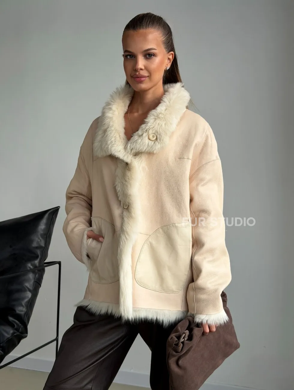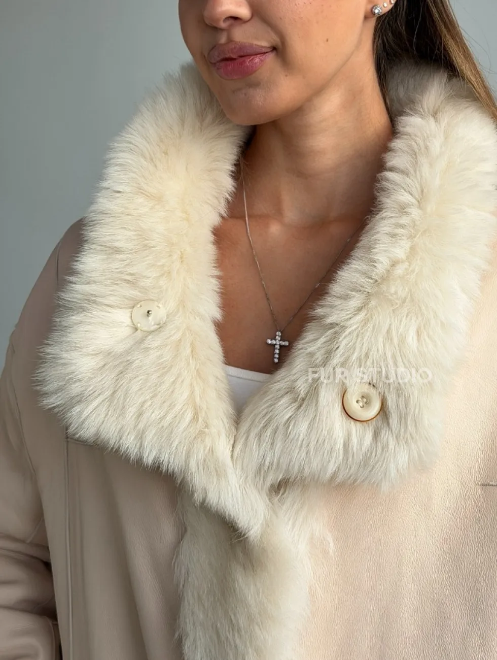 Двухсторонняя дубленка из меха тосканы. Модель предлагается в размерах от 42 до 46. Оптимальная длина моделей 65-70 см подчеркивает линии вашей фигуры. Эта дубленка станет неотъемлемой частью гардероба для тех, кто предпочитает роскошь и утонченность натуральной кожи.