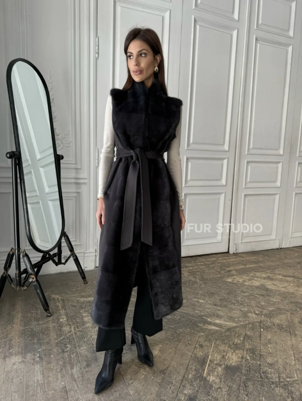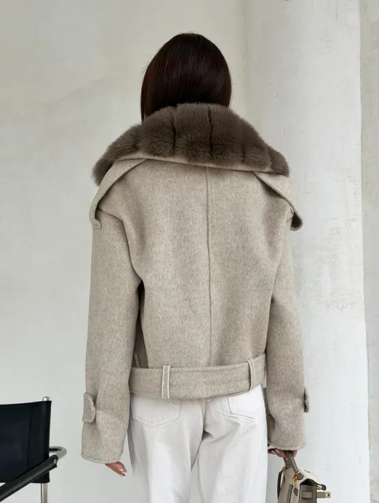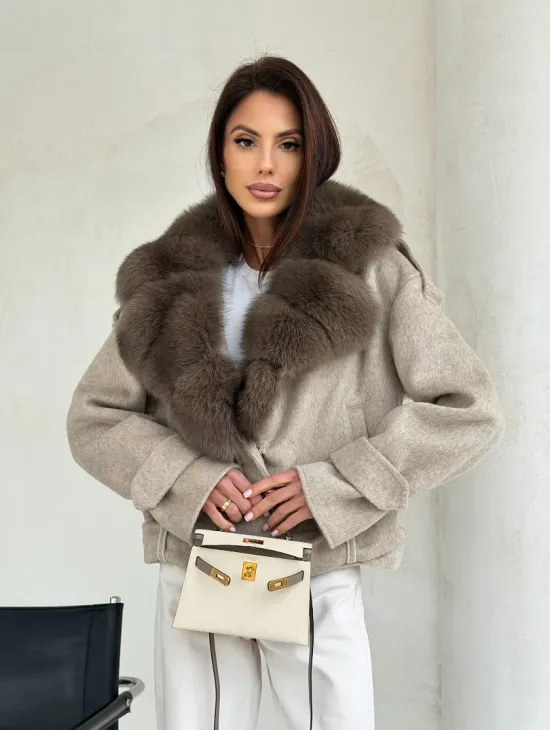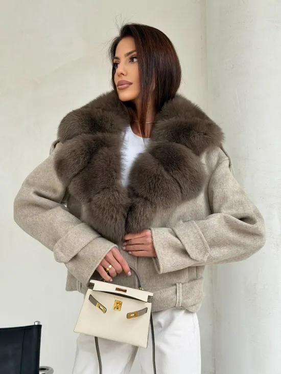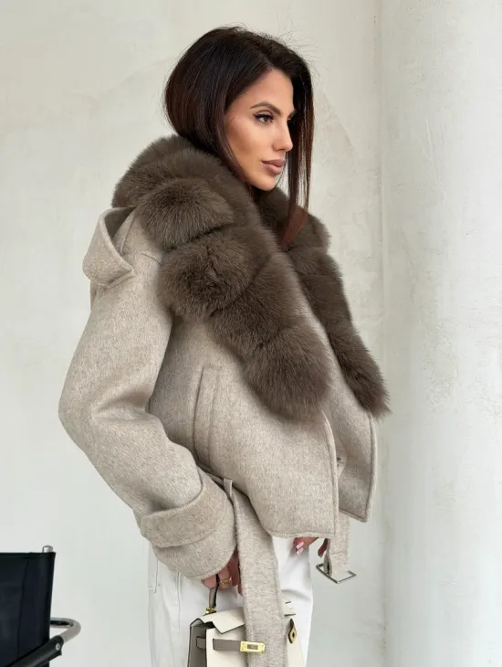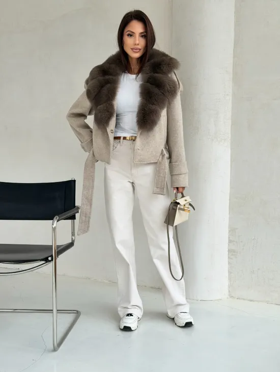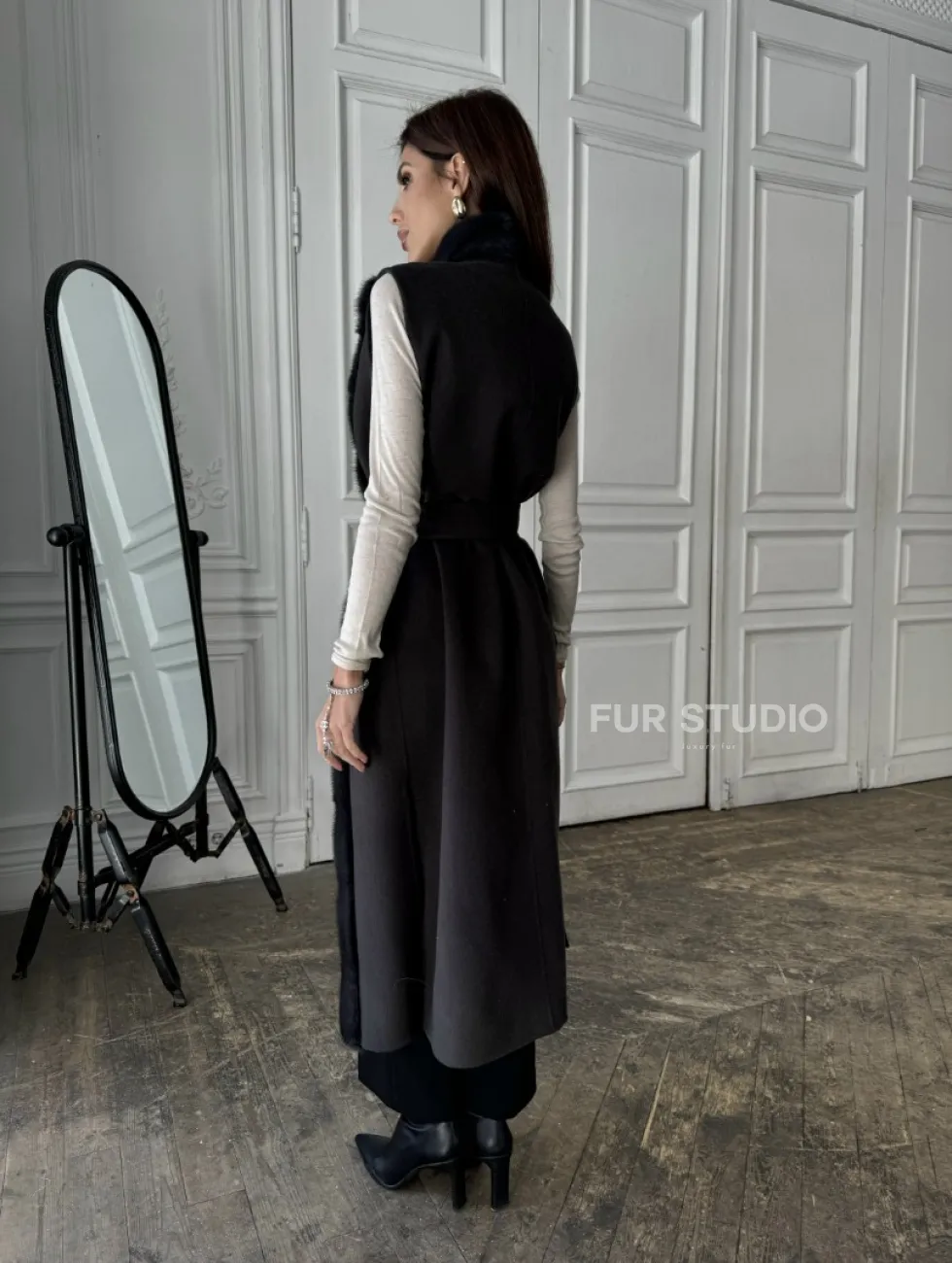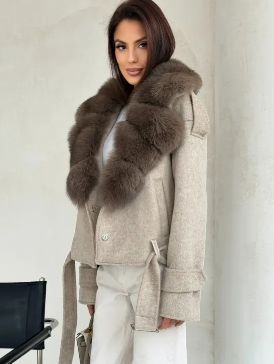 Элегантное пальто из кашемира с мехом норки 100891