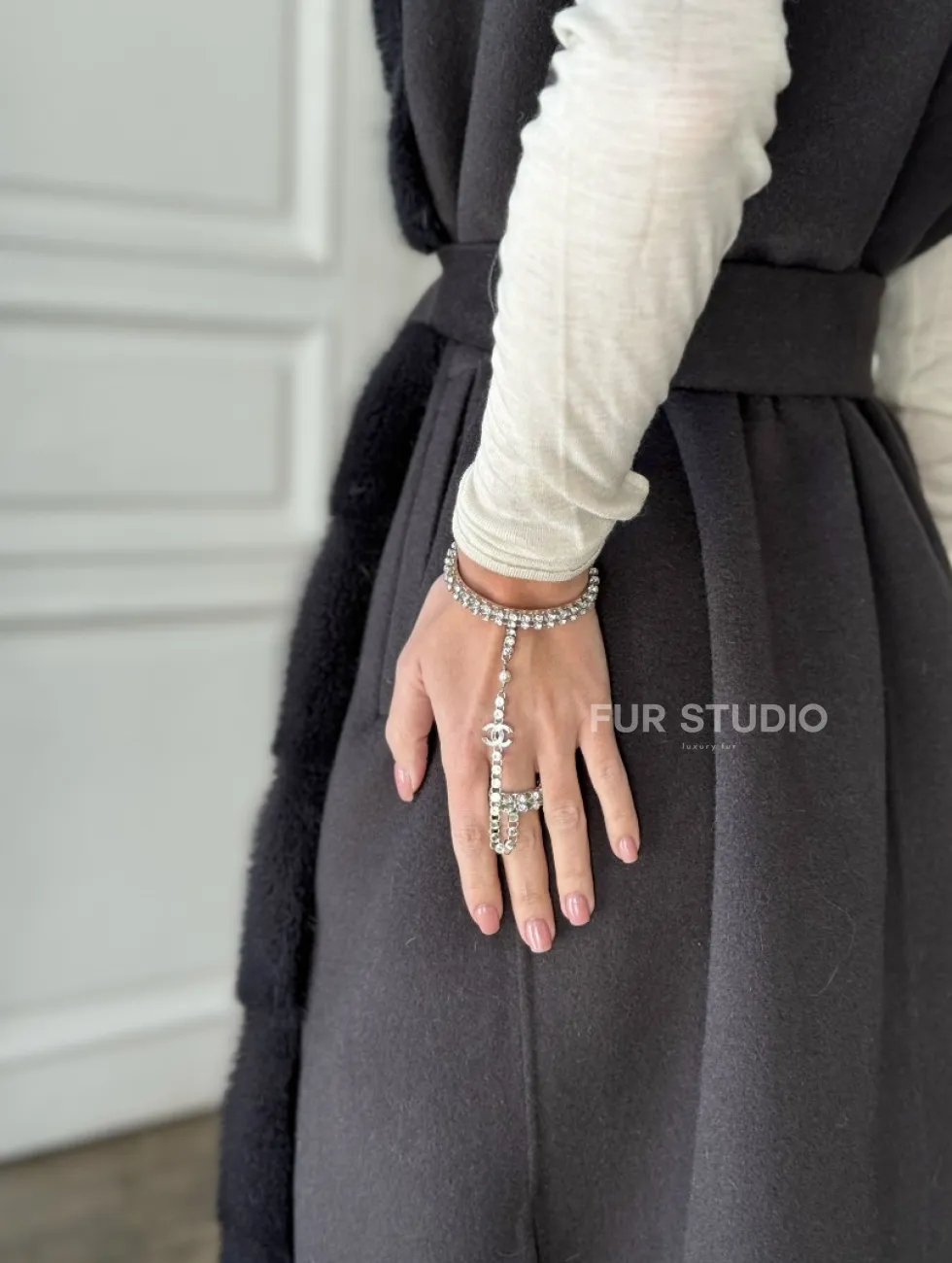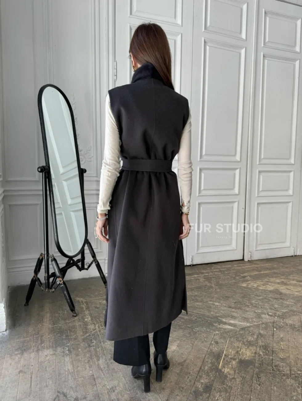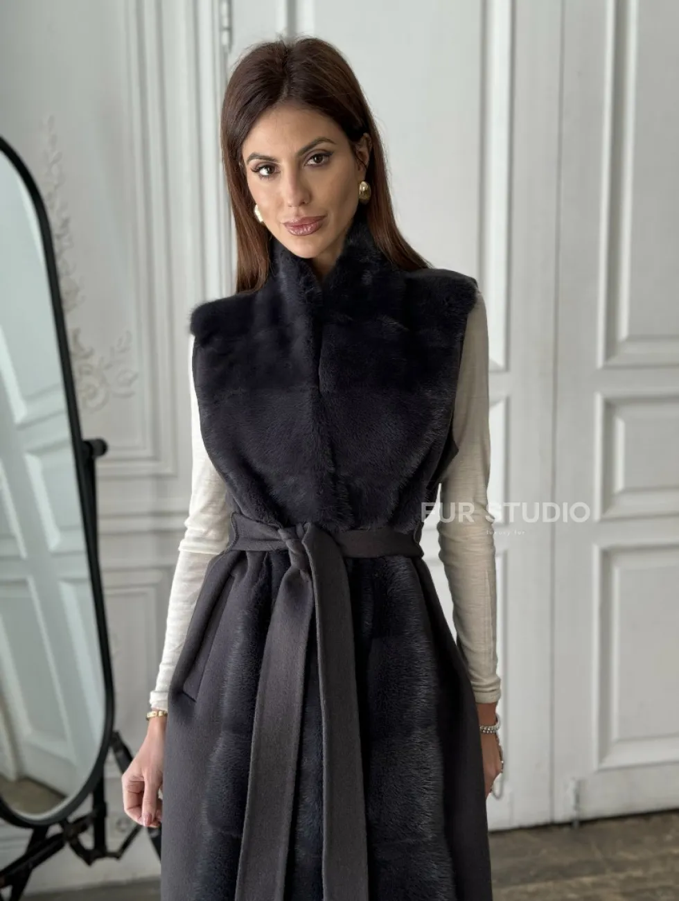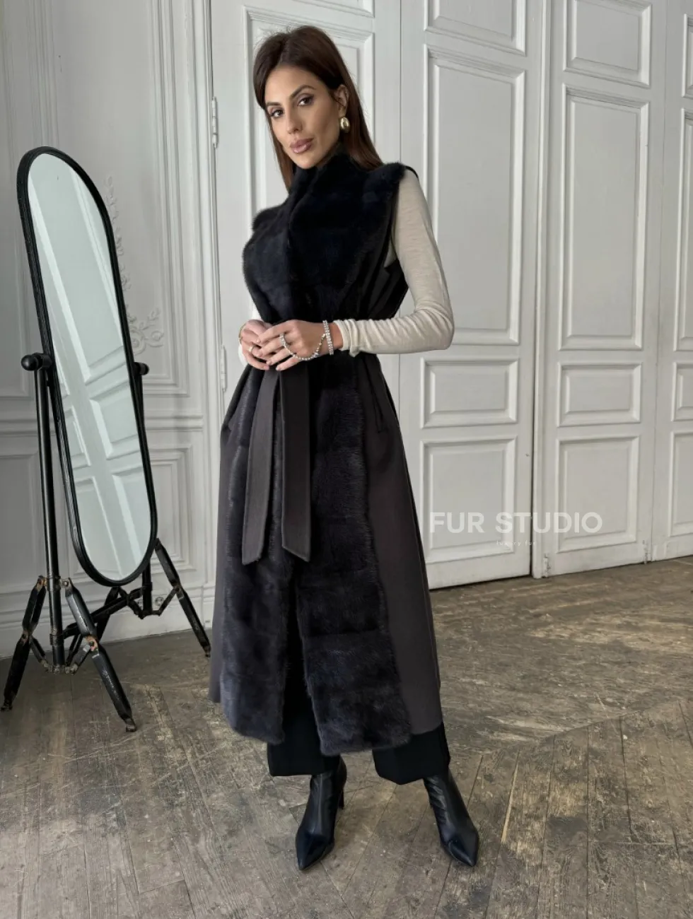 Элегантное пальто из кашемира с мехом норки 100891