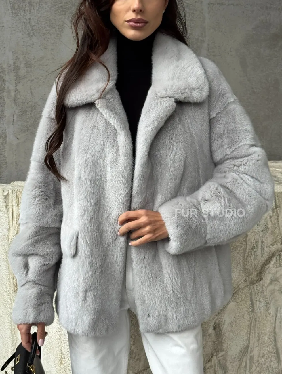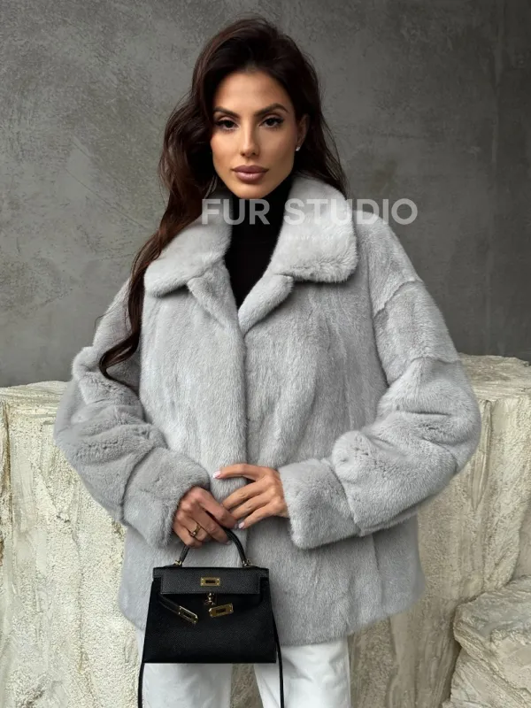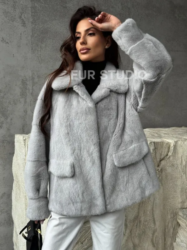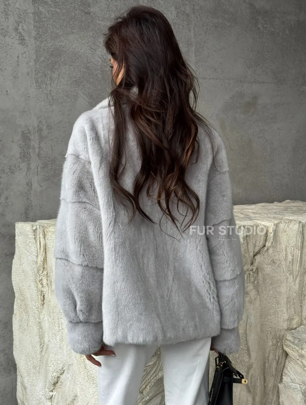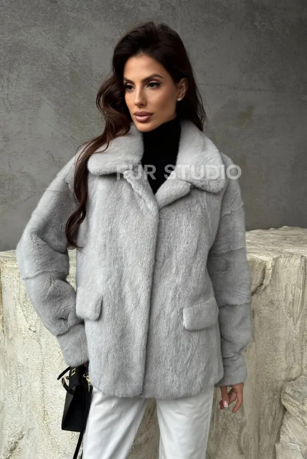 Мех данной шубы аукционная норка, цвет голубой. Предлагается в размерах от 42 до 50. Длина модели 65-70 см , что выгодно подчеркивает фигуру девушек. Эта модель идеально подойдет для девушек и женщин, предпочитающих роскошные натуральные меха.