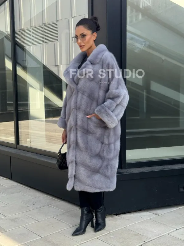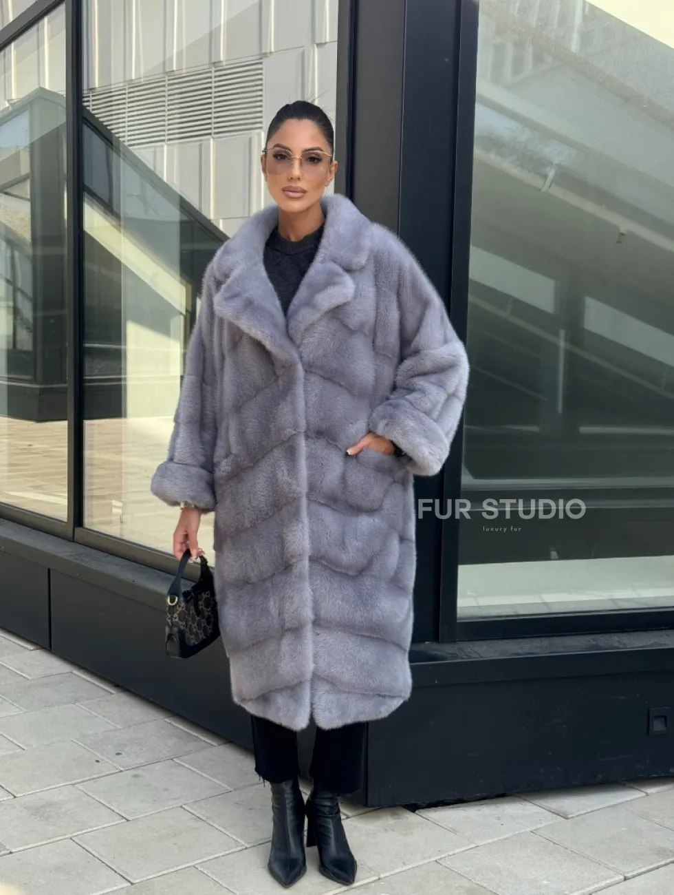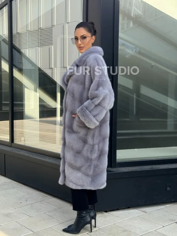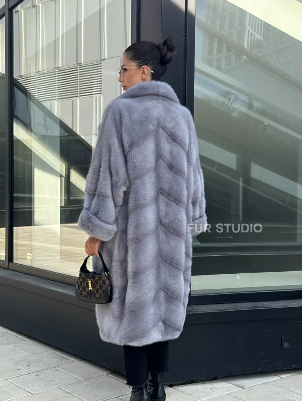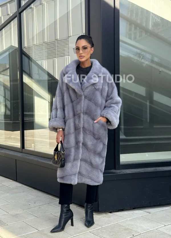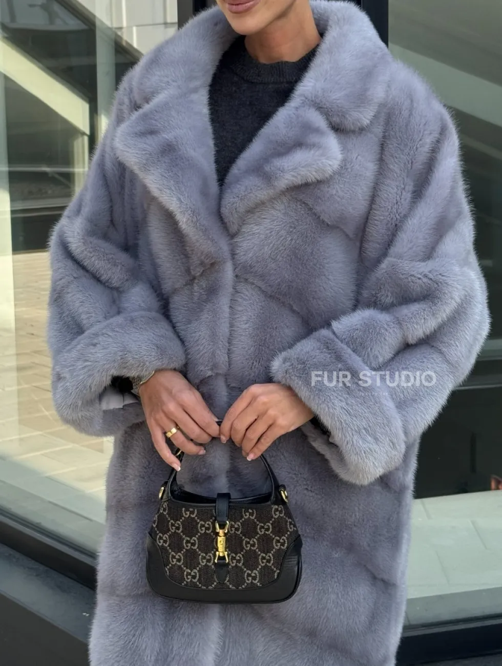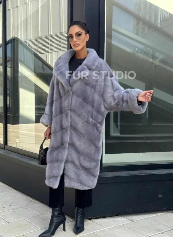 Голубая норковая шуба английский воротник, фасон кокон доступна для покупки в нашем шоуруме Furs Studio в Москве. У нас так же есть доставка во все города России. Добавьте немного роскоши в свой гардероб с этой шубой, которая будет служить вам многие годы.