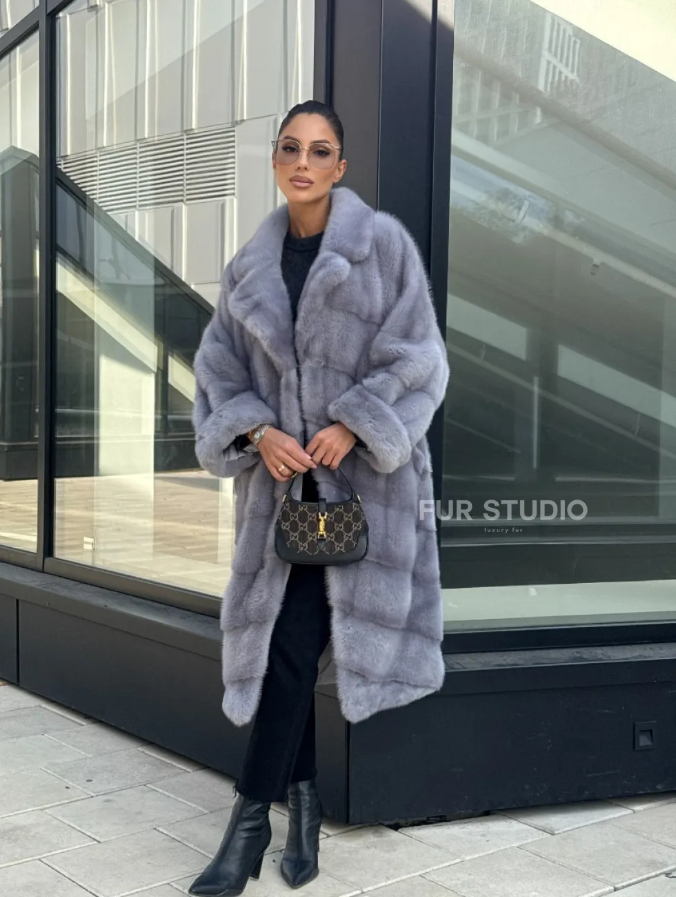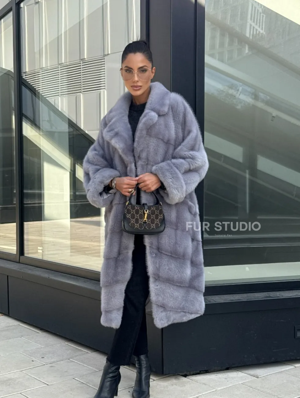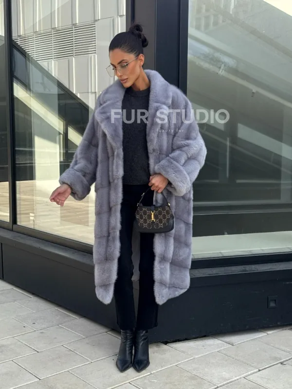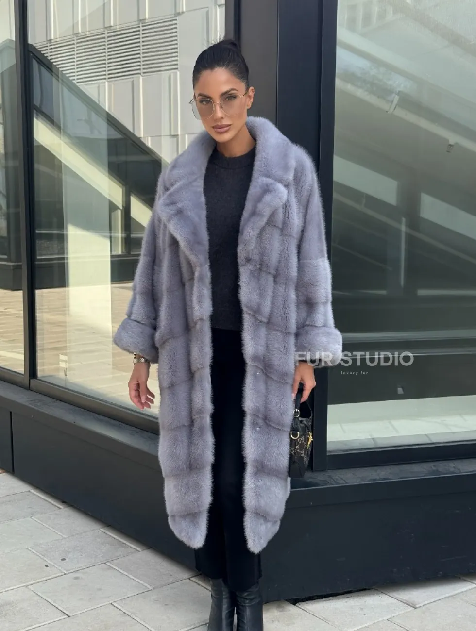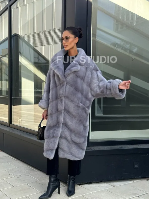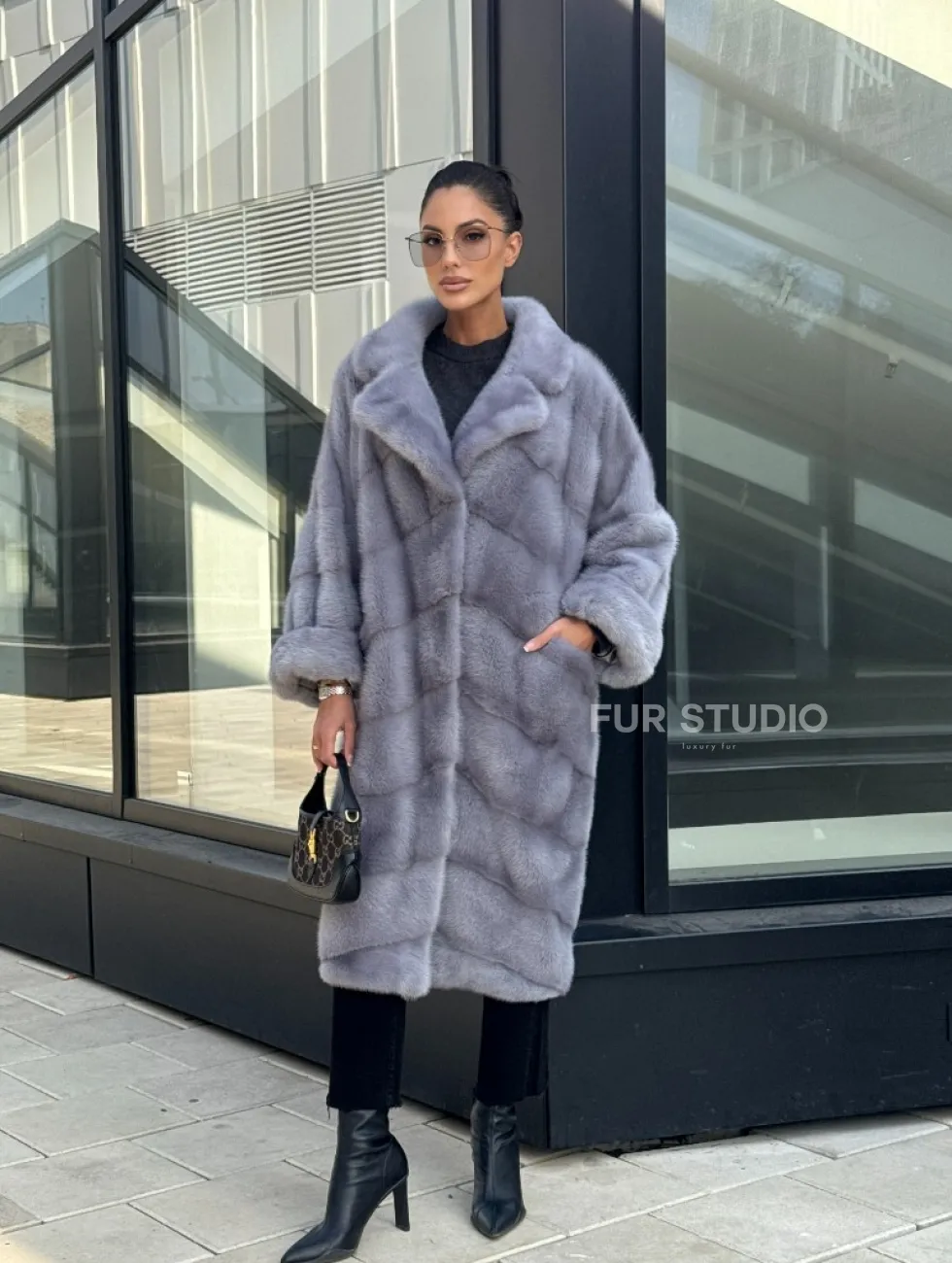Голубая норковая шуба английский воротник, фасон кокон доступна для покупки в нашем шоуруме Furs Studio в Москве. У нас так же есть доставка во все города России. Добавьте немного роскоши в свой гардероб с этой шубой, которая будет служить вам многие годы.