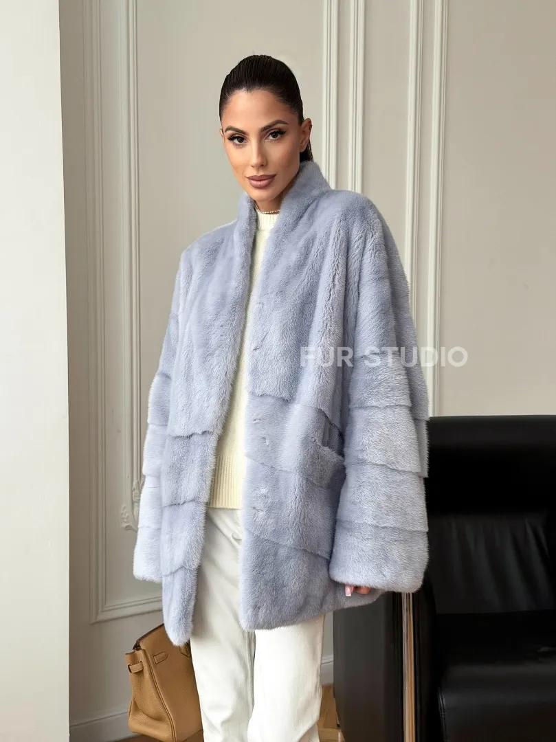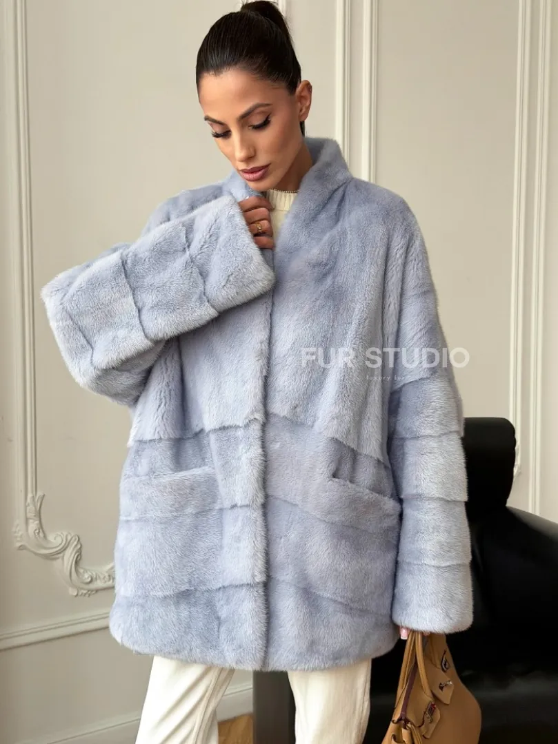 Голубая норковая шуба - жакет доступна для покупки в нашем шоуруме Furs Studio в Москве. У нас так же есть доставка во все города России. Добавьте немного роскоши в свой гардероб с этой шубой, которая будет служить вам многие годы.