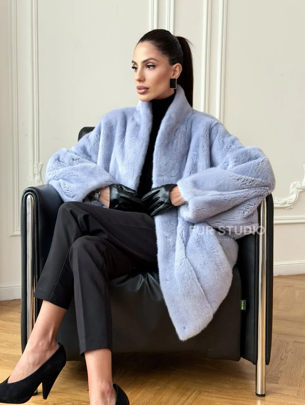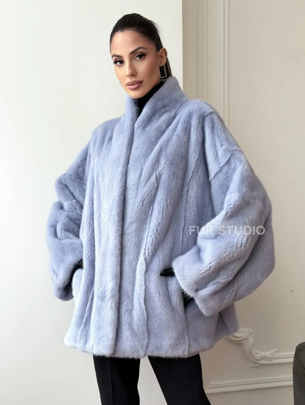 Голубой норковый полушубок - летучая мышь доступна для покупки в нашем шоуруме Furs Studio в Москве. У нас так же есть доставка во все города России. Добавьте немного роскоши в свой гардероб с этой шубой, которая будет служить вам многие годы.