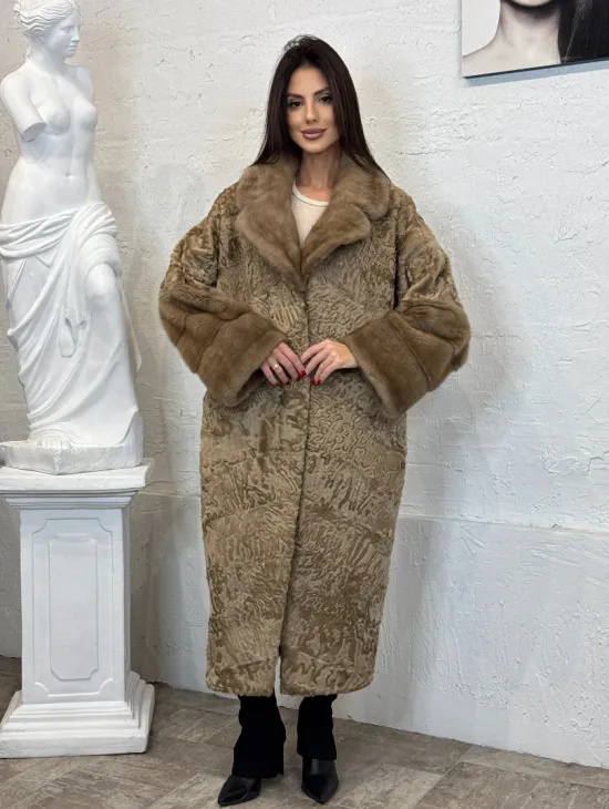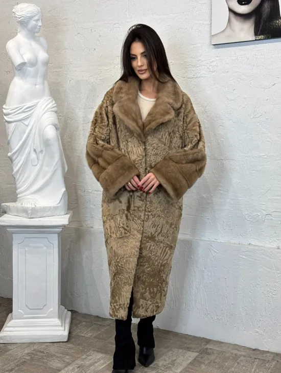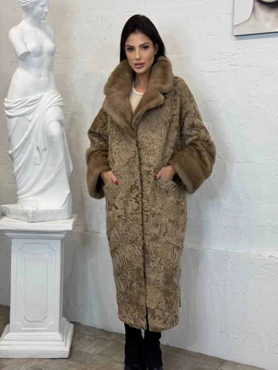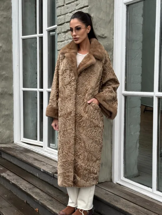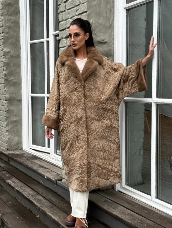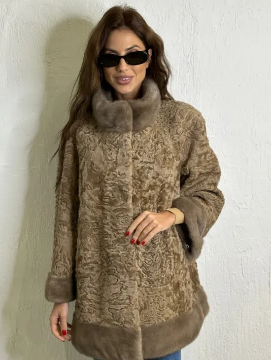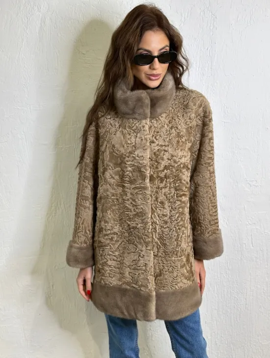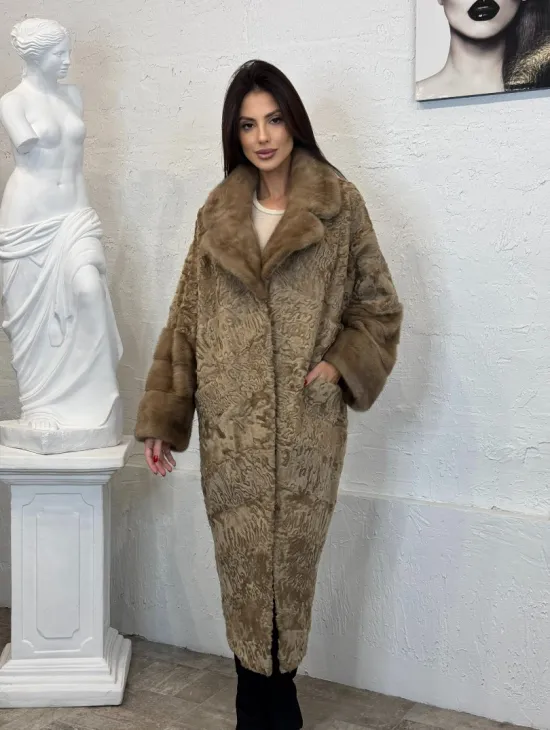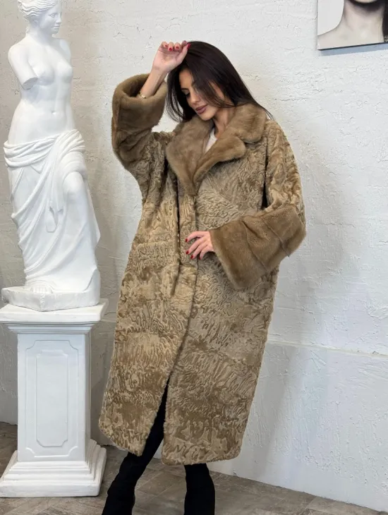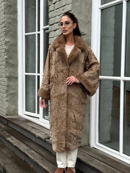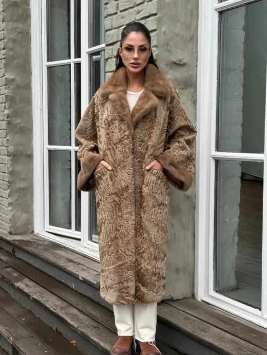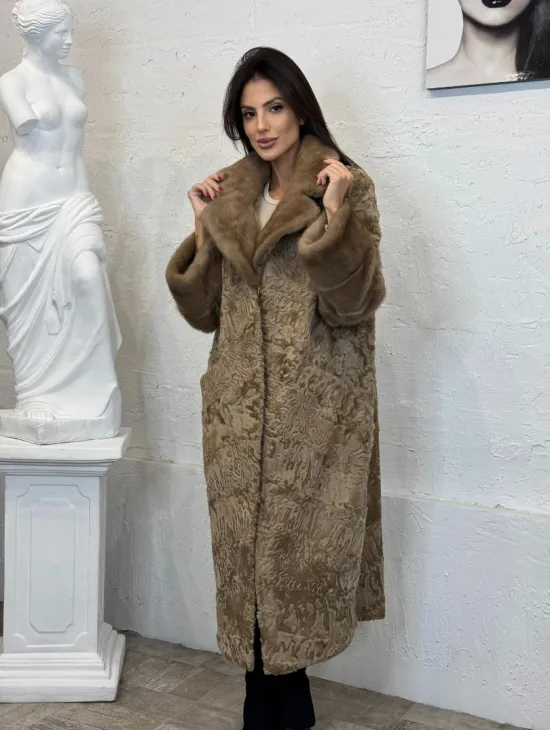 Мех данной шубы каракульча , цвет бежевый. Предлагается в размерах от 44 до 46 с 48. Длина модели 70-75 см, что выгодно подчеркивает фигуру девушек. Эта модель идеально подойдет для девушек и женщин, предпочитающих роскошные натуральные меха.