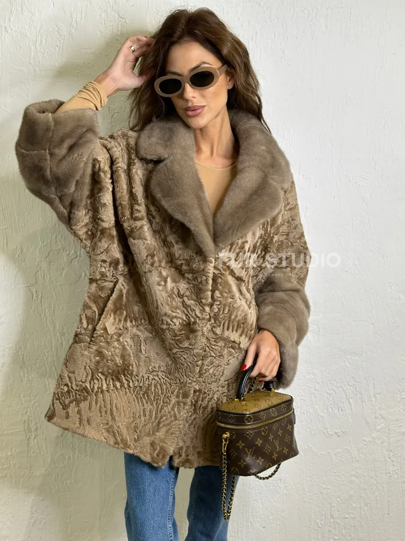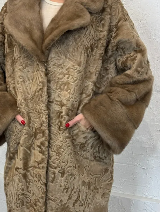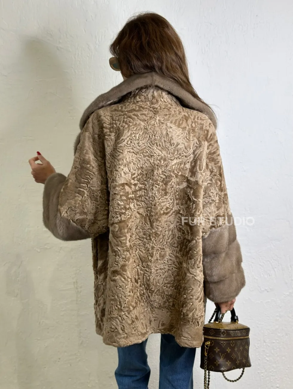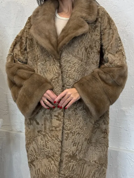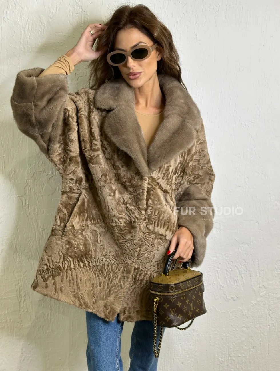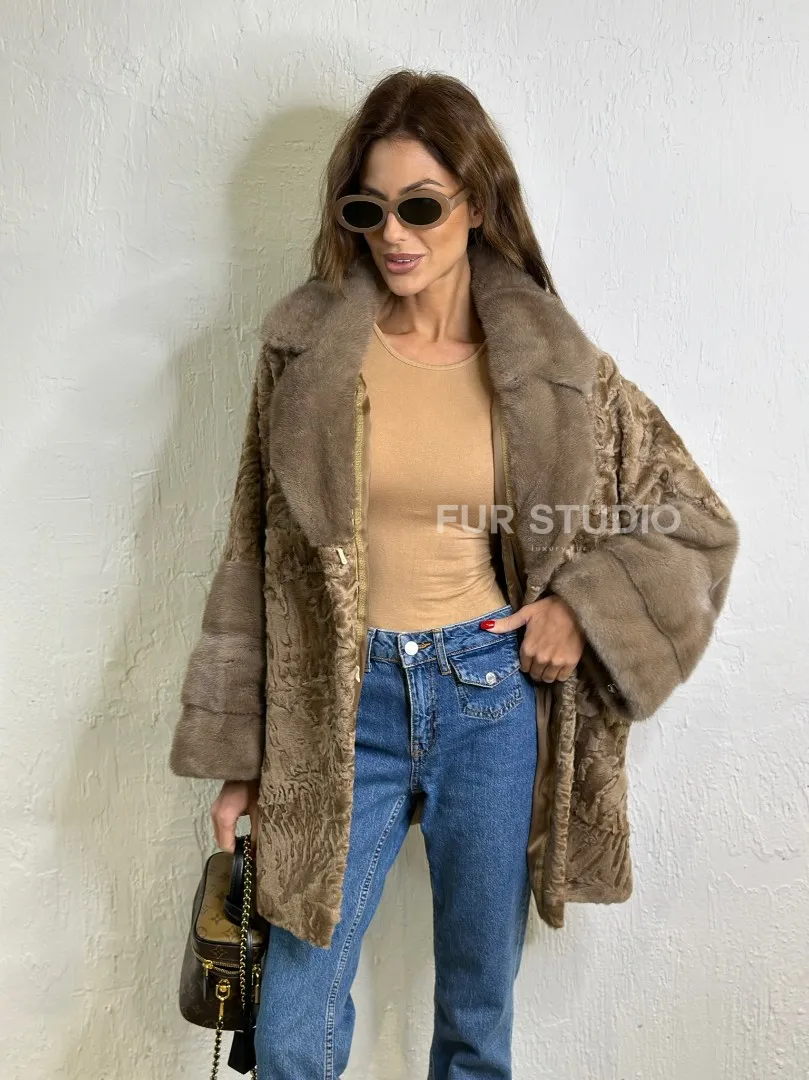 Мех данной шубы каракульча , цвет бежевый. Предлагается в размерах от 44 до 46 с 48. Длина модели 70-75 см, что выгодно подчеркивает фигуру девушек. Эта модель идеально подойдет для девушек и женщин, предпочитающих роскошные натуральные меха.