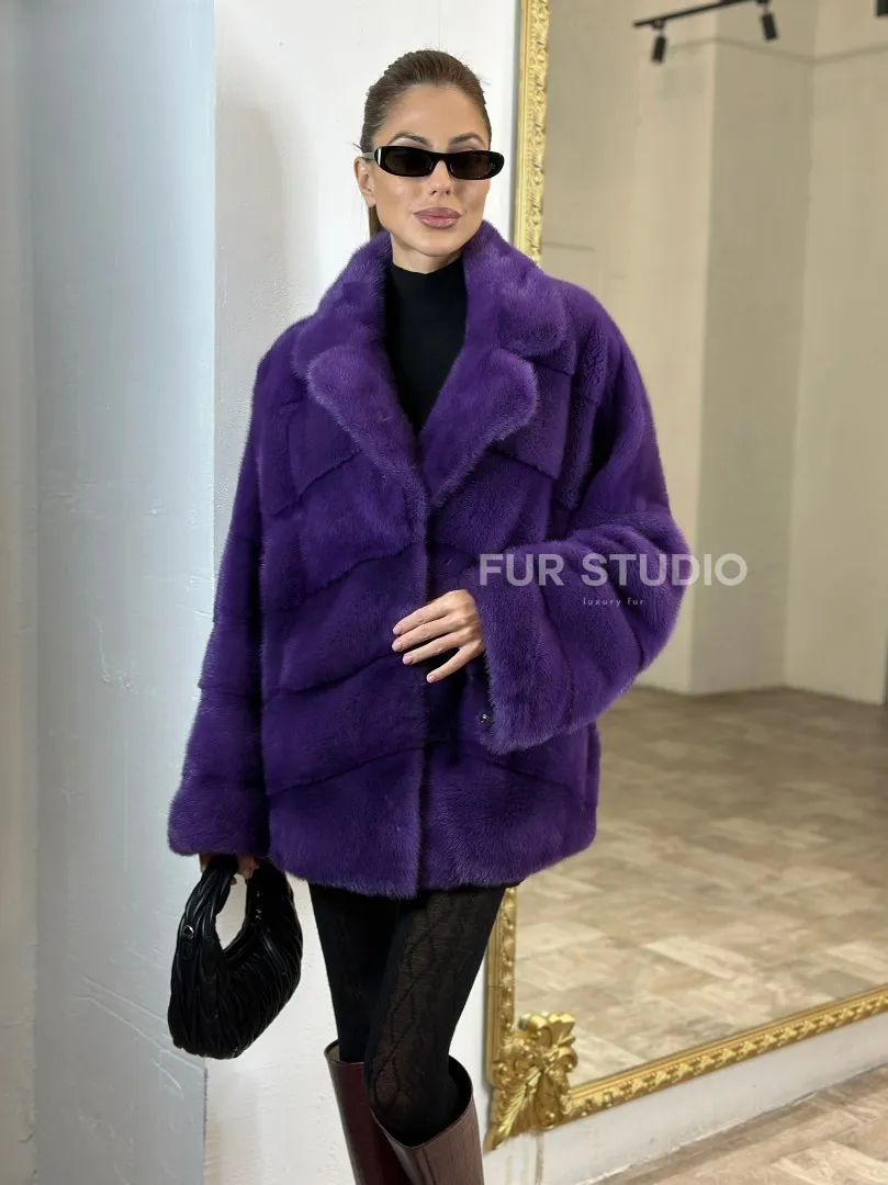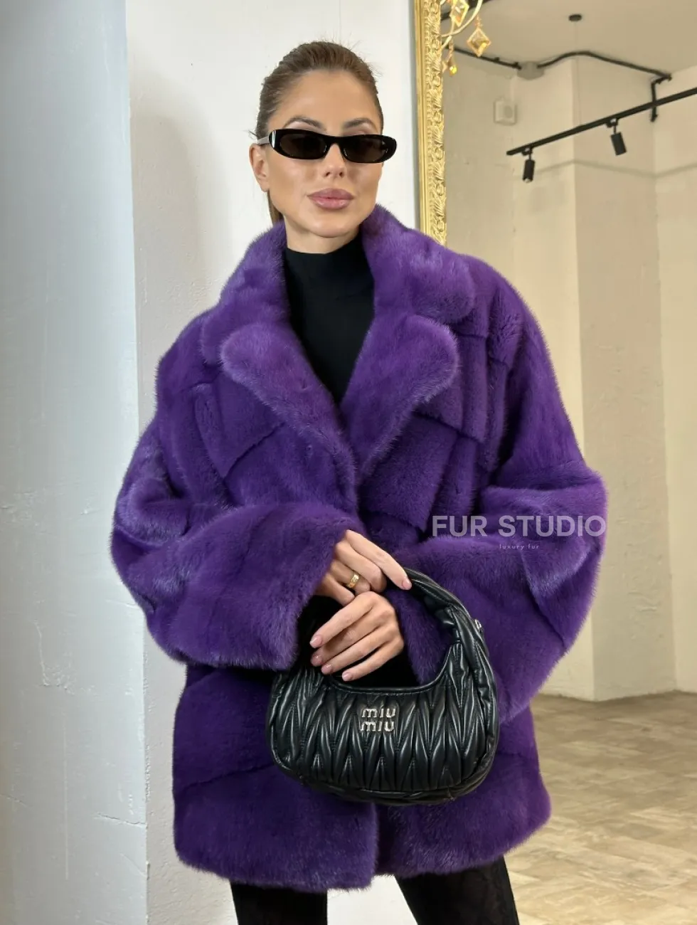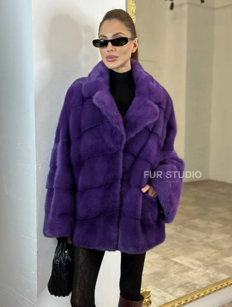Мех данной шубы аукционная норка, цвет фиолетовый. Предлагается в размерах от 40 до 50. Длина модели 70-75 см, что выгодно подчеркивает фигуру девушек. Эта модель идеально подойдет для девушек и женщин, предпочитающих роскошные натуральные меха.