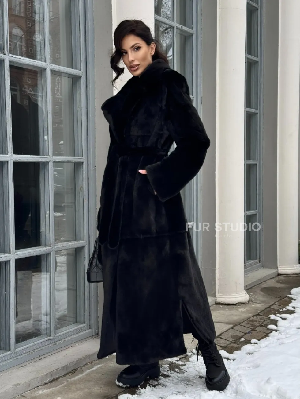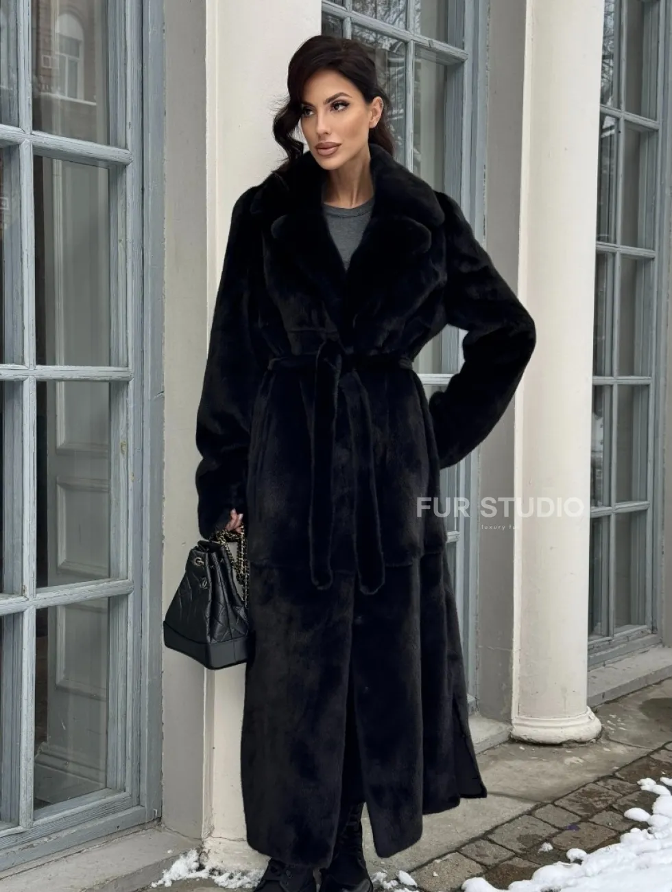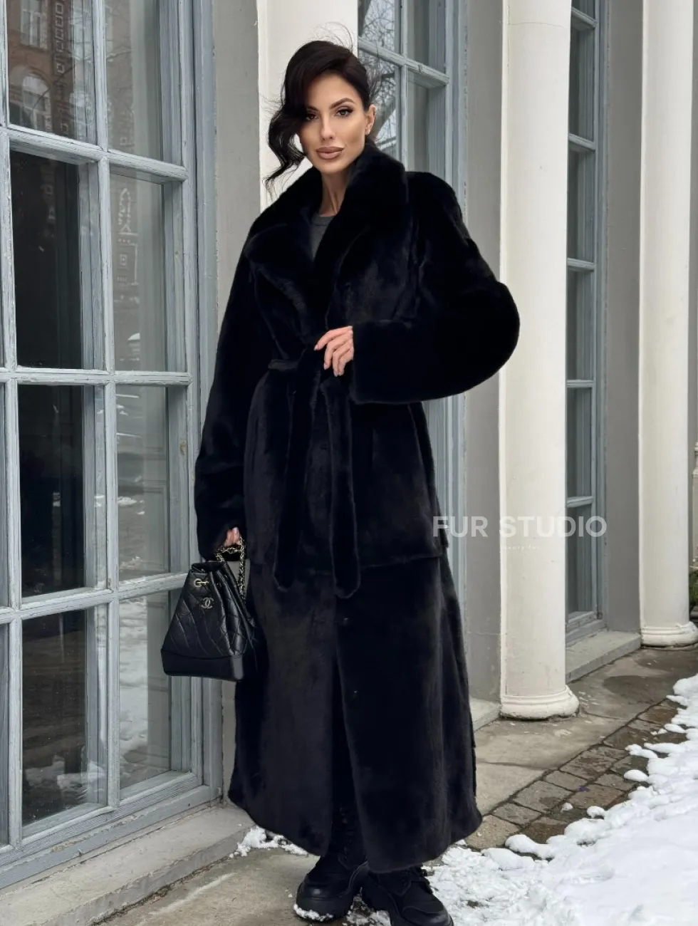Мех данной шубы норка Blackglama , цвет черный. Предлагается в размерах от 40 до 52. Длина модели 125-130 см, что выгодно подчеркивает фигуру девушек. Эта модель идеально подойдет для девушек и женщин, предпочитающих роскошные натуральные меха.