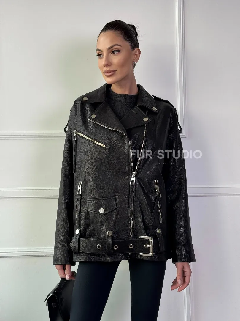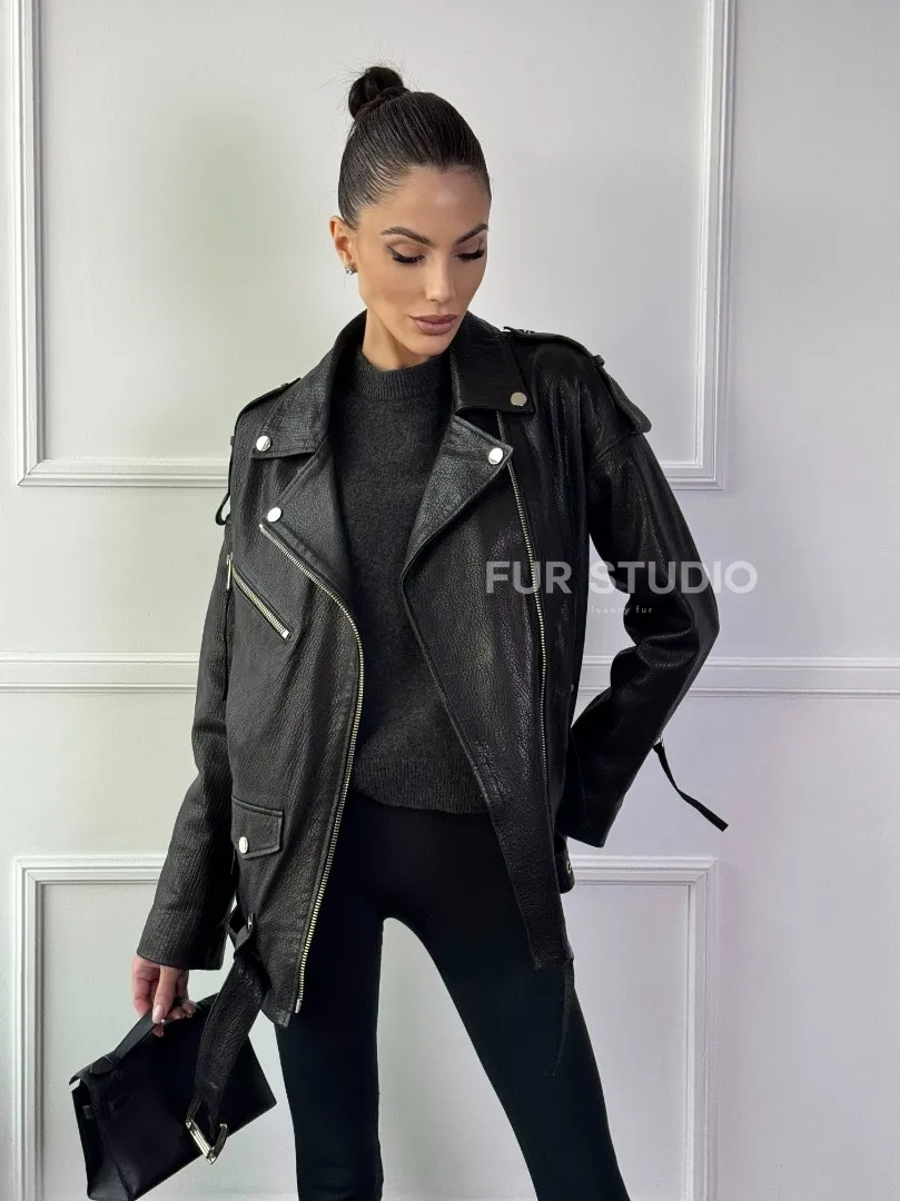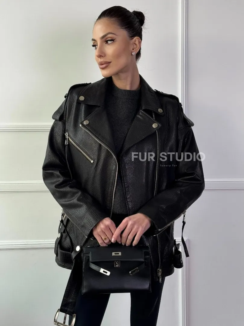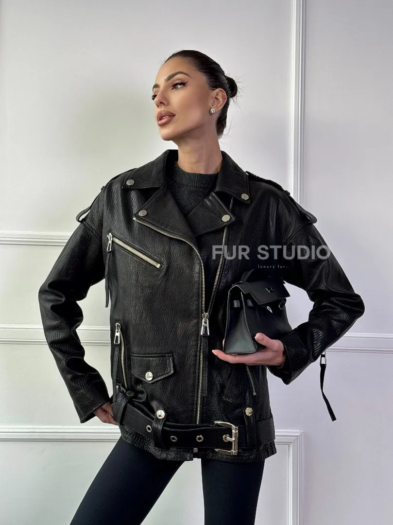 Восхититесь элегантностью и несравненным комфортом с нашей эксклюзивной коллекцией кожаных изделий. Изготовленная из первоклассной натуральной кожи, Классическая женская байкерская куртка - косуха из натуральной черной кожи Jumbo не только согреет вас в прохладные дни, но и подчеркнет ваш изысканный вкус. Уникальный дизайн и высокое качество делают наши представленные образцы идеальным выбором для утончённых образов.