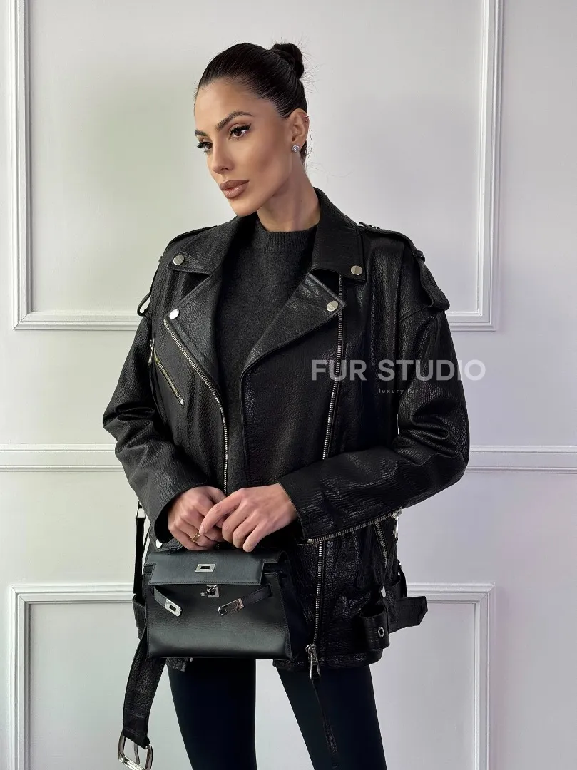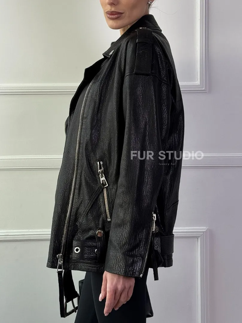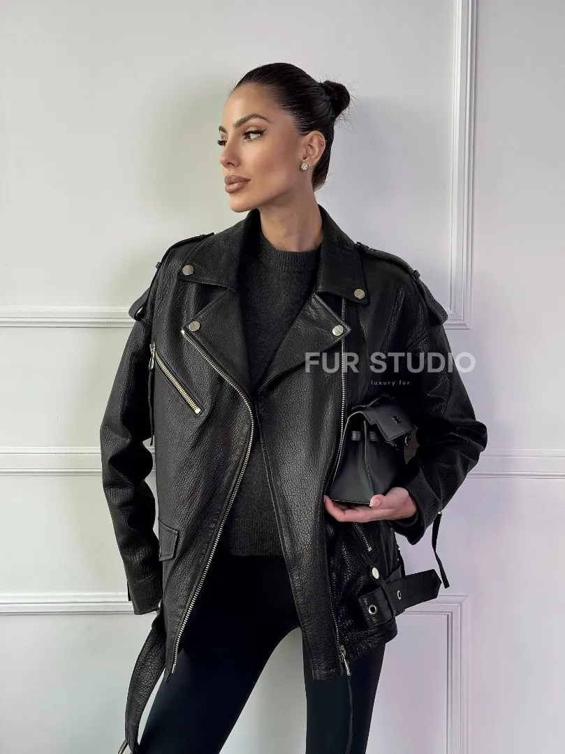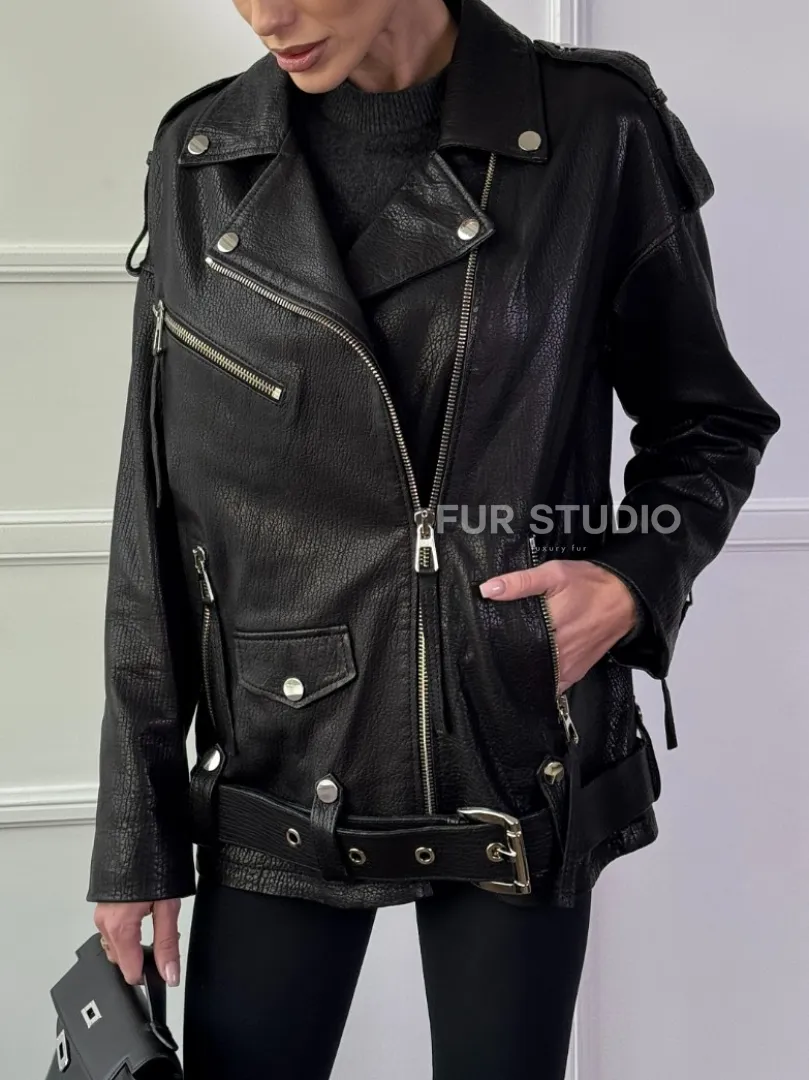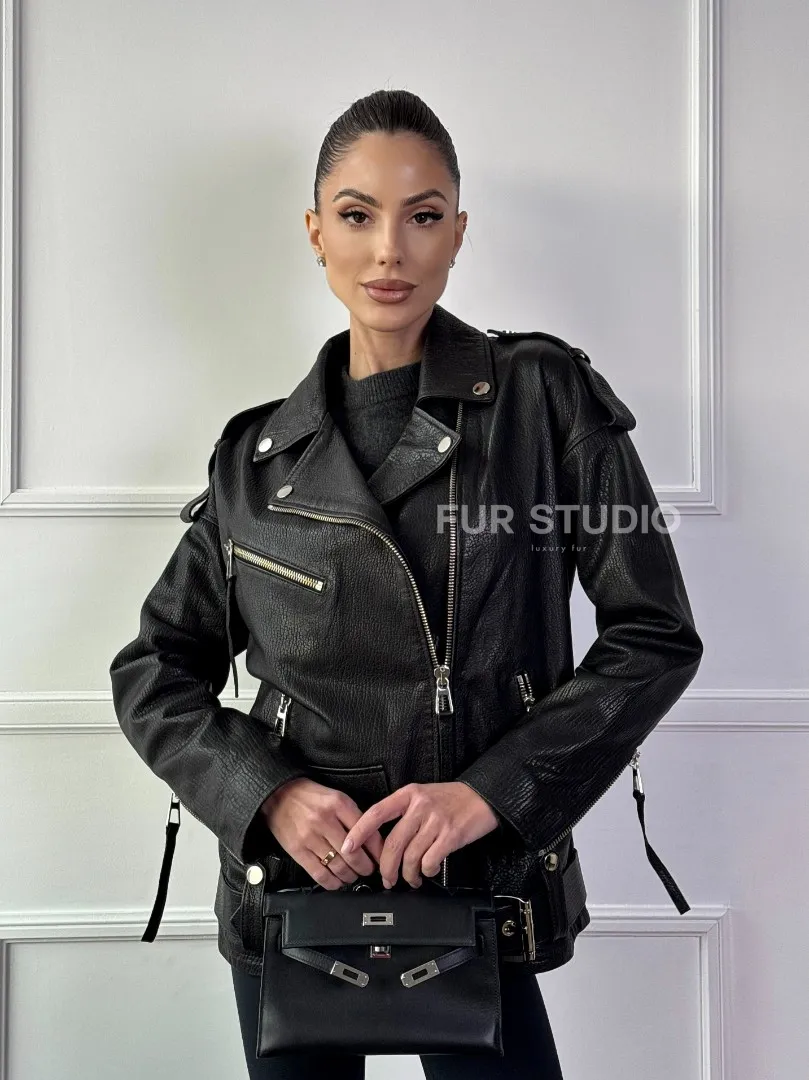 Восхититесь элегантностью и несравненным комфортом с нашей эксклюзивной коллекцией кожаных изделий. Изготовленная из первоклассной натуральной кожи, Классическая женская байкерская куртка - косуха из натуральной черной кожи Jumbo не только согреет вас в прохладные дни, но и подчеркнет ваш изысканный вкус. Уникальный дизайн и высокое качество делают наши представленные образцы идеальным выбором для утончённых образов.