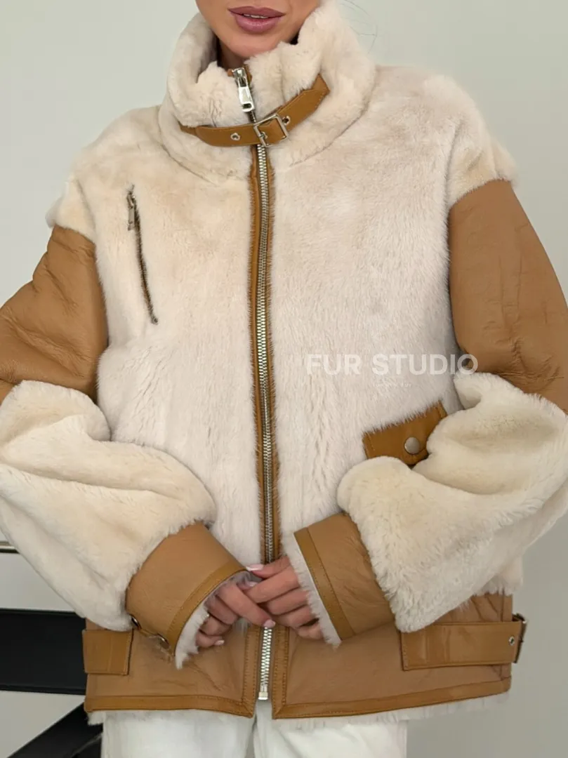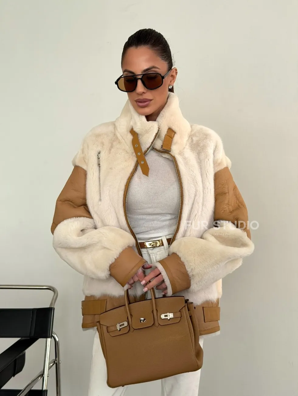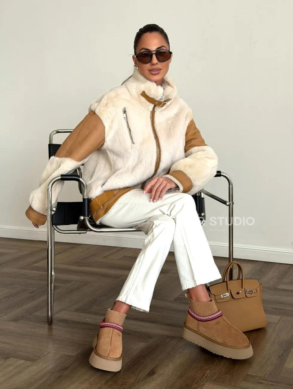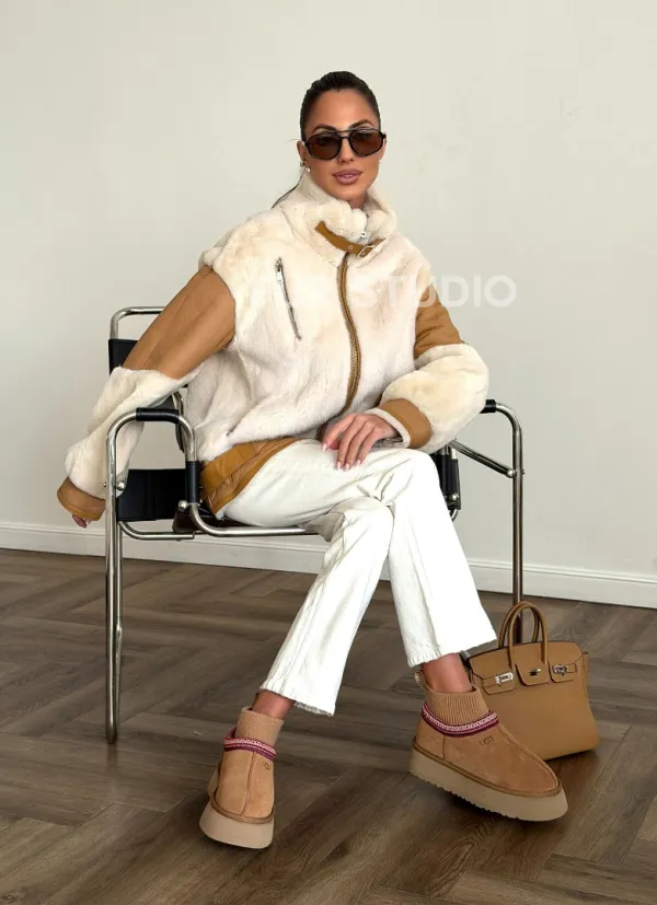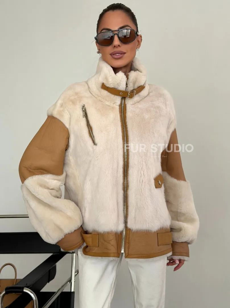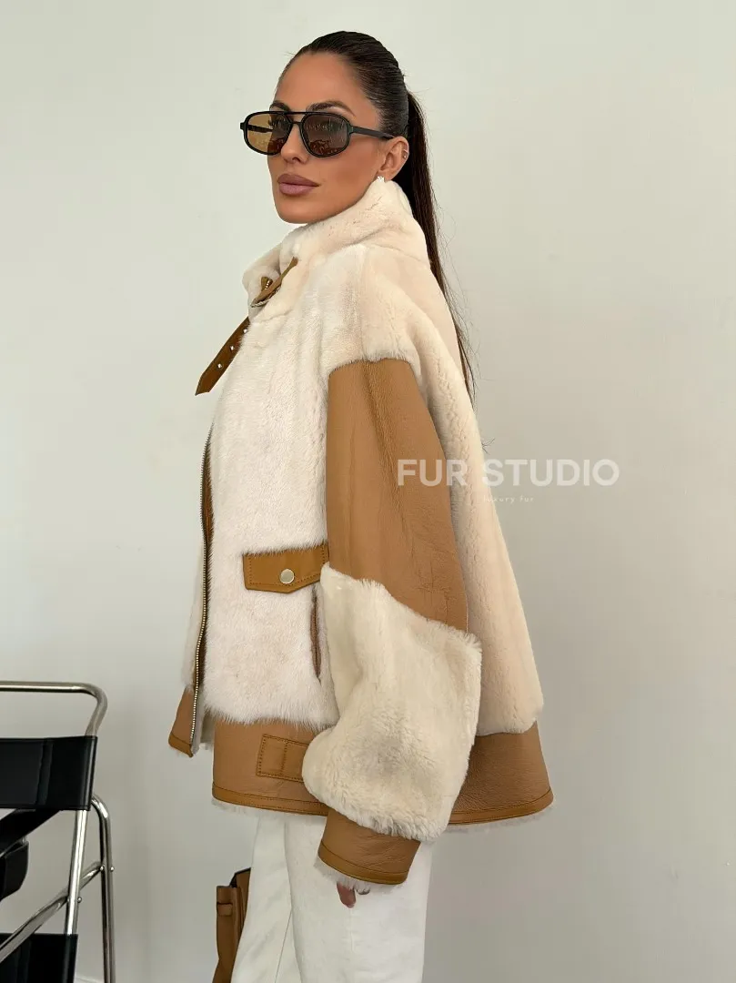 Комбинированная дубленка из норки и овчины. Модель предлагается в размерах от 42 до 48. Оптимальная длина моделей 55-60 см подчеркивает линии вашей фигуры. Эта дубленка станет неотъемлемой частью гардероба для тех, кто предпочитает роскошь и утонченность натуральной кожи.