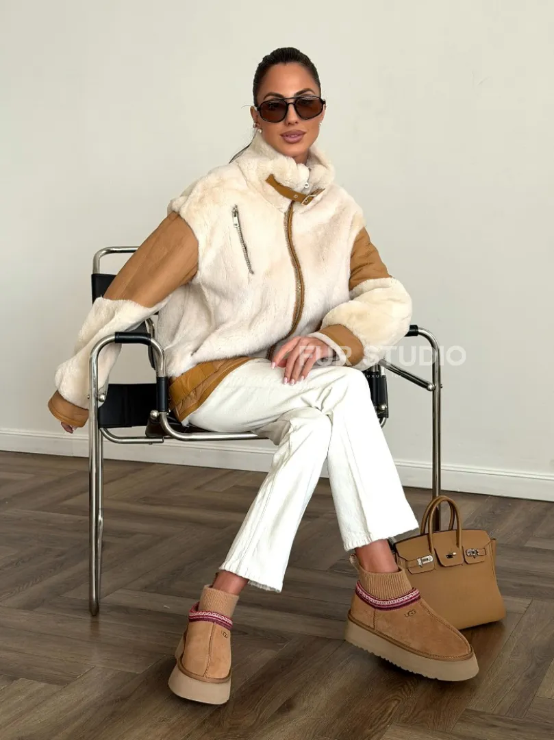Комбинированная дубленка из норки и овчины доступна для покупки в нашем шоуруме Furs Studio в Москве, а также предлагается удобная доставка во все города России. Обогатите свой гардероб этой дубленкой, которая прослужит вам многие годы, добавив немного роскоши в ваш повседневный образ.