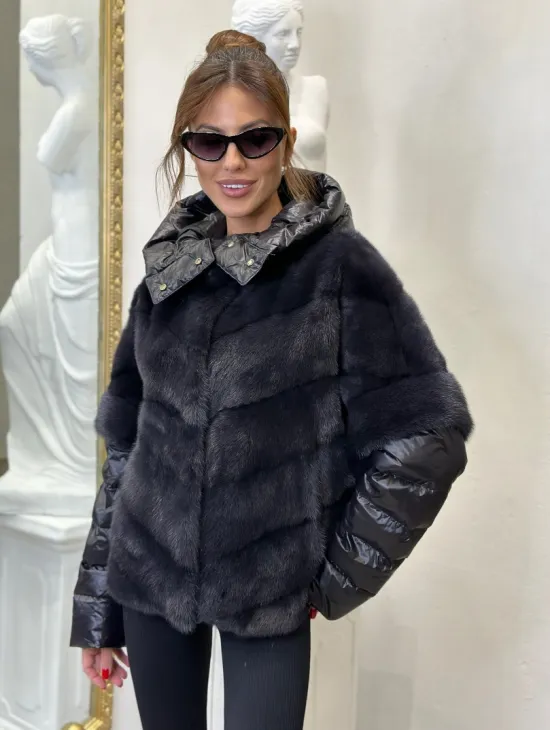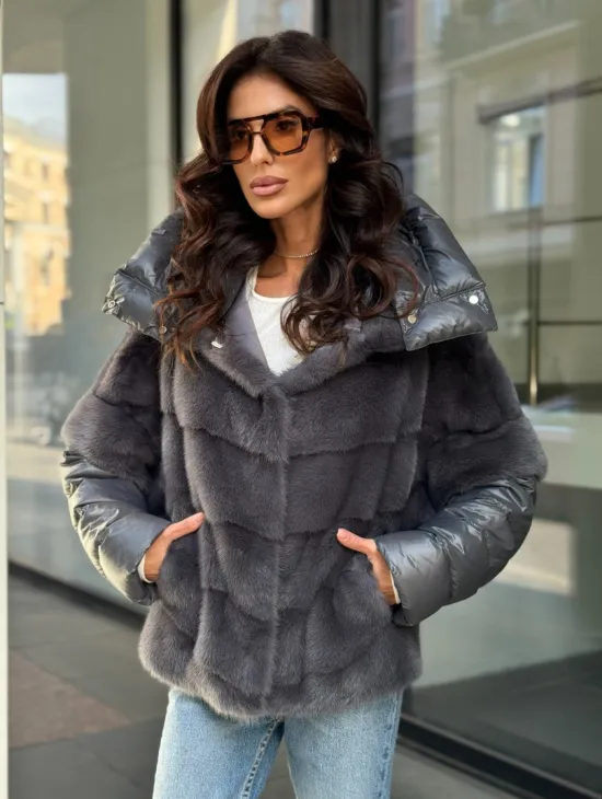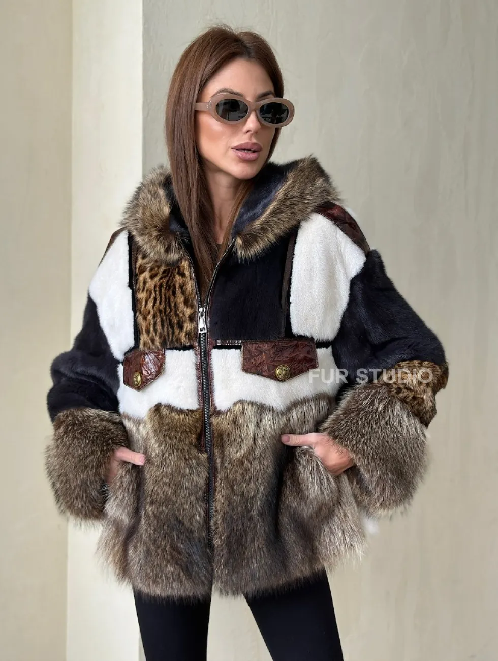 Комбинированная норковая куртка с капюшоном доступна для покупки в нашем магазине Furs Studio в Москве, с возможностью доставки в любой город России. Добавьте немного стиля и элегантности в свой гардероб с этой курткой, которая будет вам служить многие годы, подчеркивая ваш неповторимый стиль.