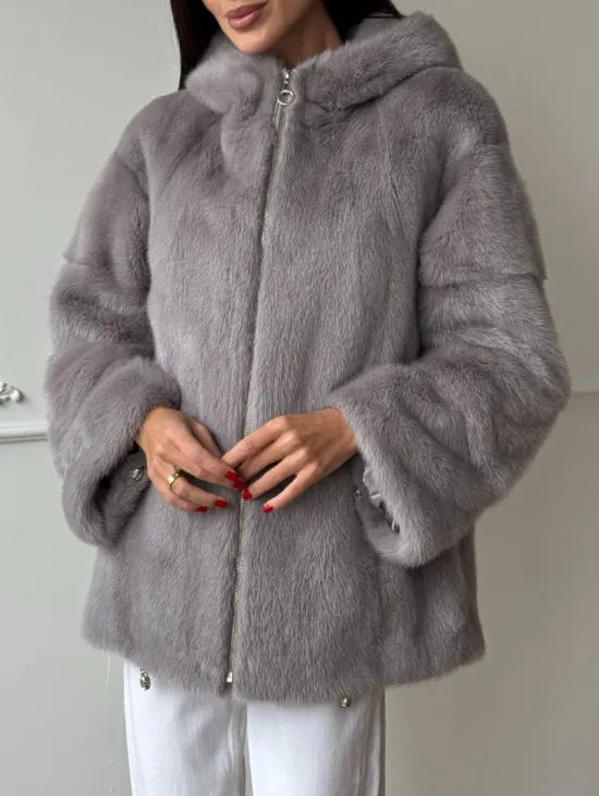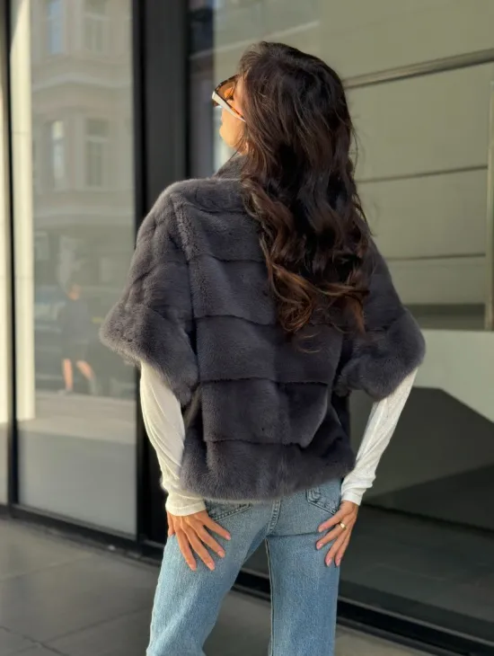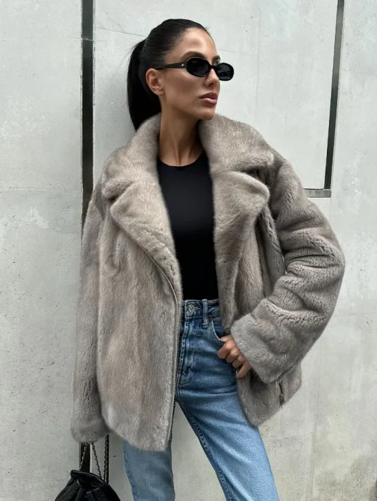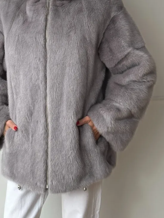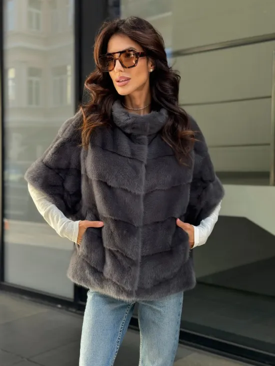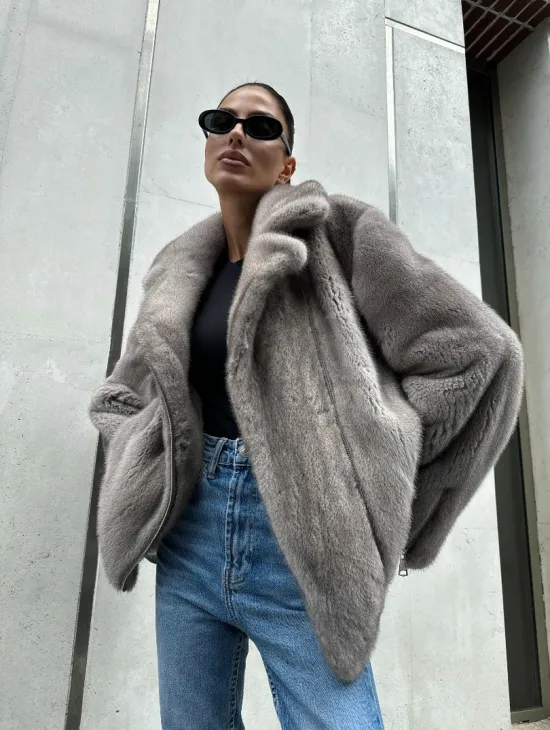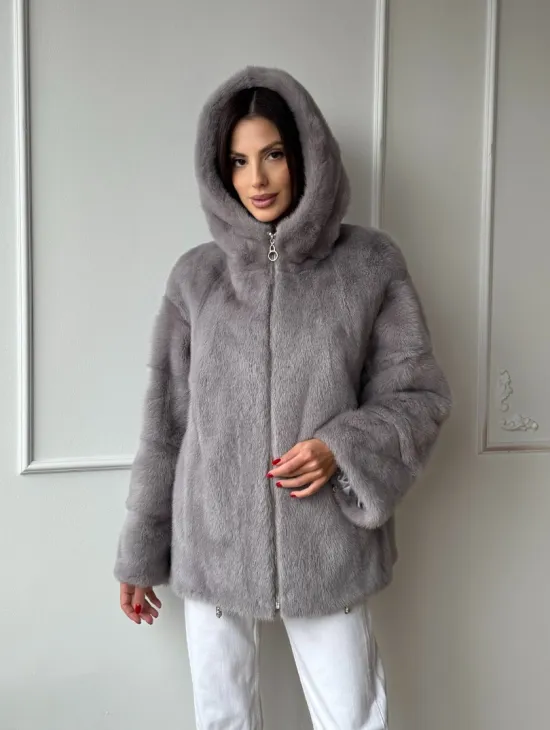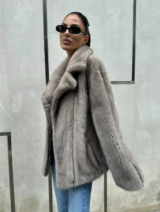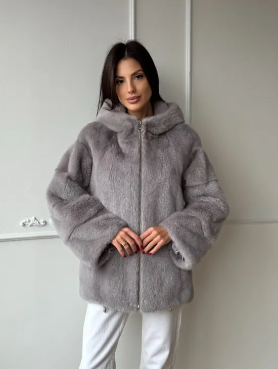 Материал выбранной модели — аукционная норка, доступна в цвете серый . Куртка предлагается в разнообразии размеров, от S до XL, а ее длина составляет 60-65 см, что выигрышно подчеркивает вашу фигуру. Этот вариант идеально подходит для тех, кто ценит роскошь и утонченность натуральных материалов.