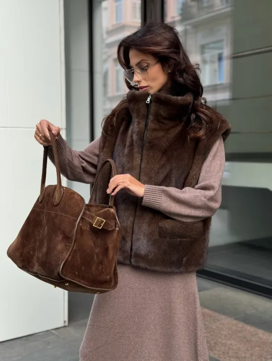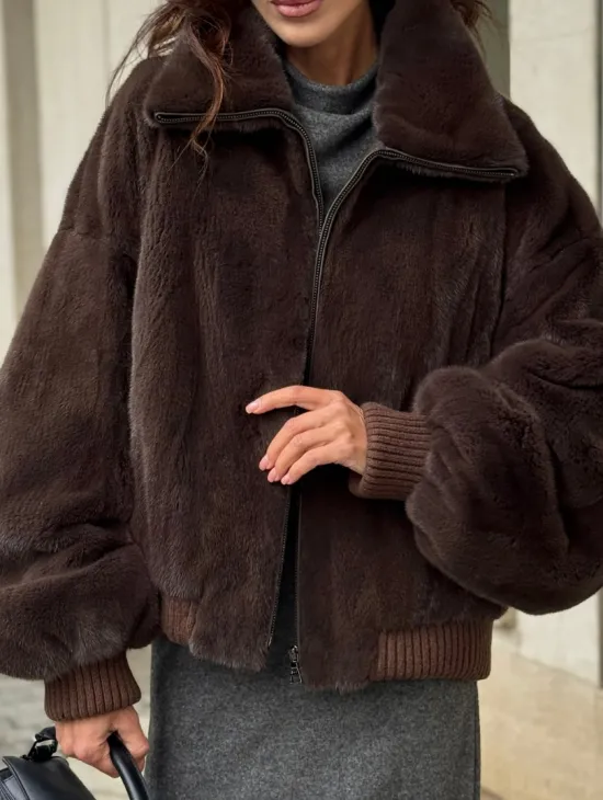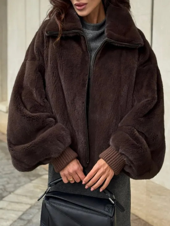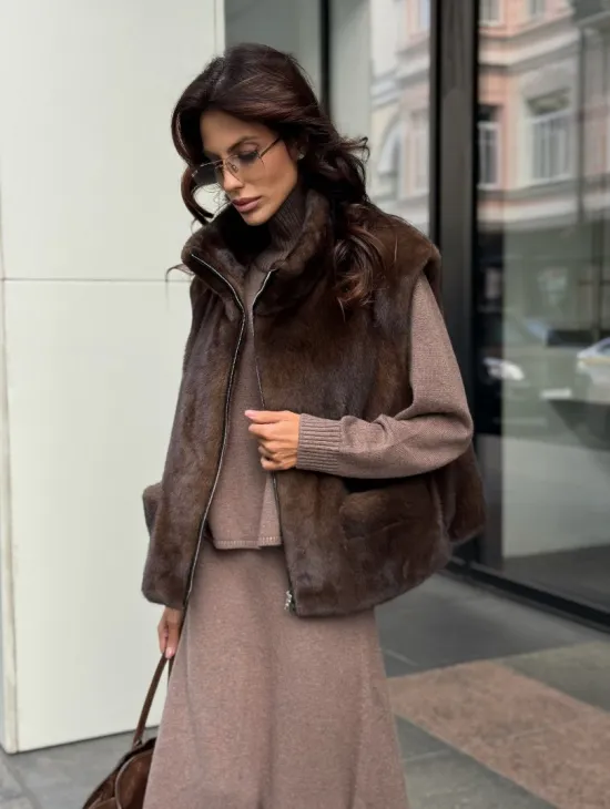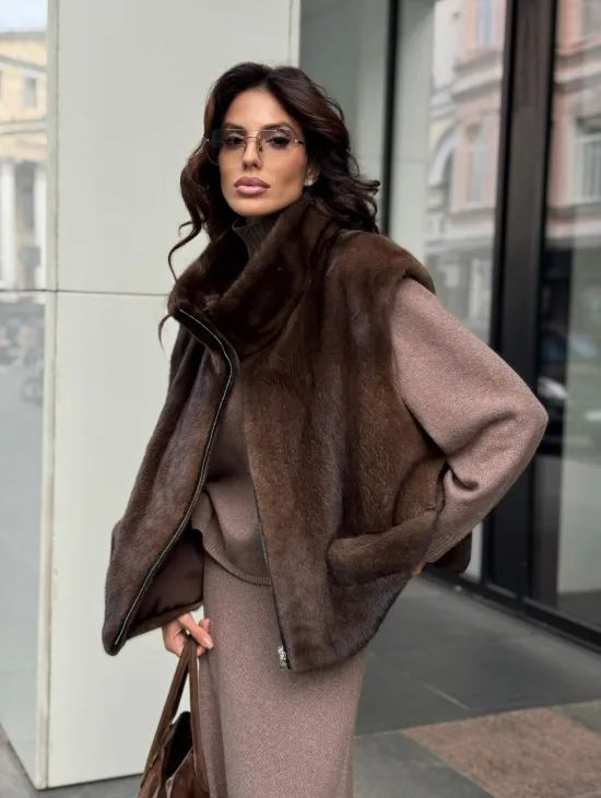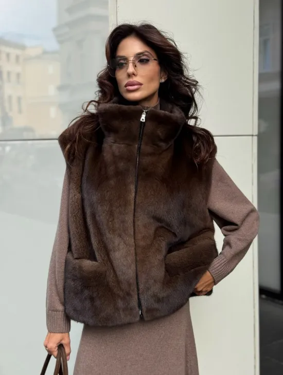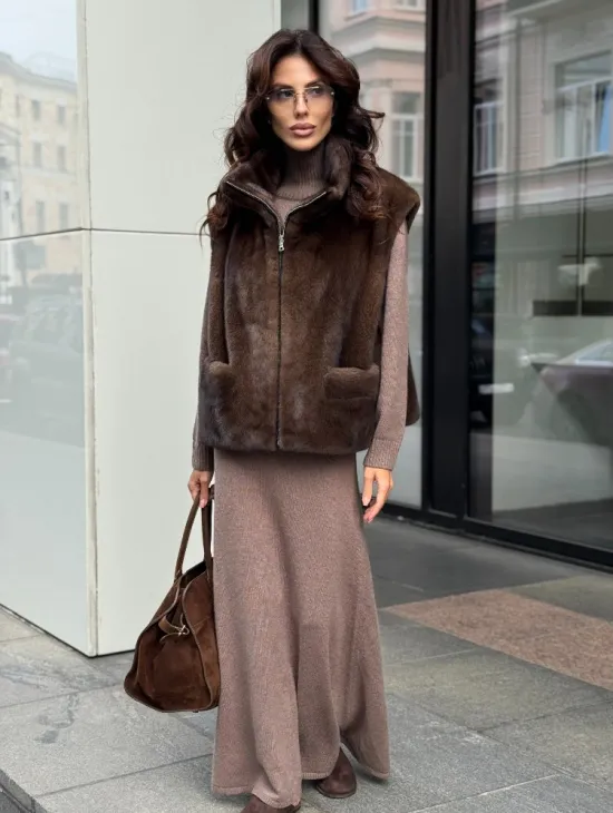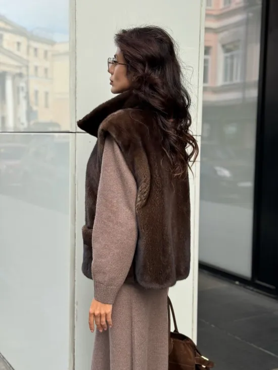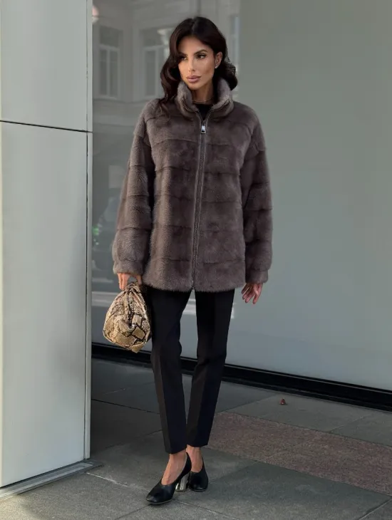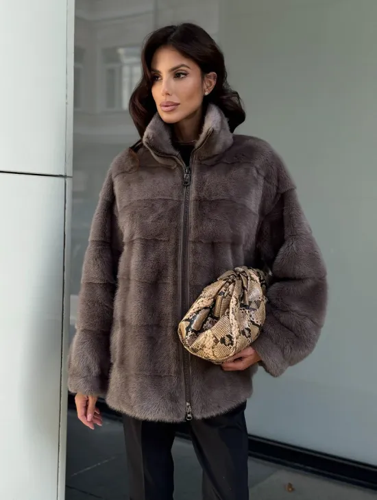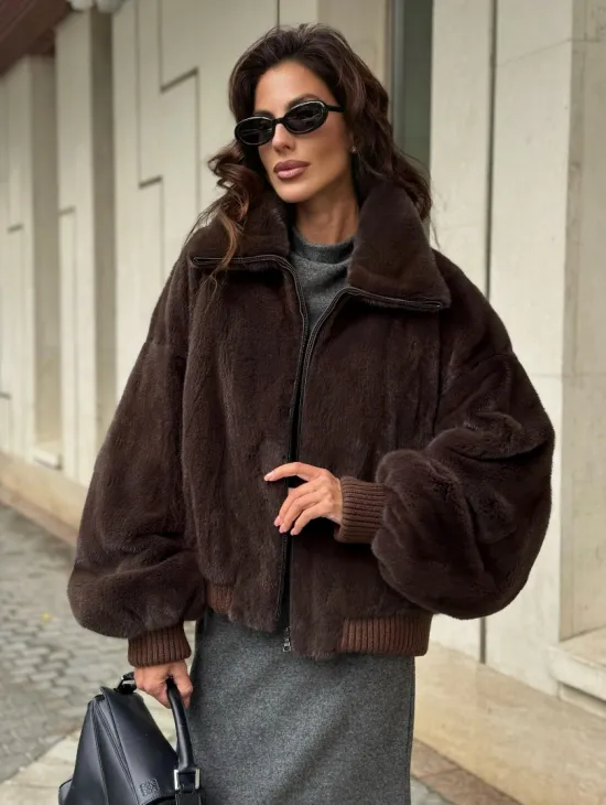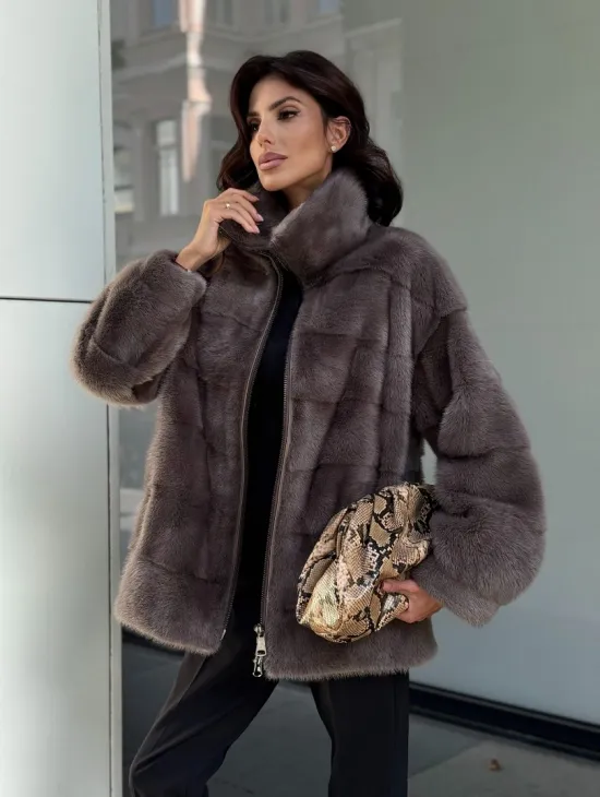 Материал выбранной модели — аукционная норка, доступна в цвете коричневый. Куртка предлагается в разнообразии размеров, от S до XL, а ее длина составляет 60-65 см, что выигрышно подчеркивает вашу фигуру. Этот вариант идеально подходит для тех, кто ценит роскошь и утонченность натуральных материалов.