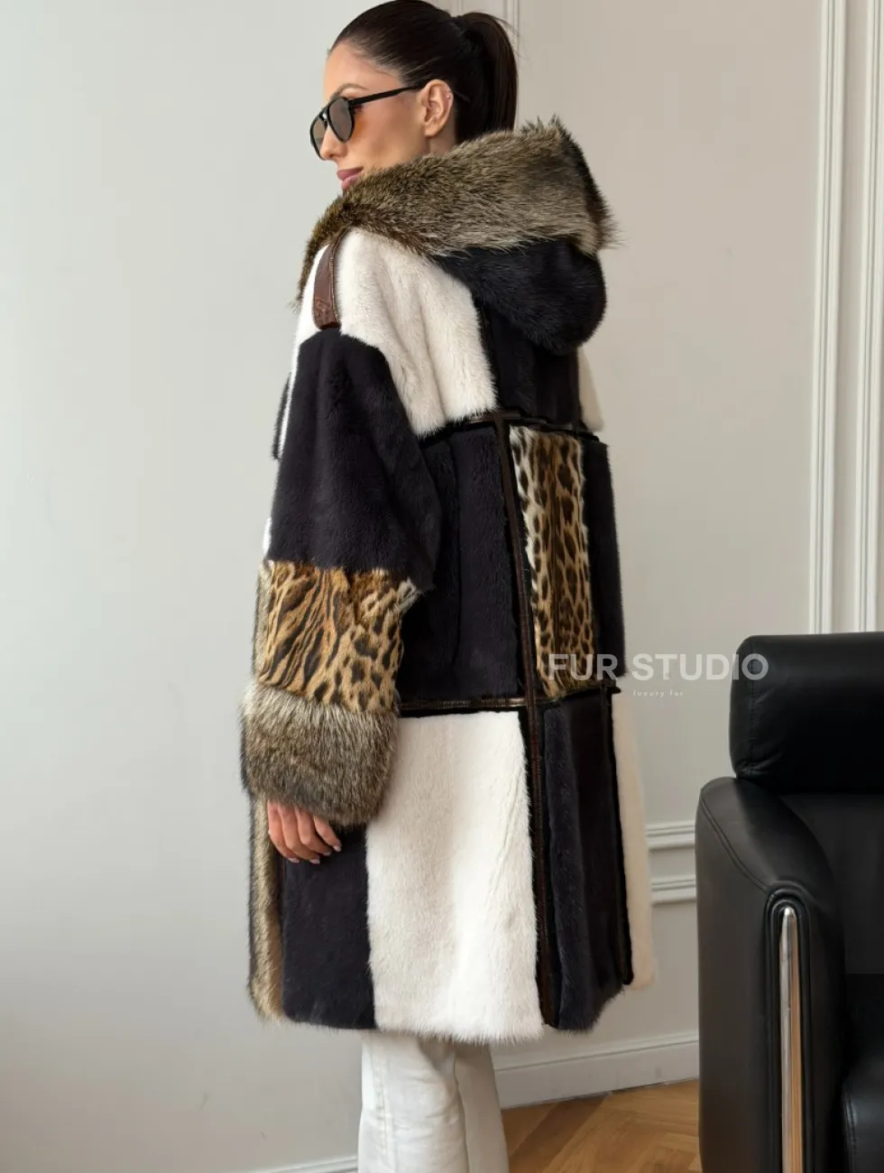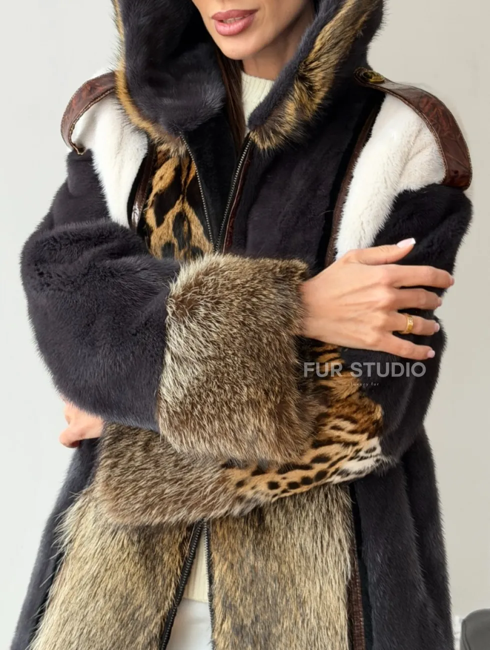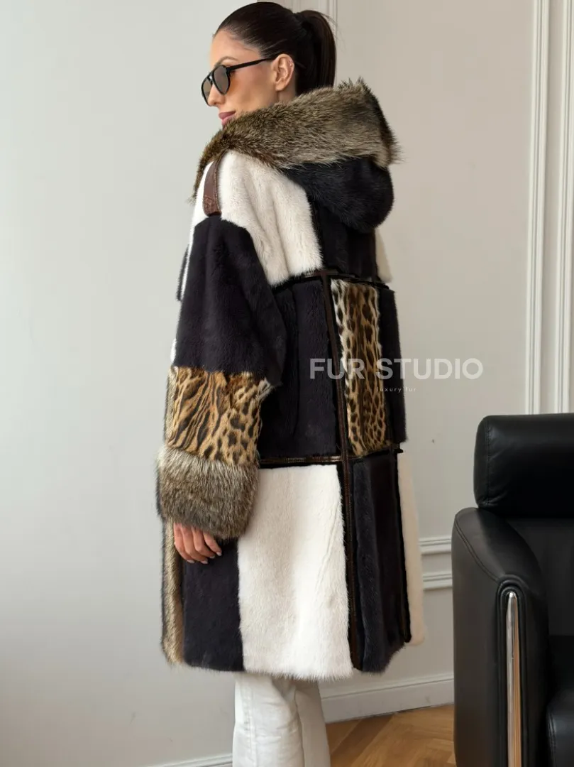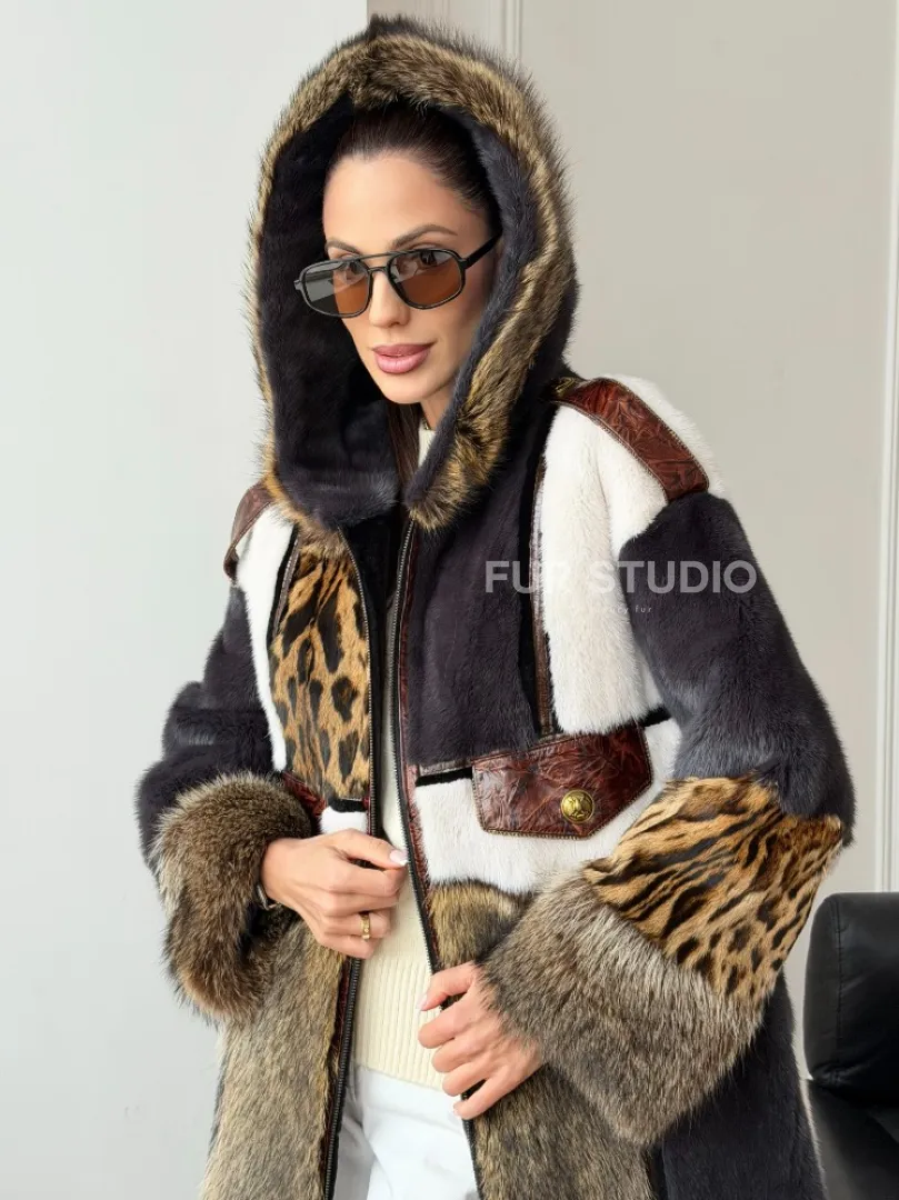 Комбинированная норковая шуба с капюшоном доступна для покупки в нашем шоуруме Furs Studio в Москве. У нас так же есть доставка во все города России. Добавьте немного роскоши в свой гардероб с этой шубой, которая будет служить вам многие годы.