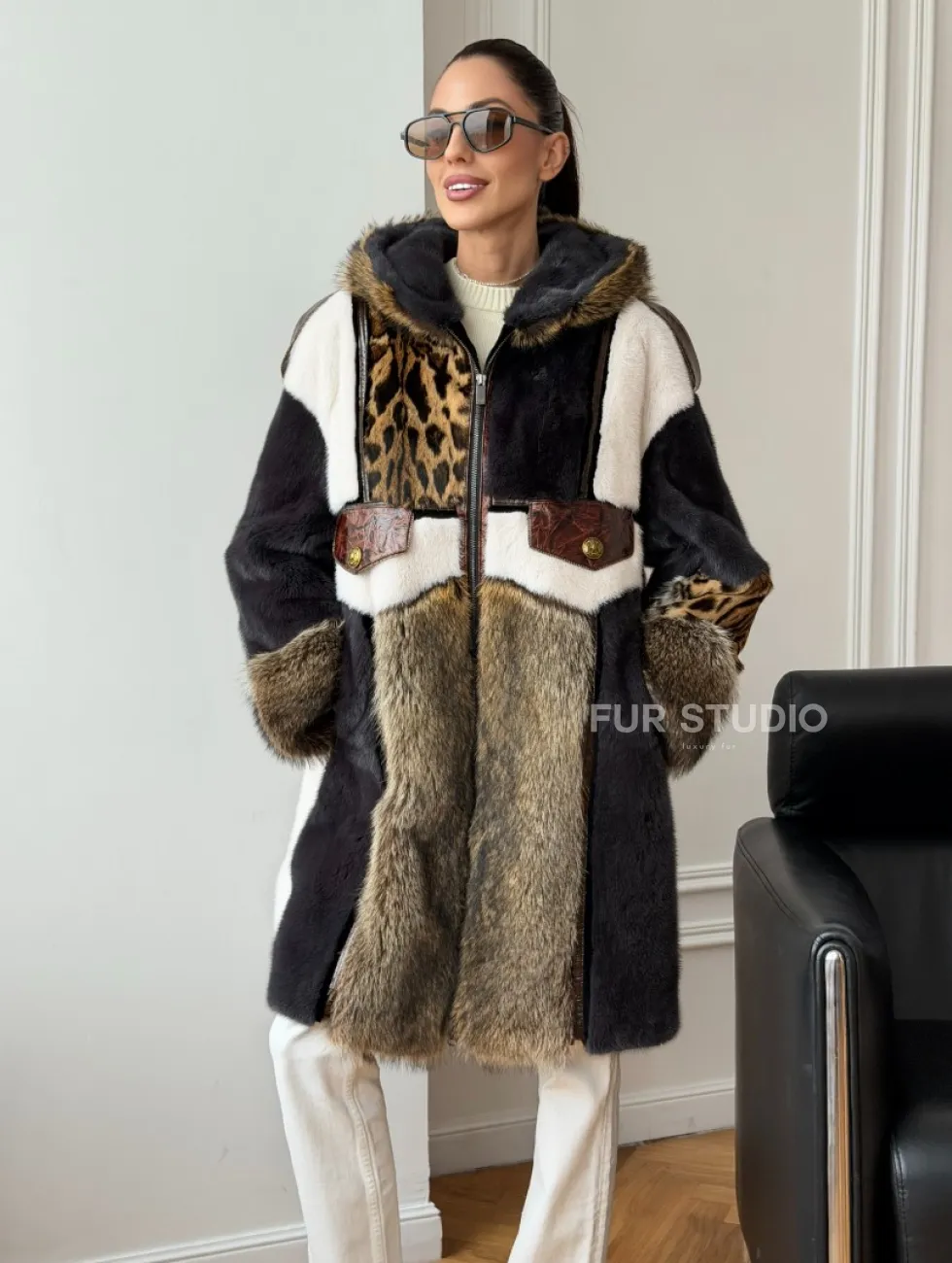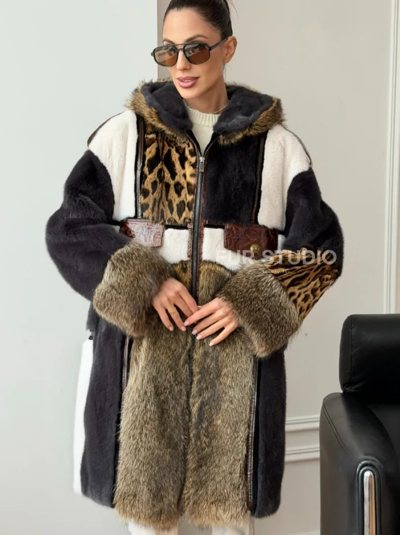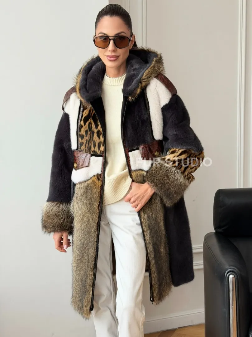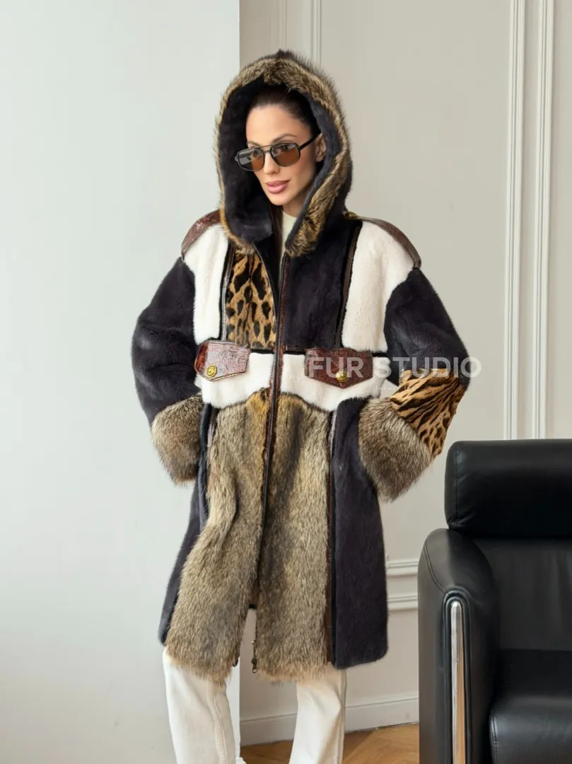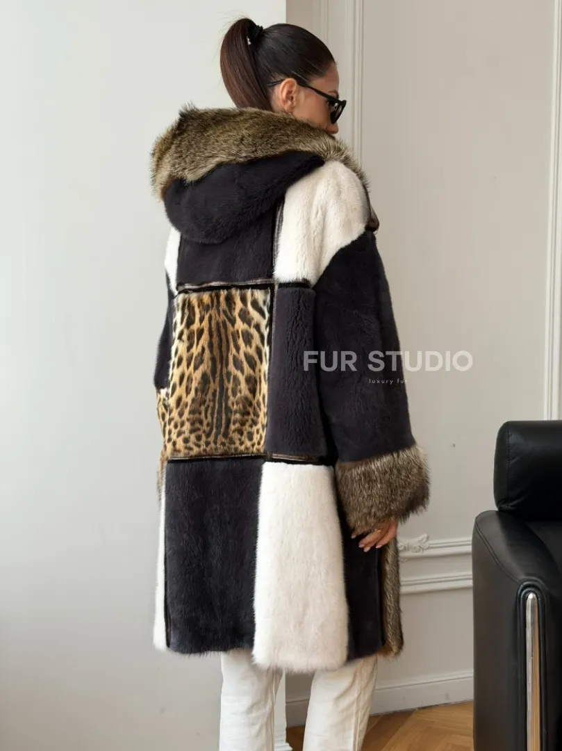 Комбинированная норковая шуба с капюшоном доступна для покупки в нашем шоуруме Furs Studio в Москве. У нас так же есть доставка во все города России. Добавьте немного роскоши в свой гардероб с этой шубой, которая будет служить вам многие годы.