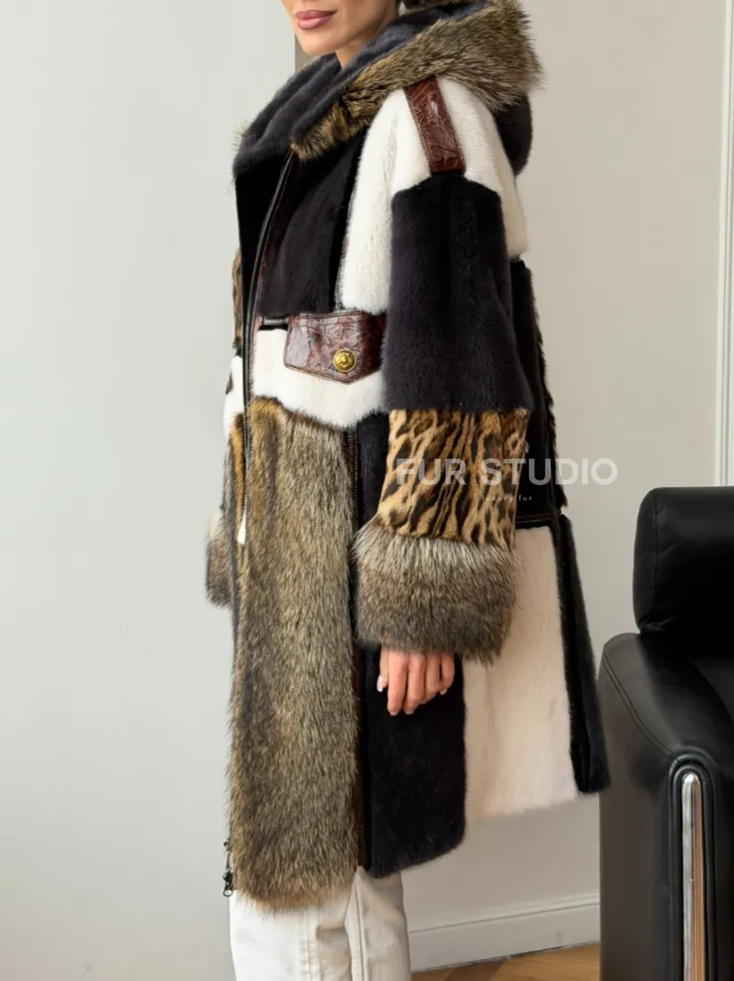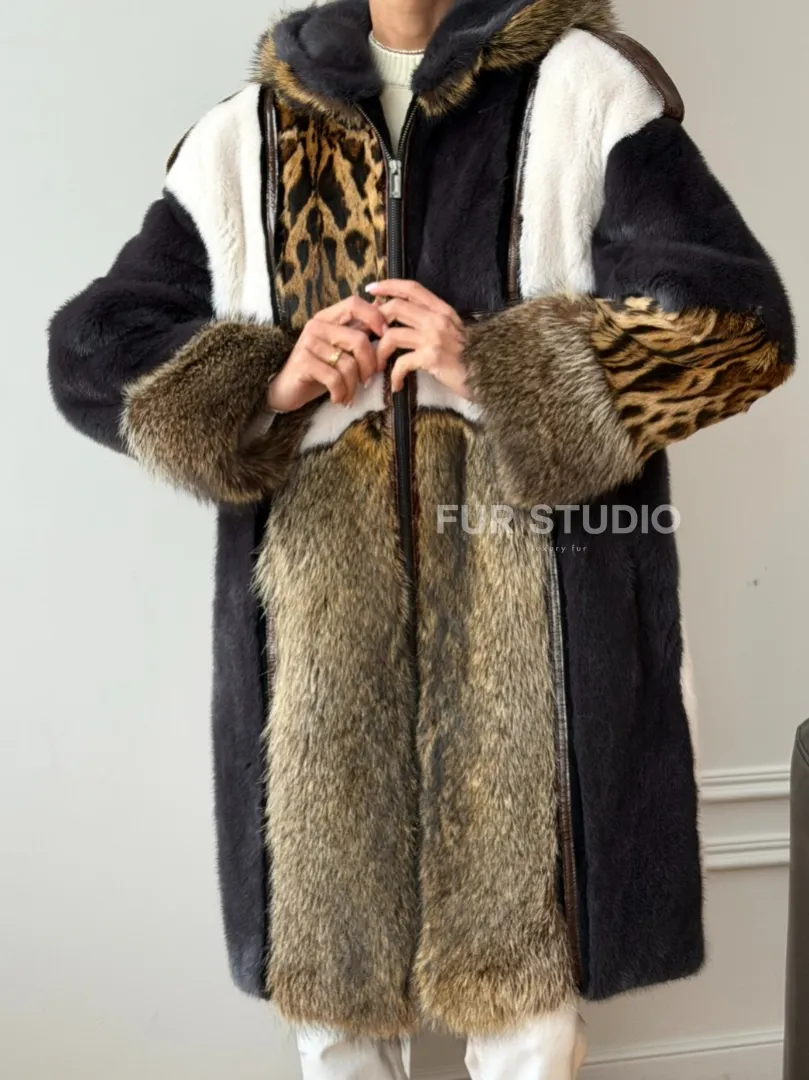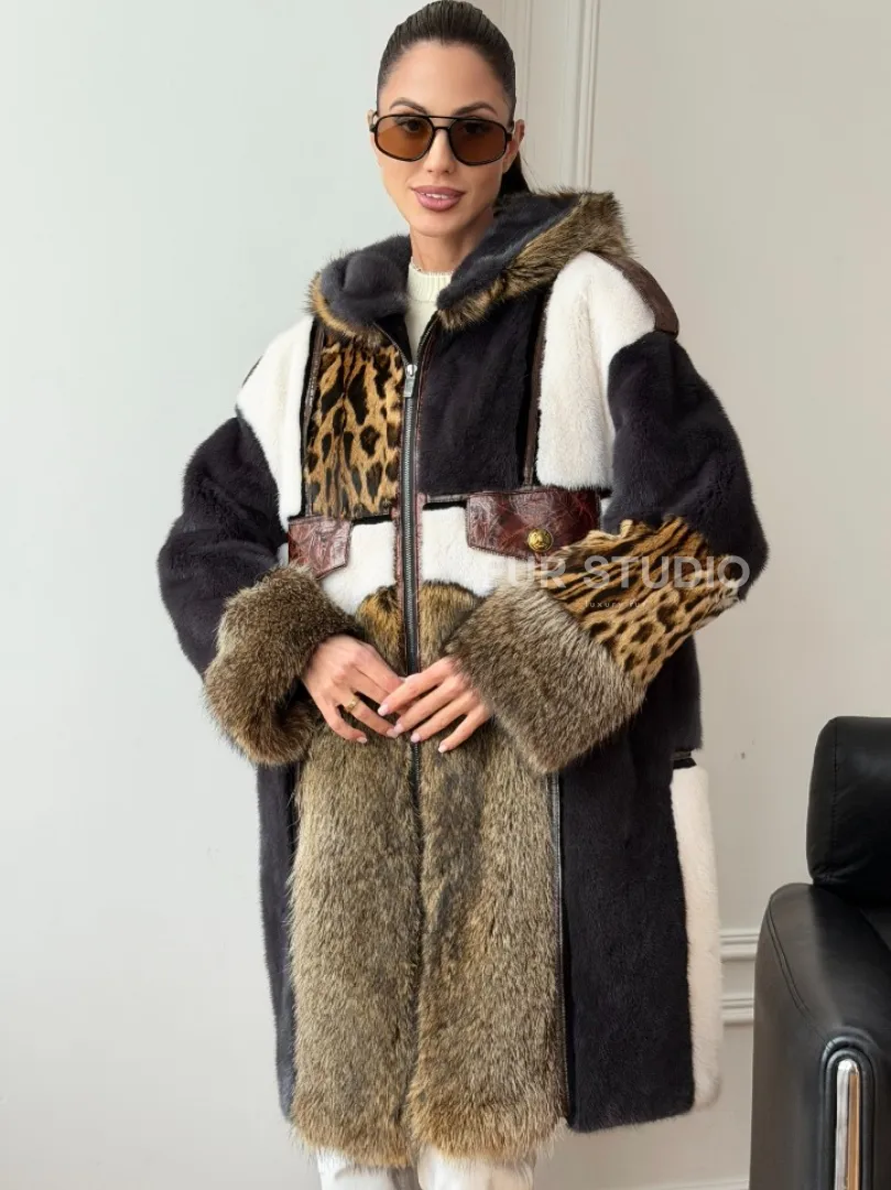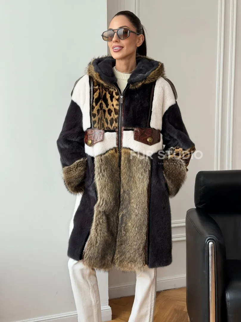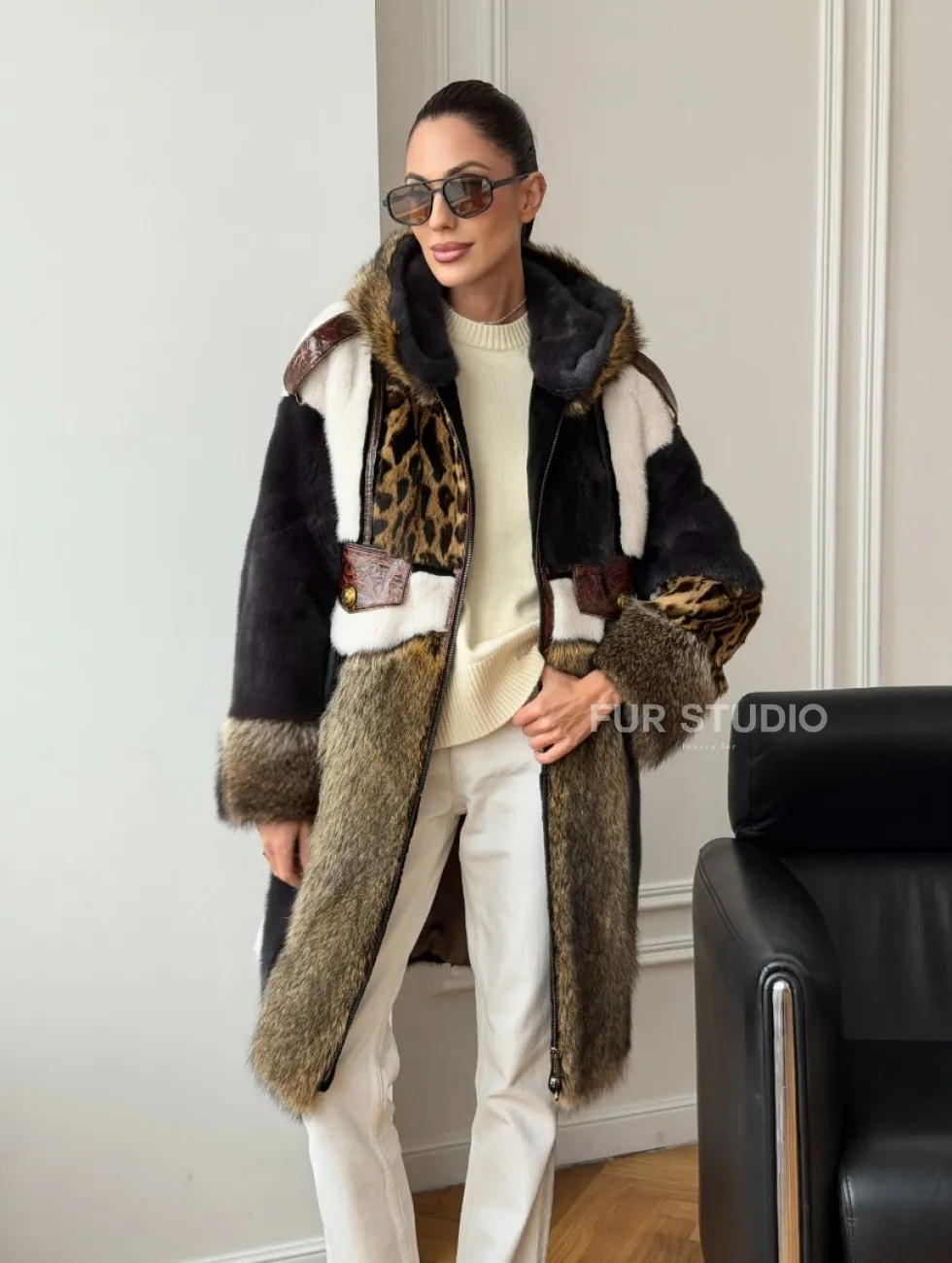 Комбинированная норковая шуба с капюшоном доступна для покупки в нашем шоуруме Furs Studio в Москве. У нас так же есть доставка во все города России. Добавьте немного роскоши в свой гардероб с этой шубой, которая будет служить вам многие годы.