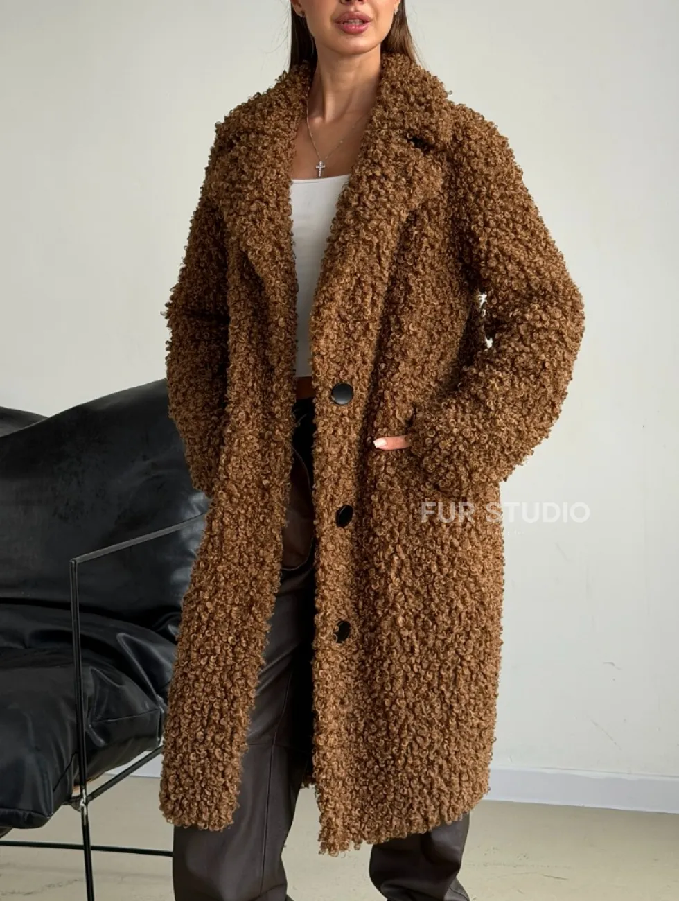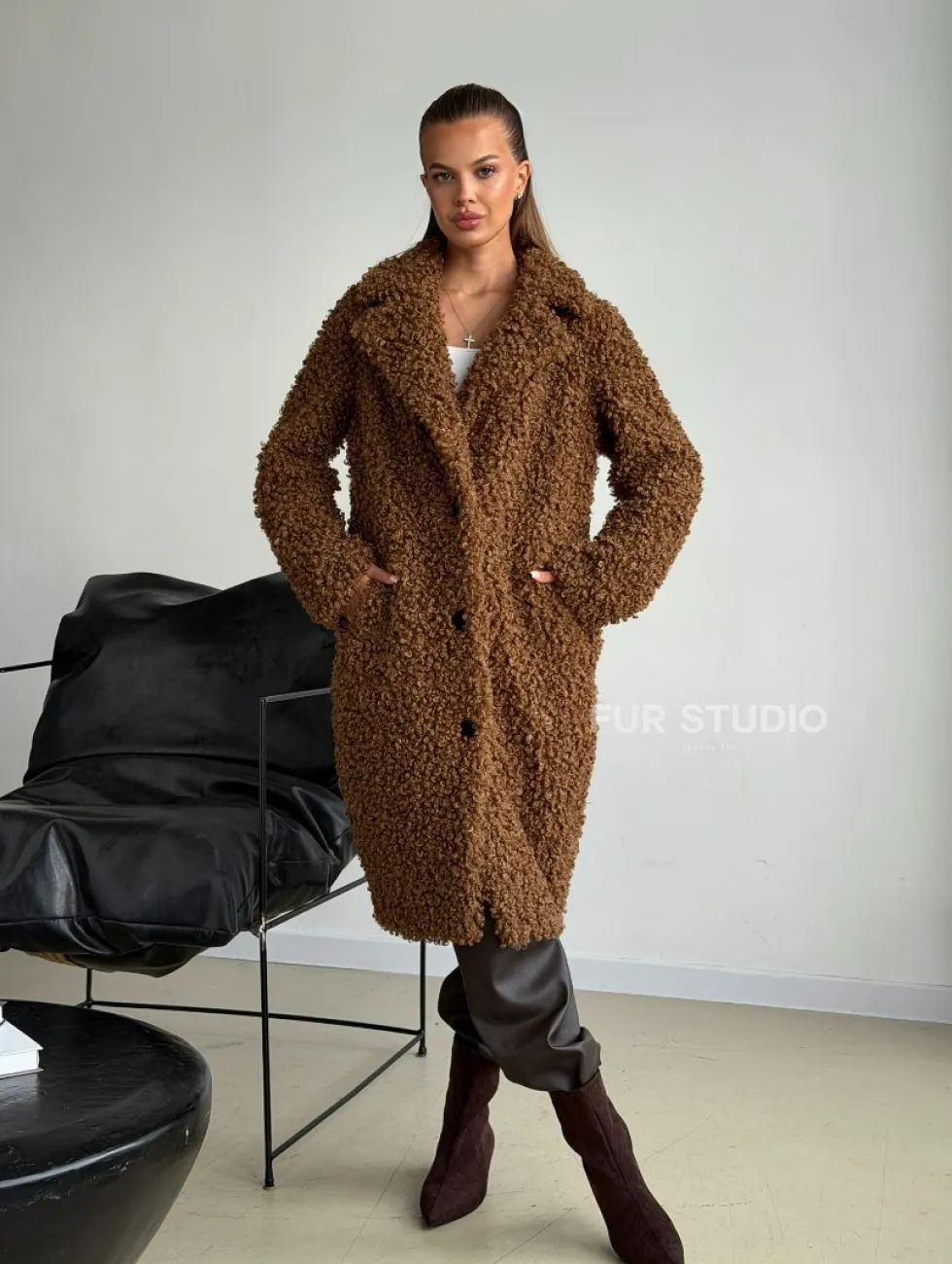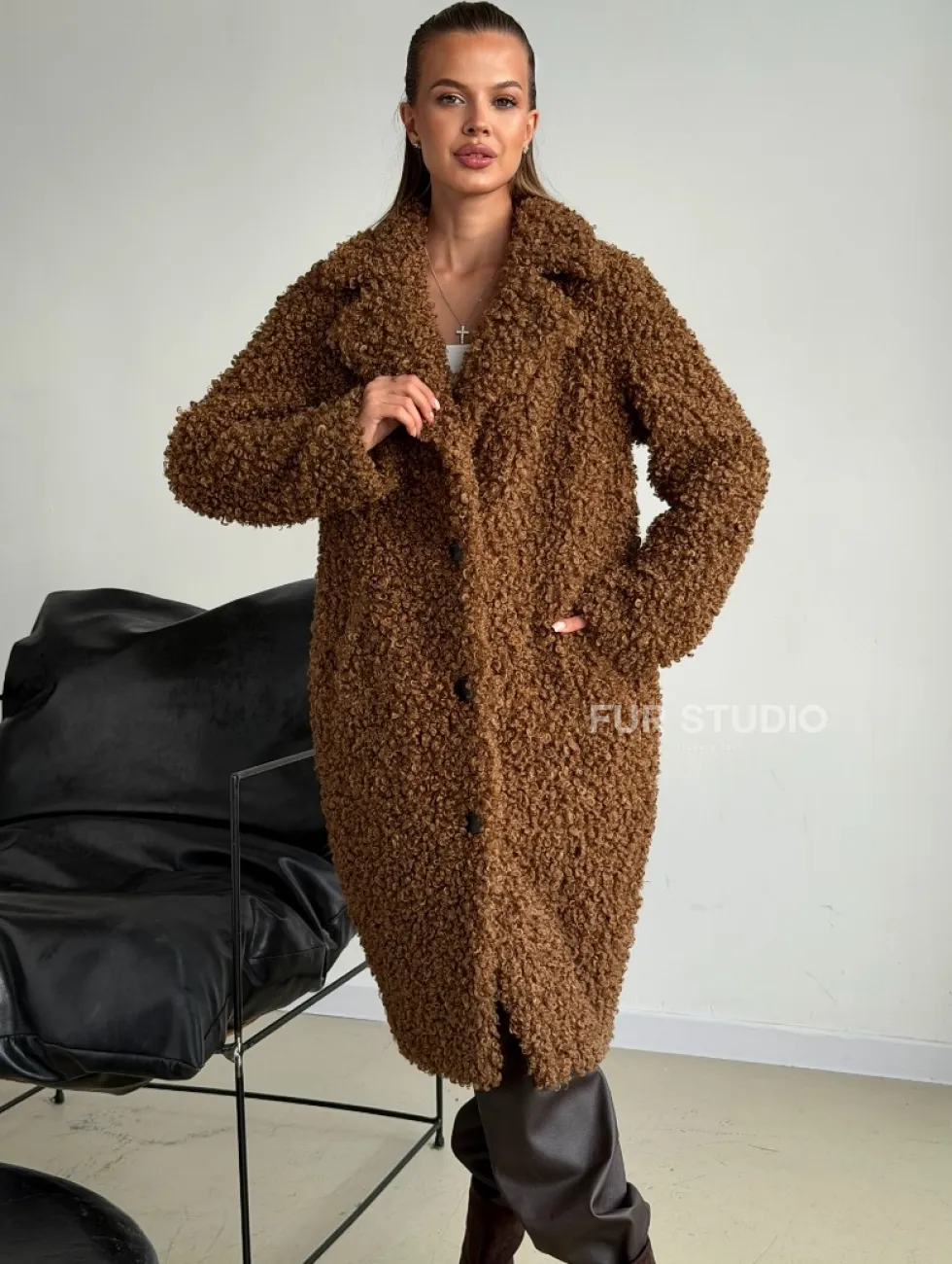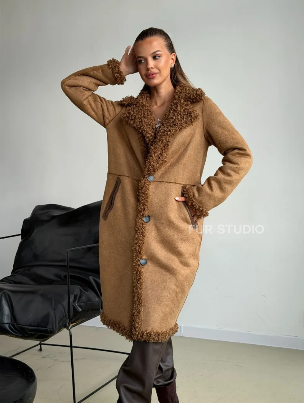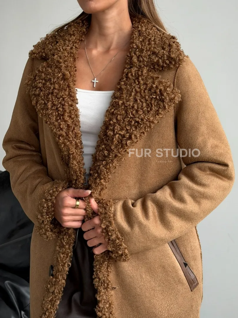 Коричневая двухсторонняя дубленка из экомеха доступна для покупки в нашем шоуруме Furs Studio в Москве, а также предлагается удобная доставка во все города России. Обогатите свой гардероб этой дубленкой, которая прослужит вам многие годы, добавив немного роскоши в ваш повседневный образ.