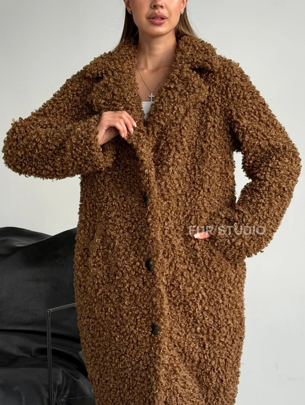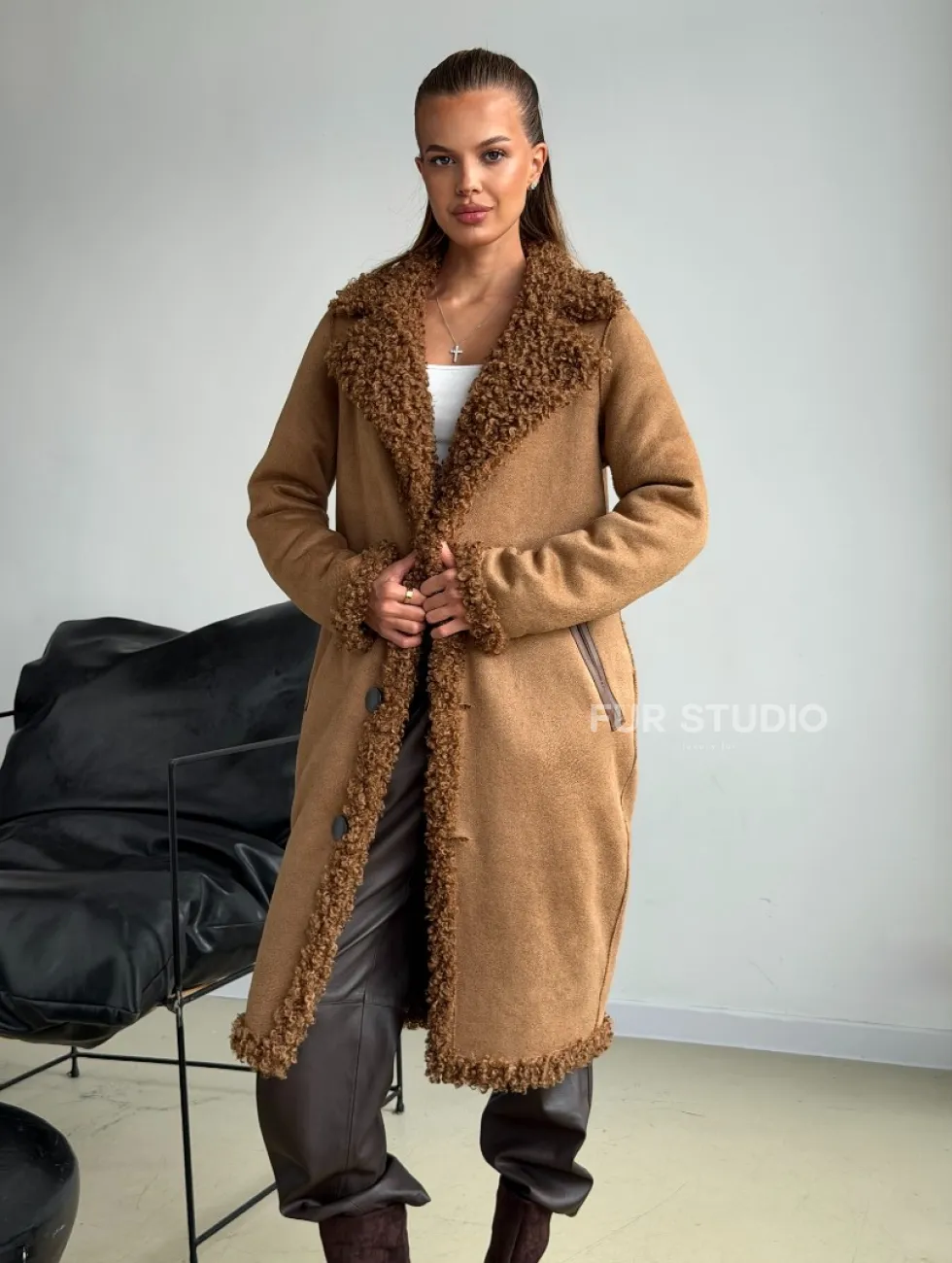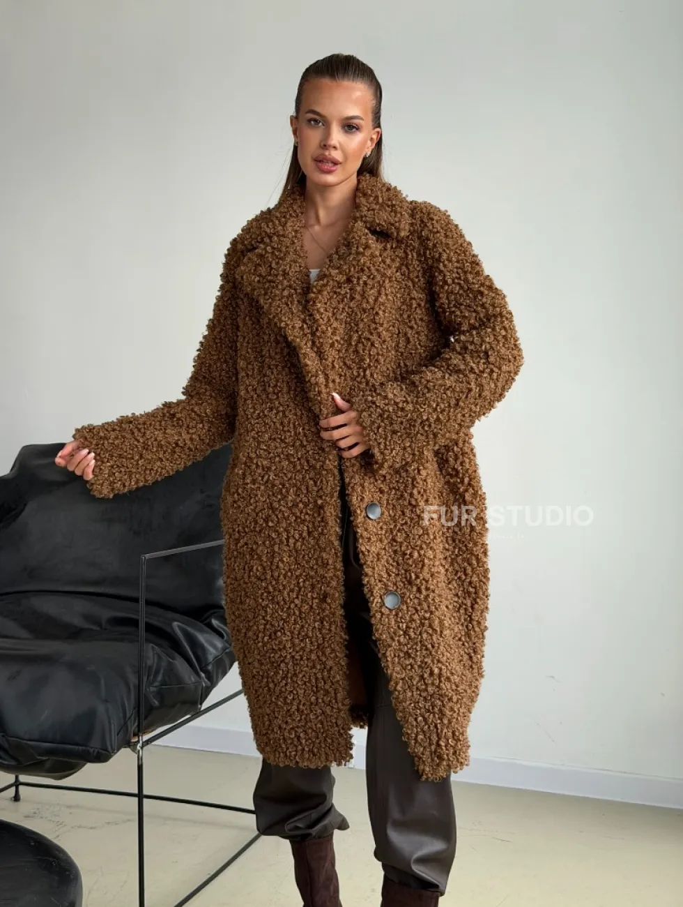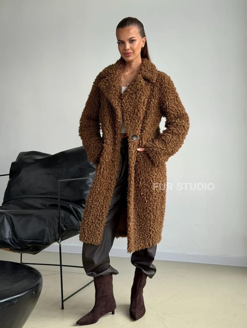 Коричневая двухсторонняя дубленка из экомеха доступна для покупки в нашем шоуруме Furs Studio в Москве, а также предлагается удобная доставка во все города России. Обогатите свой гардероб этой дубленкой, которая прослужит вам многие годы, добавив немного роскоши в ваш повседневный образ.