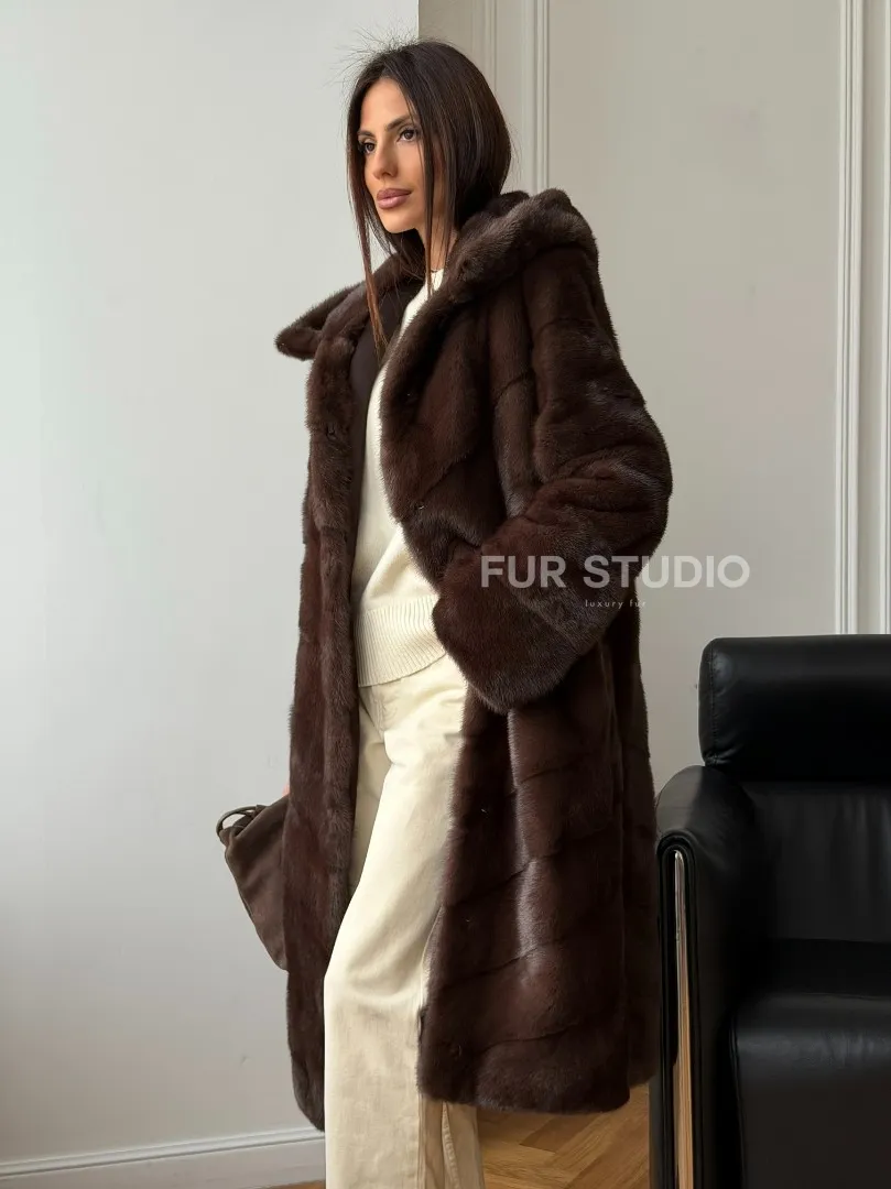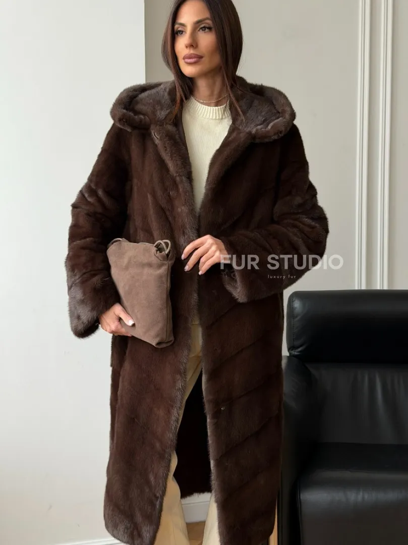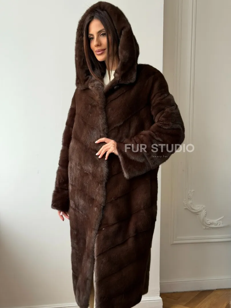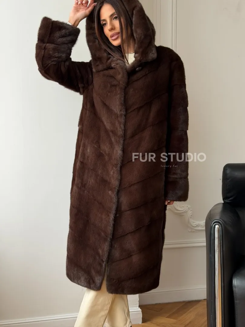 Коричневая норковая шуба с капюшоном доступна для покупки в нашем шоуруме Furs Studio в Москве. У нас так же есть доставка во все города России. Добавьте немного роскоши в свой гардероб с этой шубой, которая будет служить вам многие годы.