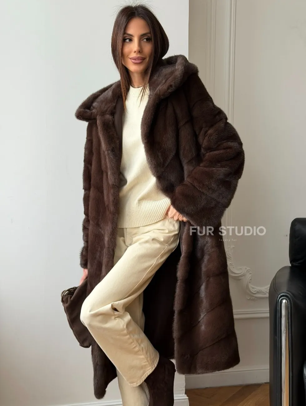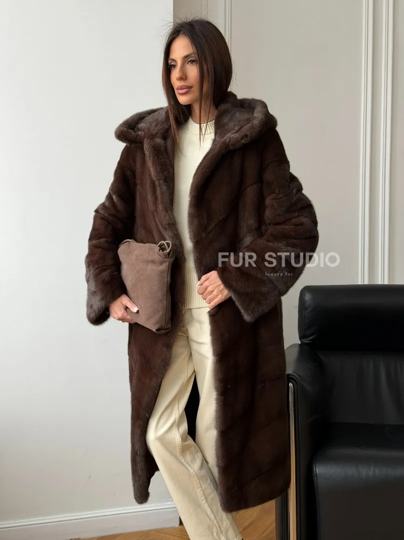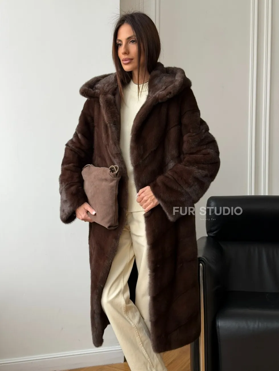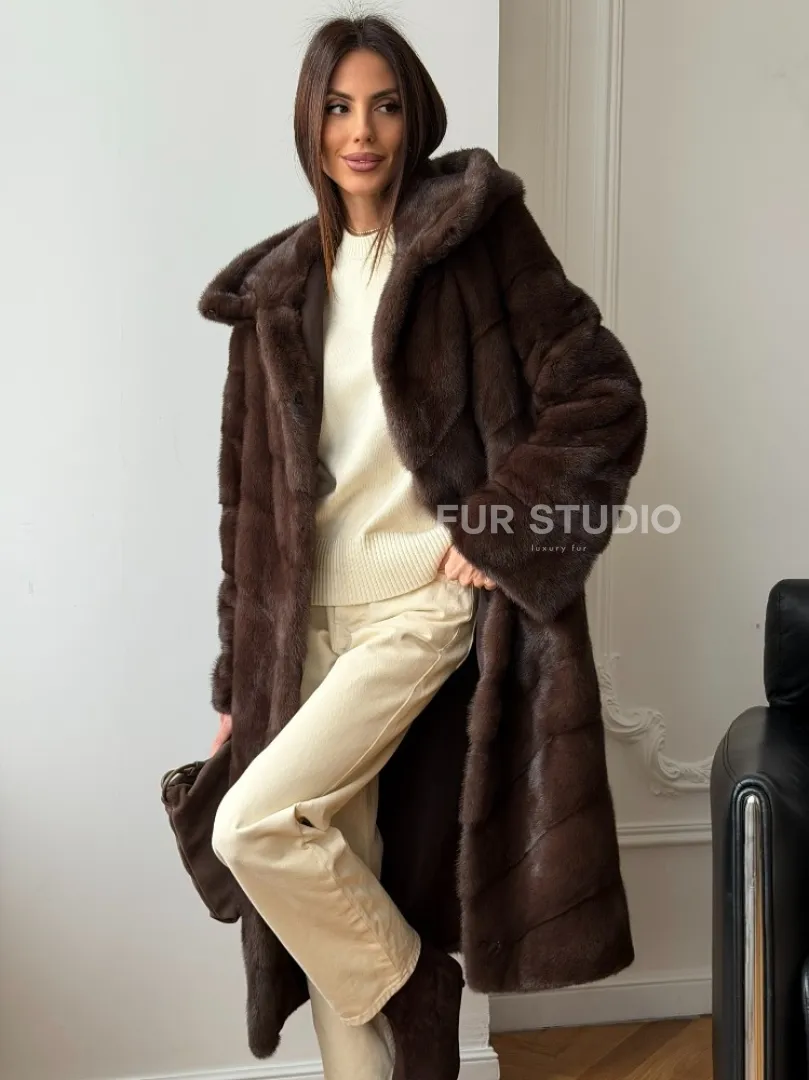 Коричневая норковая шуба с капюшоном доступна для покупки в нашем шоуруме Furs Studio в Москве. У нас так же есть доставка во все города России. Добавьте немного роскоши в свой гардероб с этой шубой, которая будет служить вам многие годы.