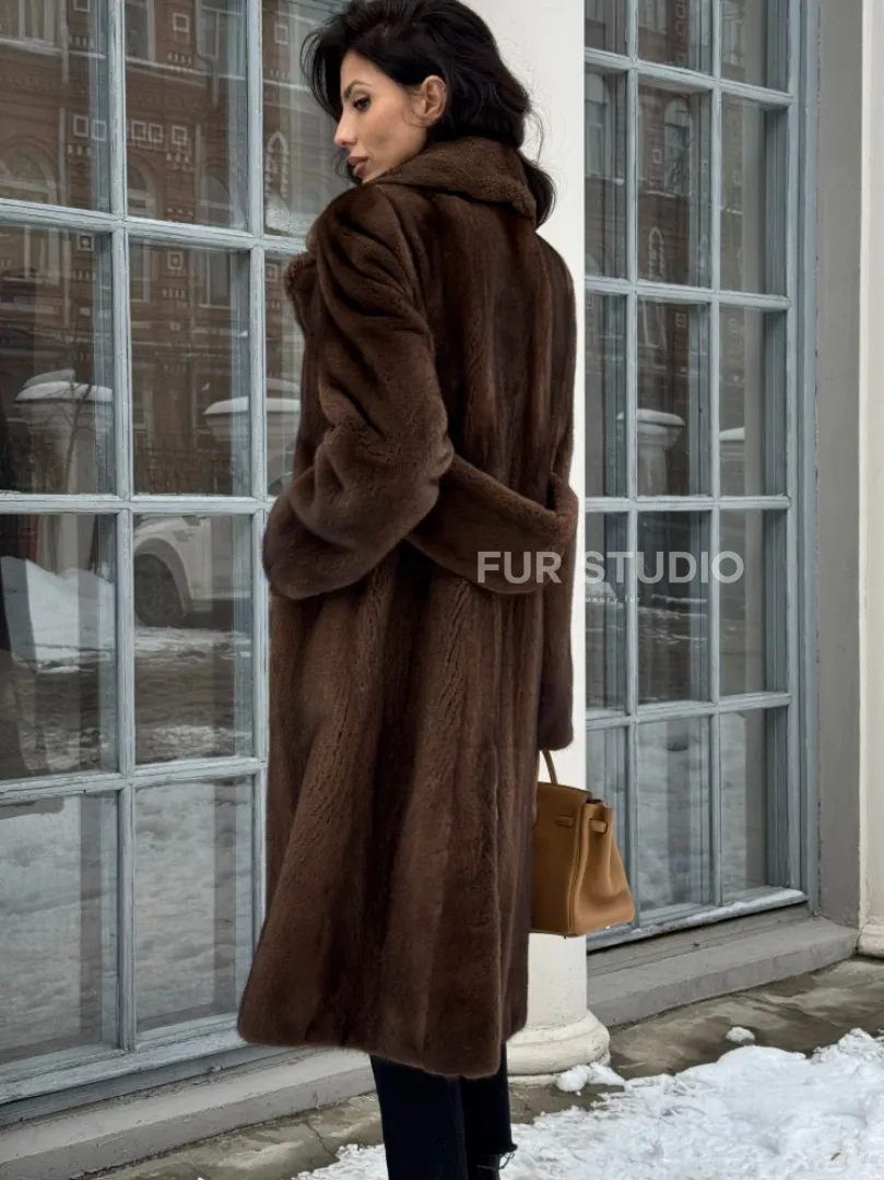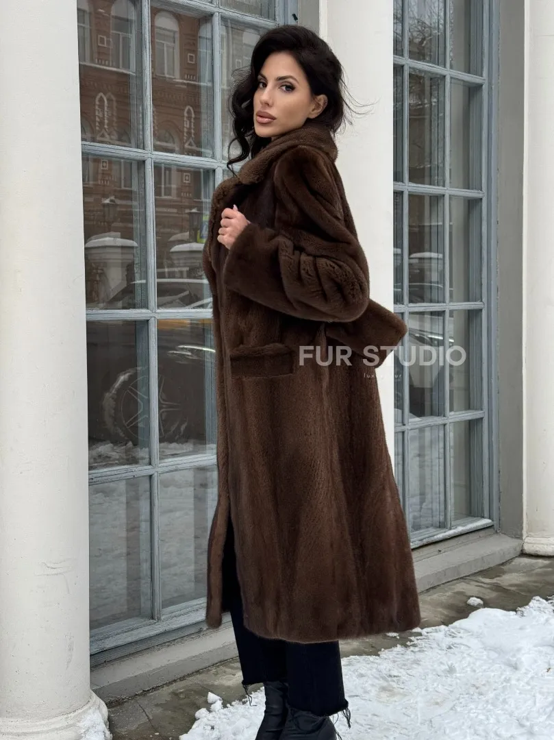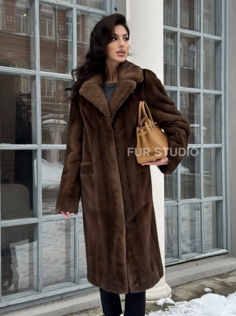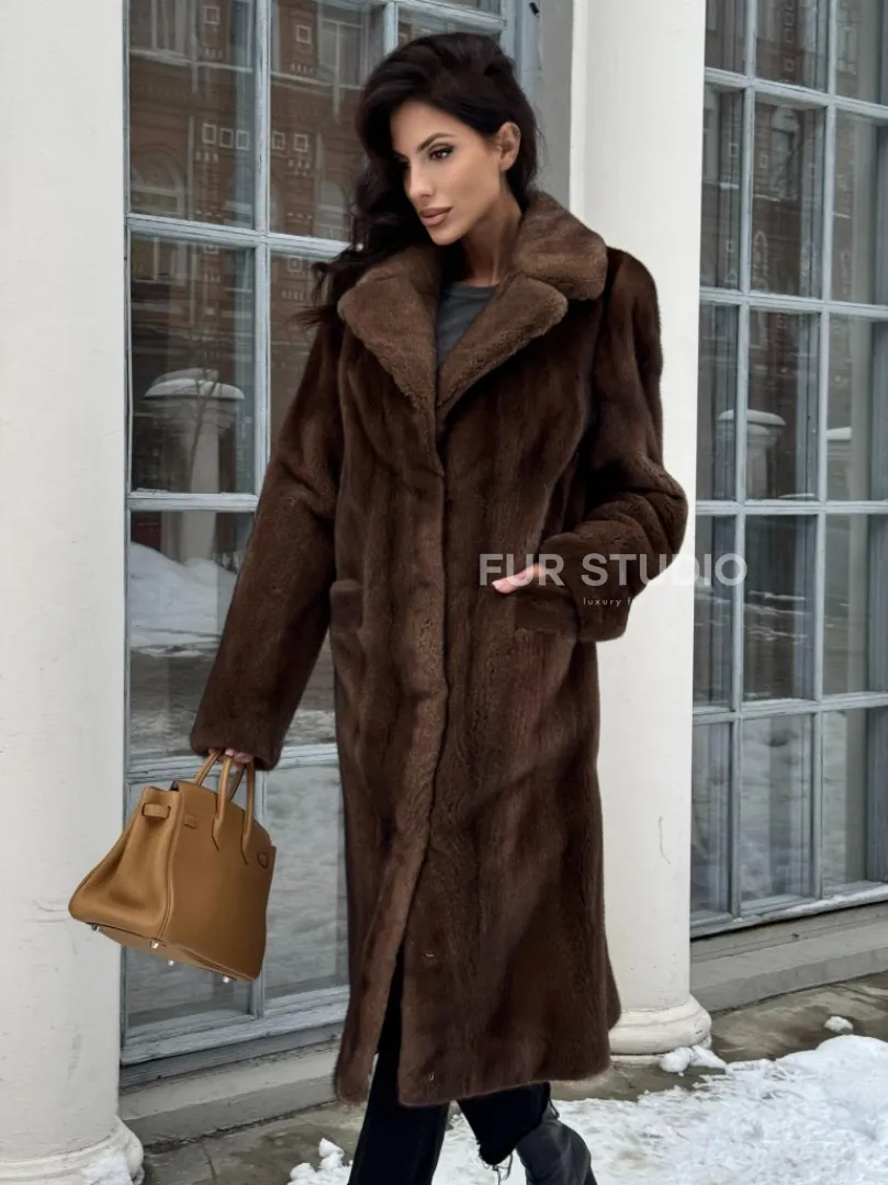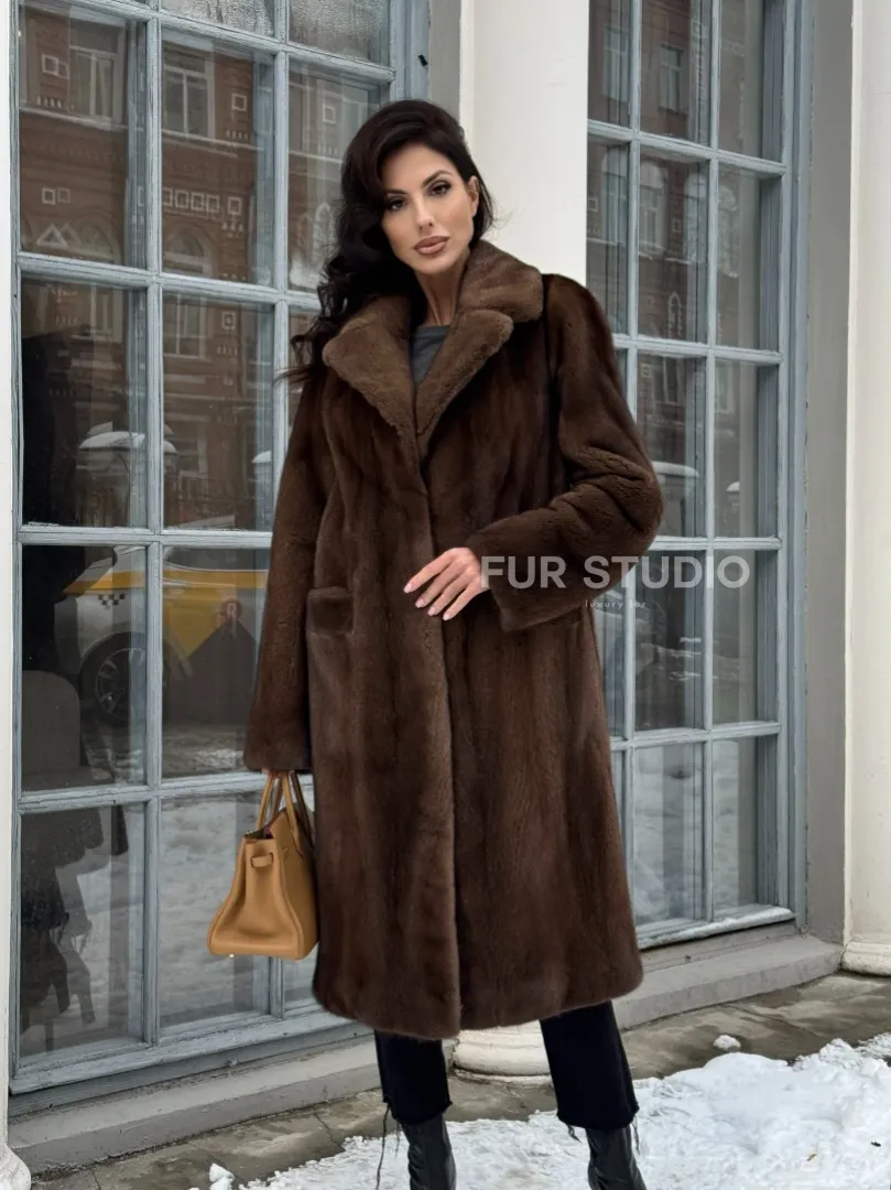 Коричневая шуба из меха норки с хлястиком на спине доступна для покупки в нашем шоуруме Furs Studio в Москве. У нас так же есть доставка во все города России. Добавьте немного роскоши в свой гардероб с этой шубой, которая будет служить вам многие годы.
