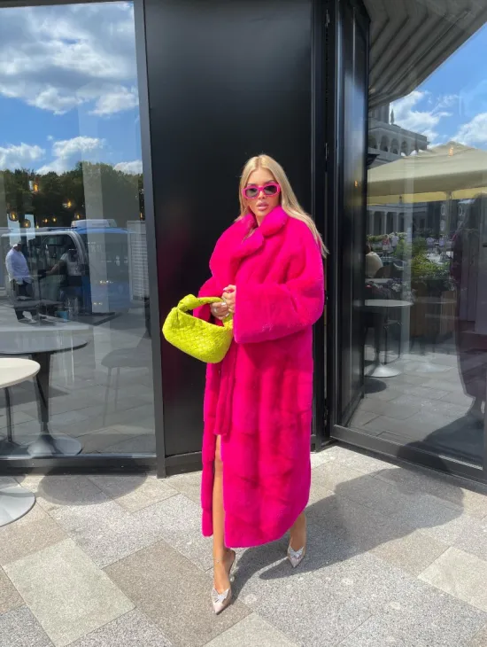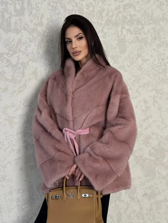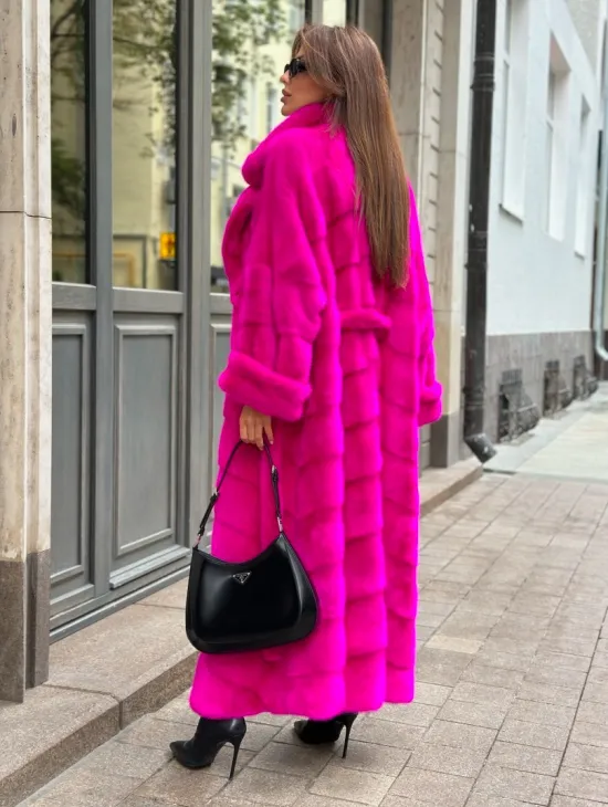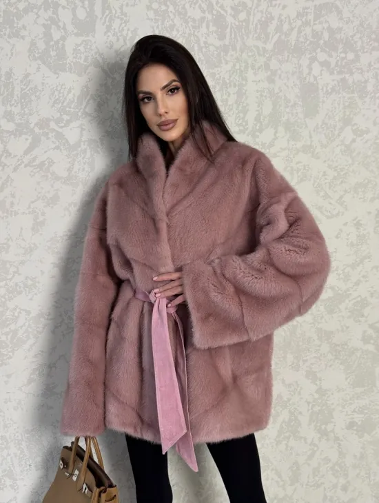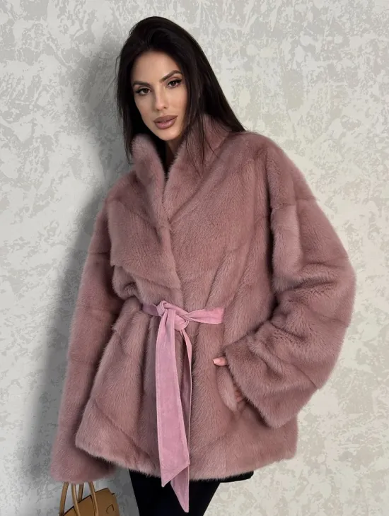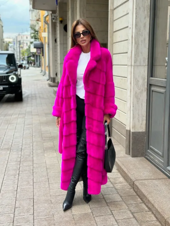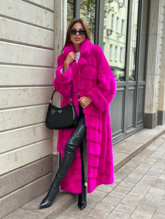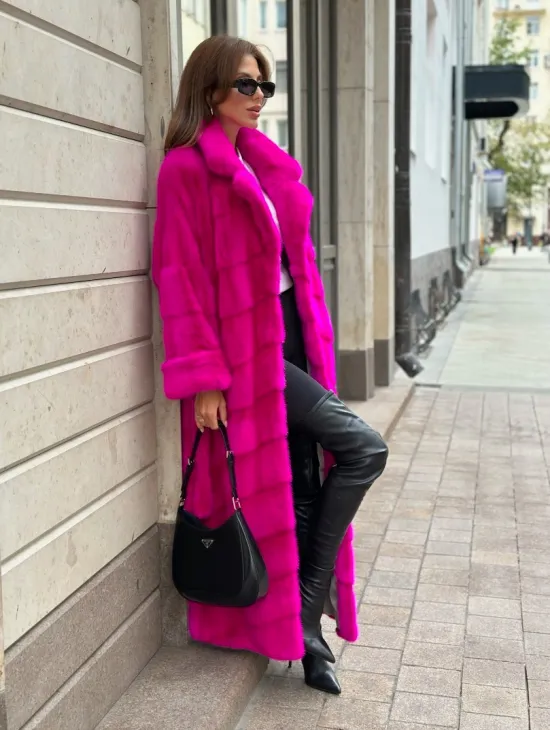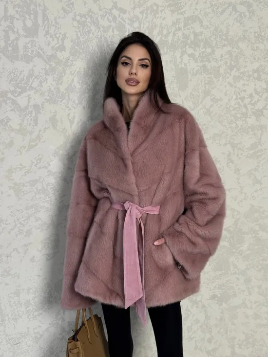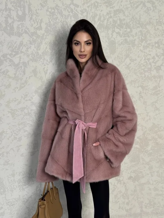 Мех данной шубы аукционная норка , цвет розовый. Предлагается в размерах от 40 до 50. Длина модели 60-65 см, что выгодно подчеркивает фигуру девушек. Эта модель идеально подойдет для девушек и женщин, предпочитающих роскошные натуральные меха.
