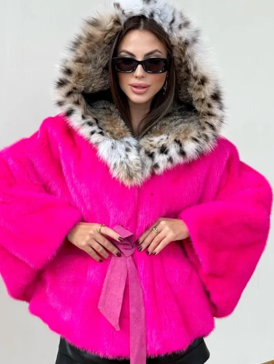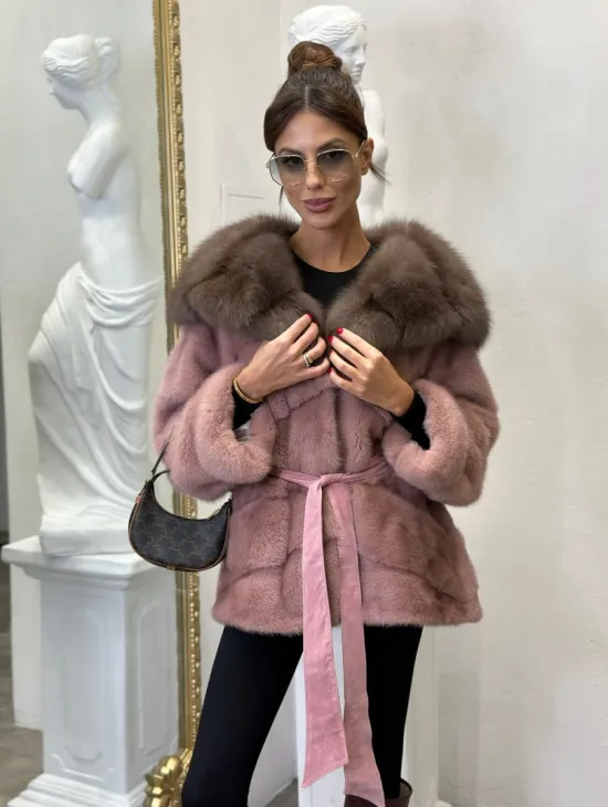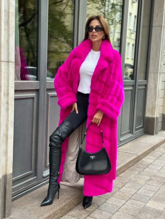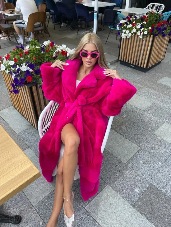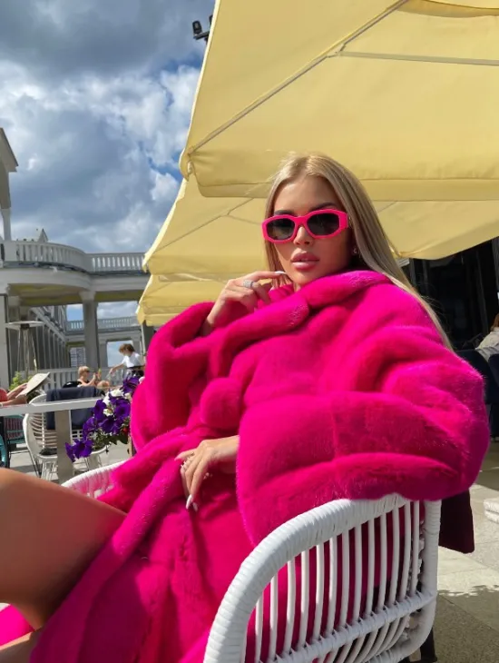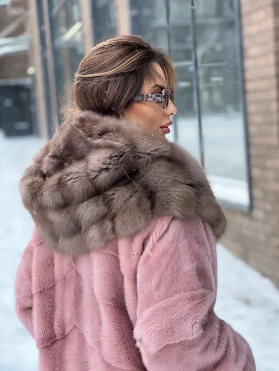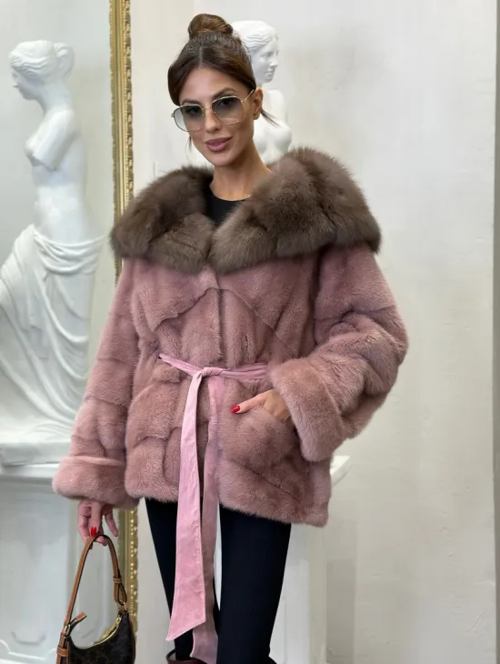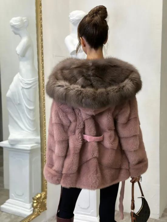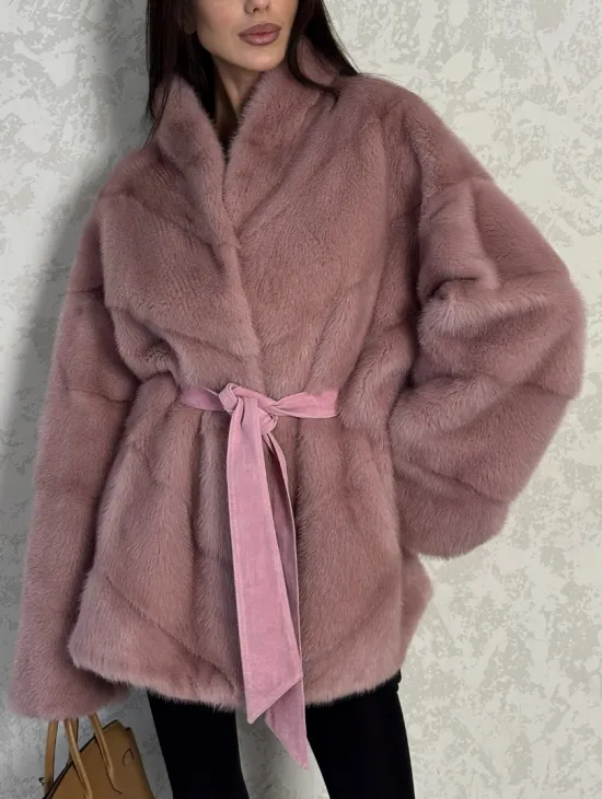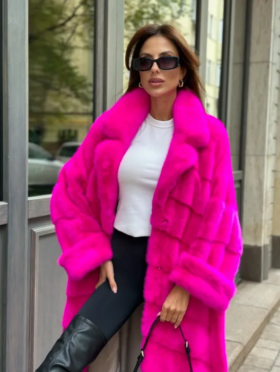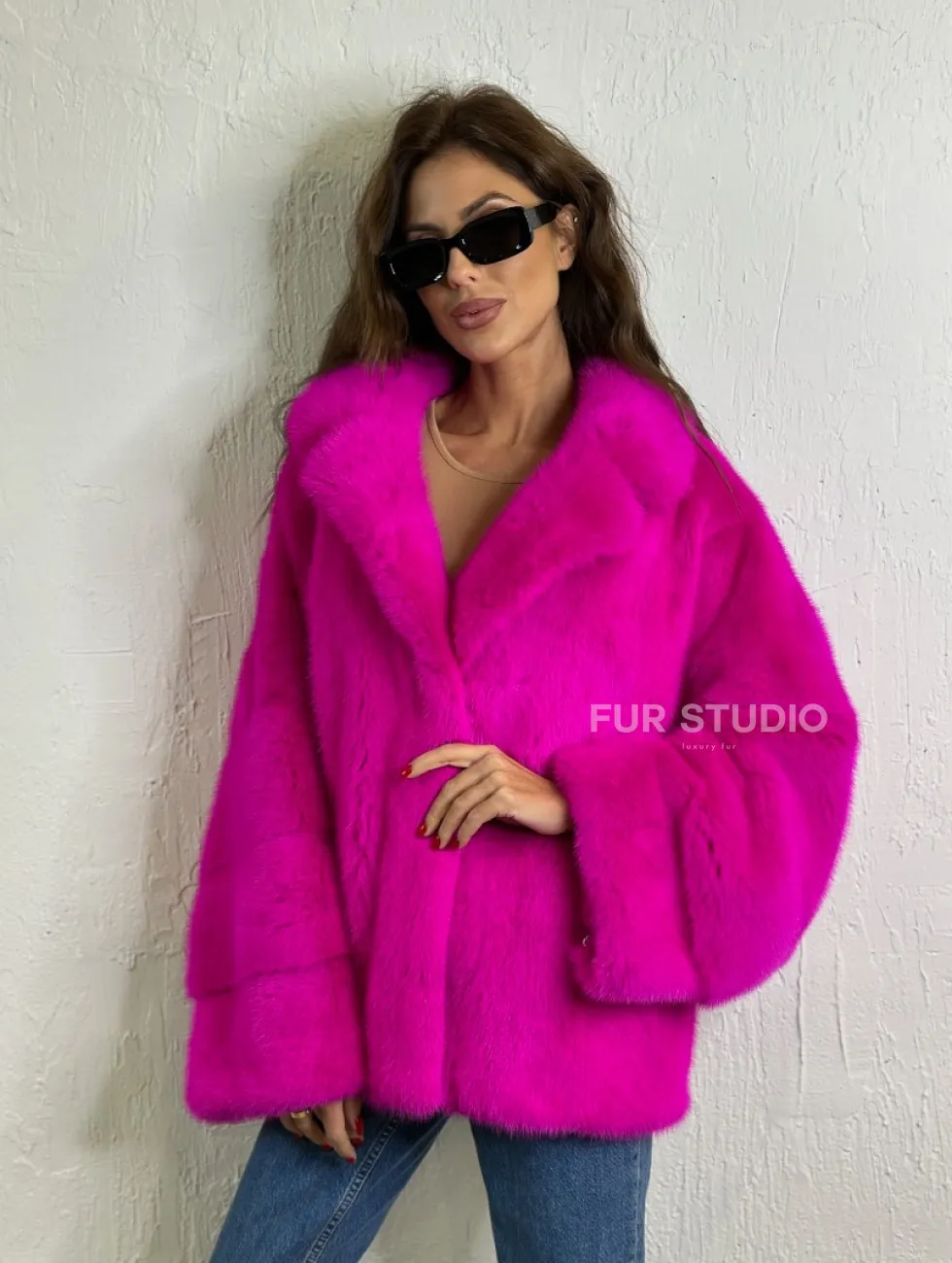 Мех данной шубы аукционная норка , цвет розовый. Предлагается в размерах от 40 до 50. Длина модели 60-65 см, что выгодно подчеркивает фигуру девушек. Эта модель идеально подойдет для девушек и женщин, предпочитающих роскошные натуральные меха.